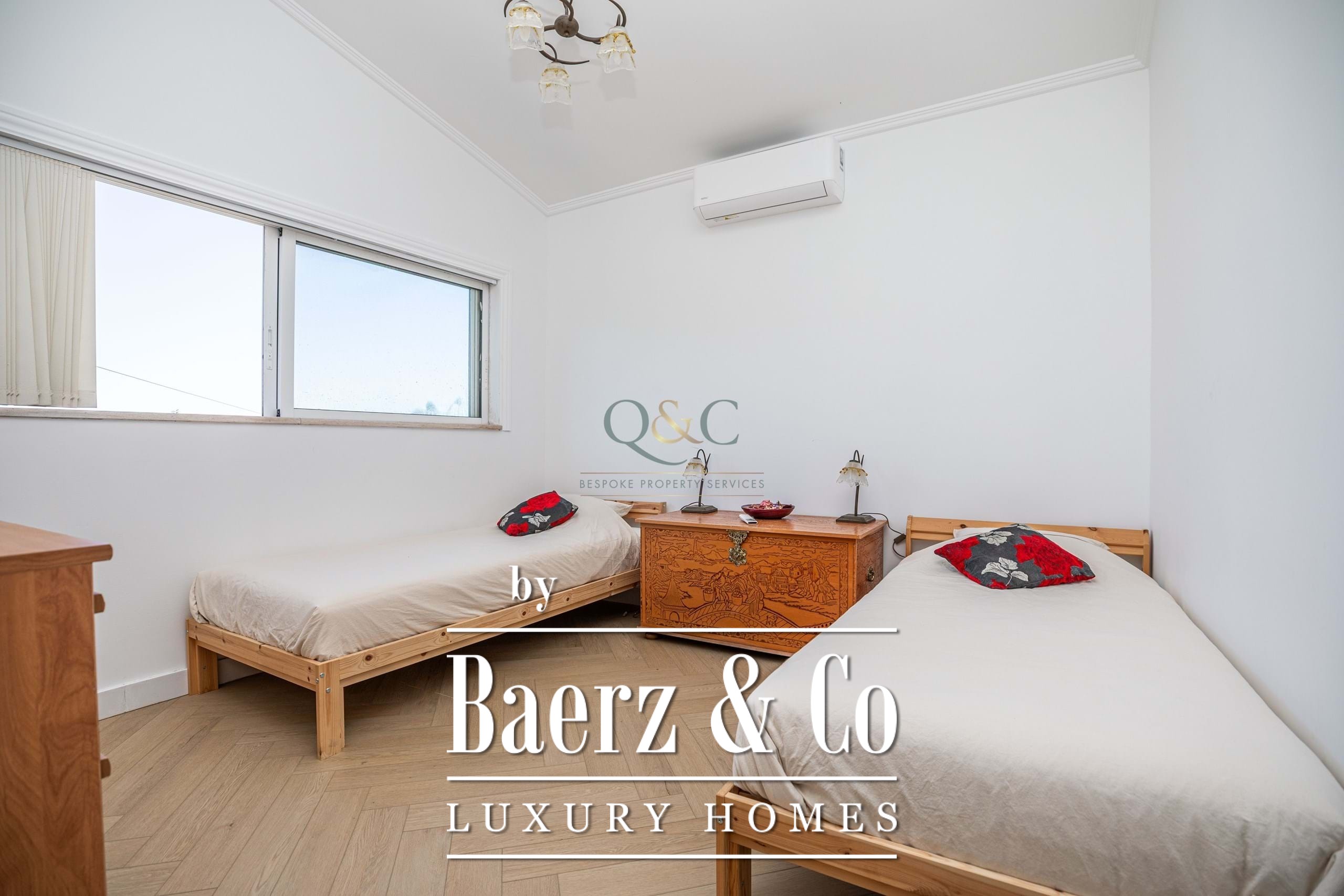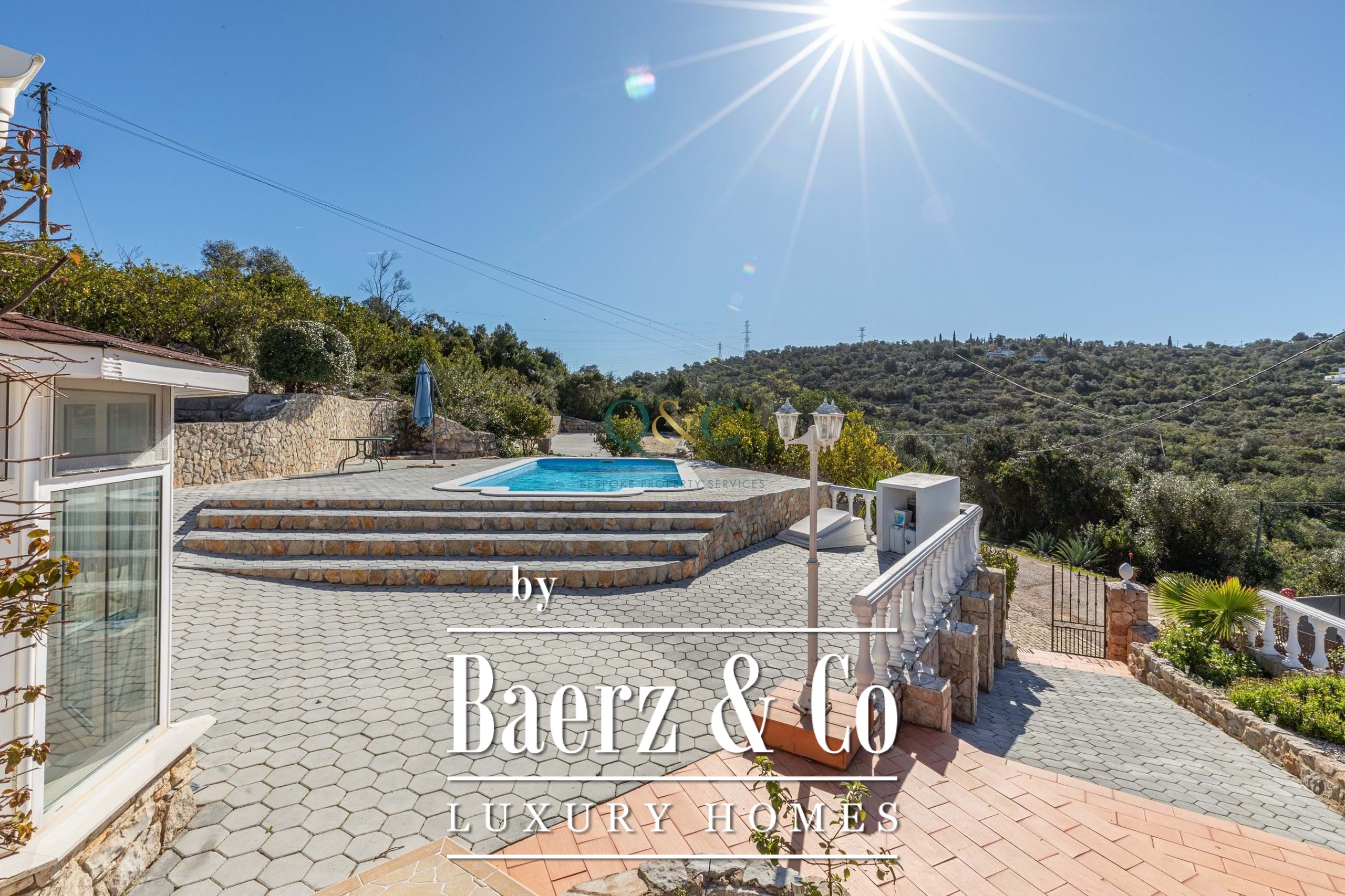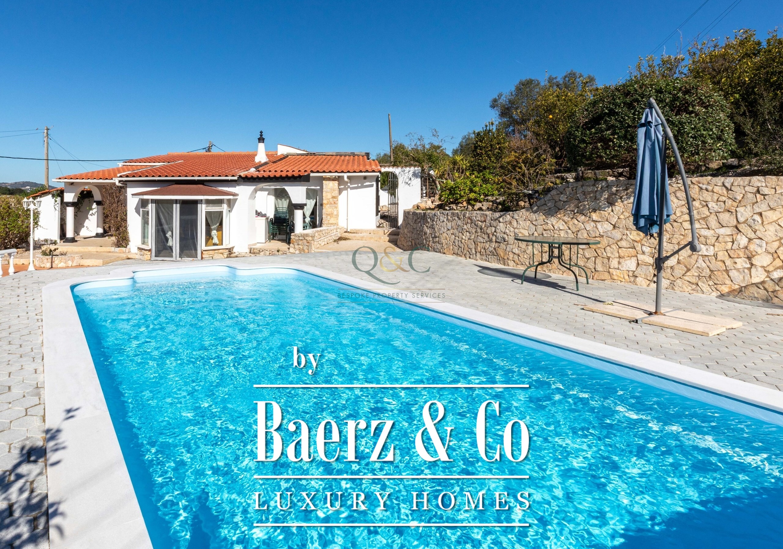 Outdoors, the 7,560 m² plot is thoughtfully landscaped, with citrus trees, newly built terraces, and a saltwater pool creating multiple zones for relaxation and entertaining. An external kitchen area and barbecue extend the possibilities for alfresco living. Privacy is preserved by a designated natural area, and the grounds are serviced by a private well and shared borehole, automatic irrigation, and double gated access. Positioned within easy reach of Estoi, São Brás de Alportel, and Faro, and just fifteen minutes from the coast and international airport, this villa balances rural calm with essential connections. Detached villa Estoi offers a rare invitation to experience Algarve life with both seclusion and convenience.