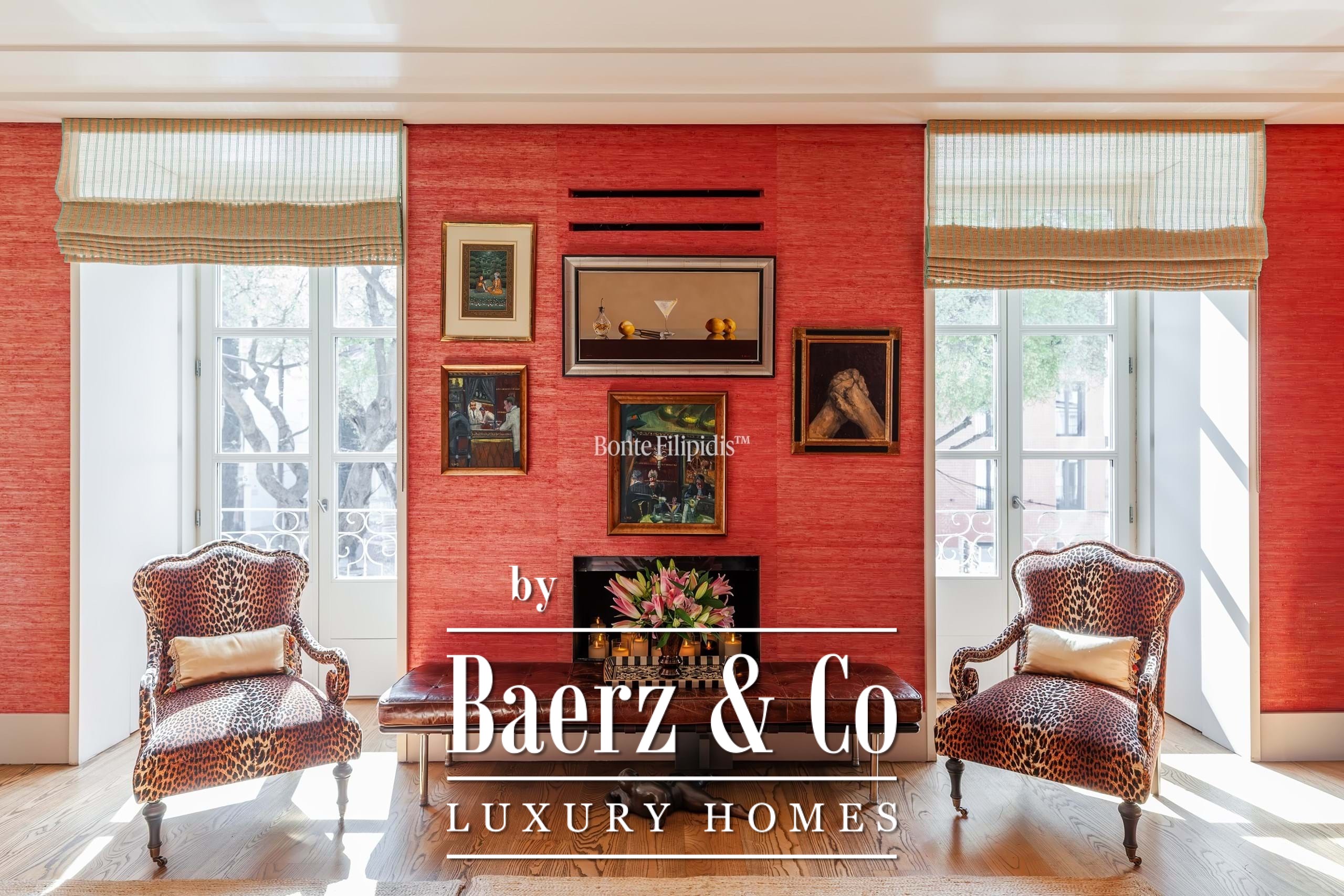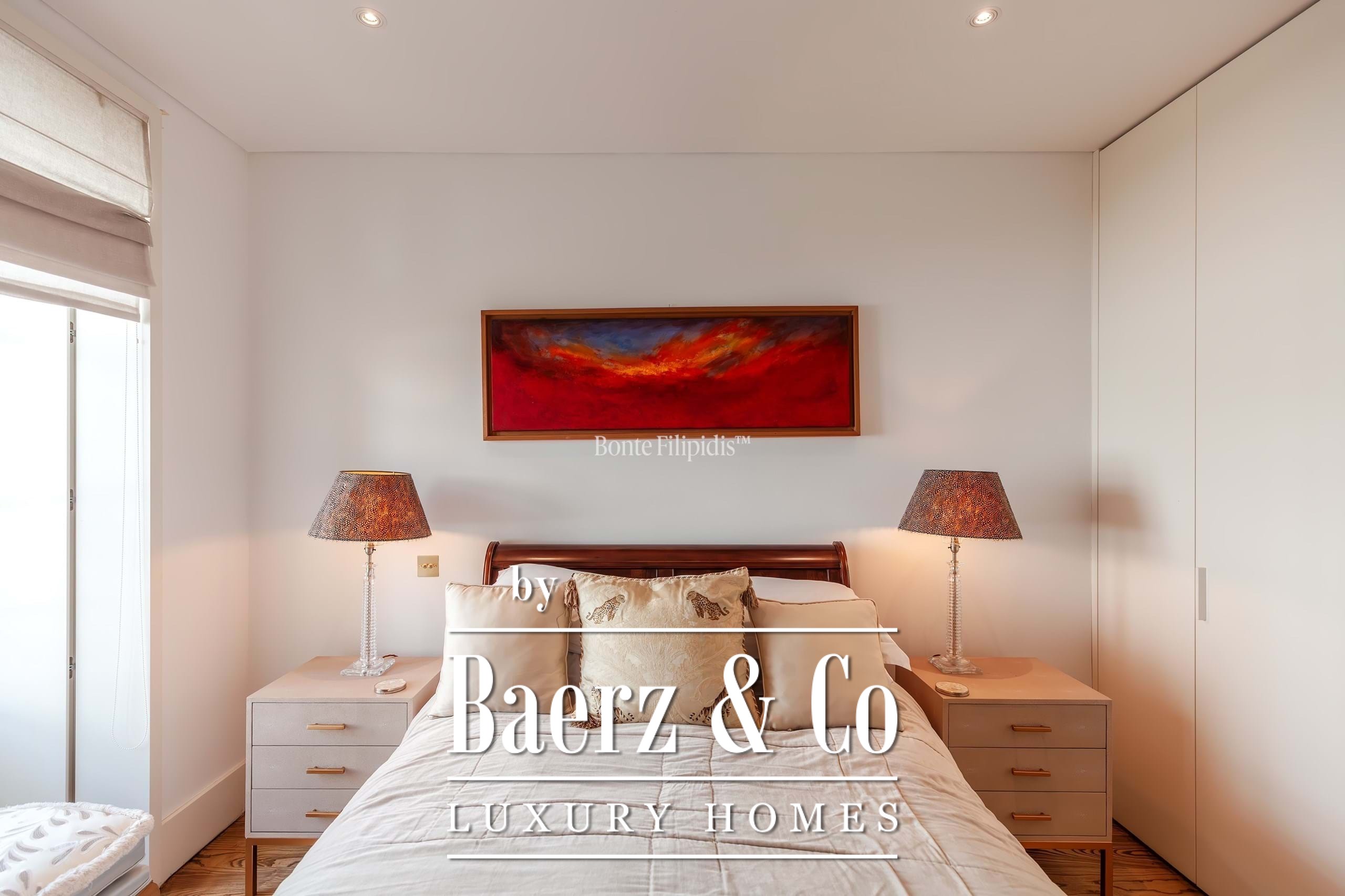A private garden opens into expansive condominium grounds, creating a secluded retreat in the city. Views of the Igreja de Santos-o-Velho and lush gardens on either side fill the apartment with light. The property also includes four car parking spaces and two large storerooms, all set within walking distance of cafés, river, restaurants, and international schools.