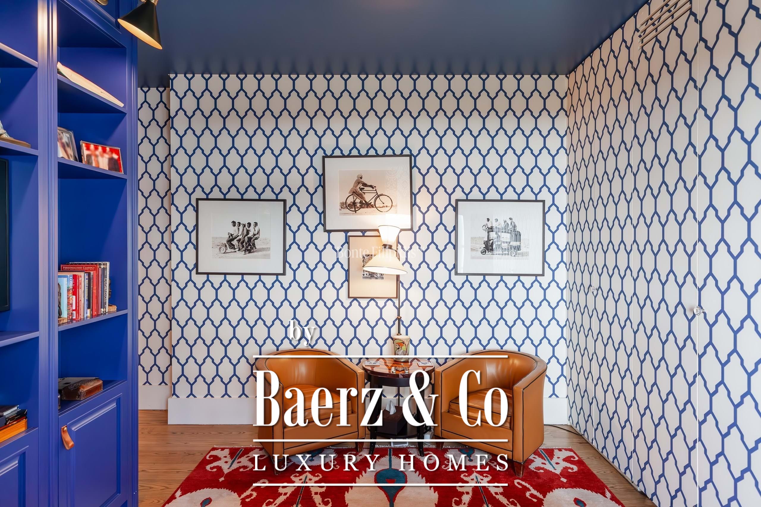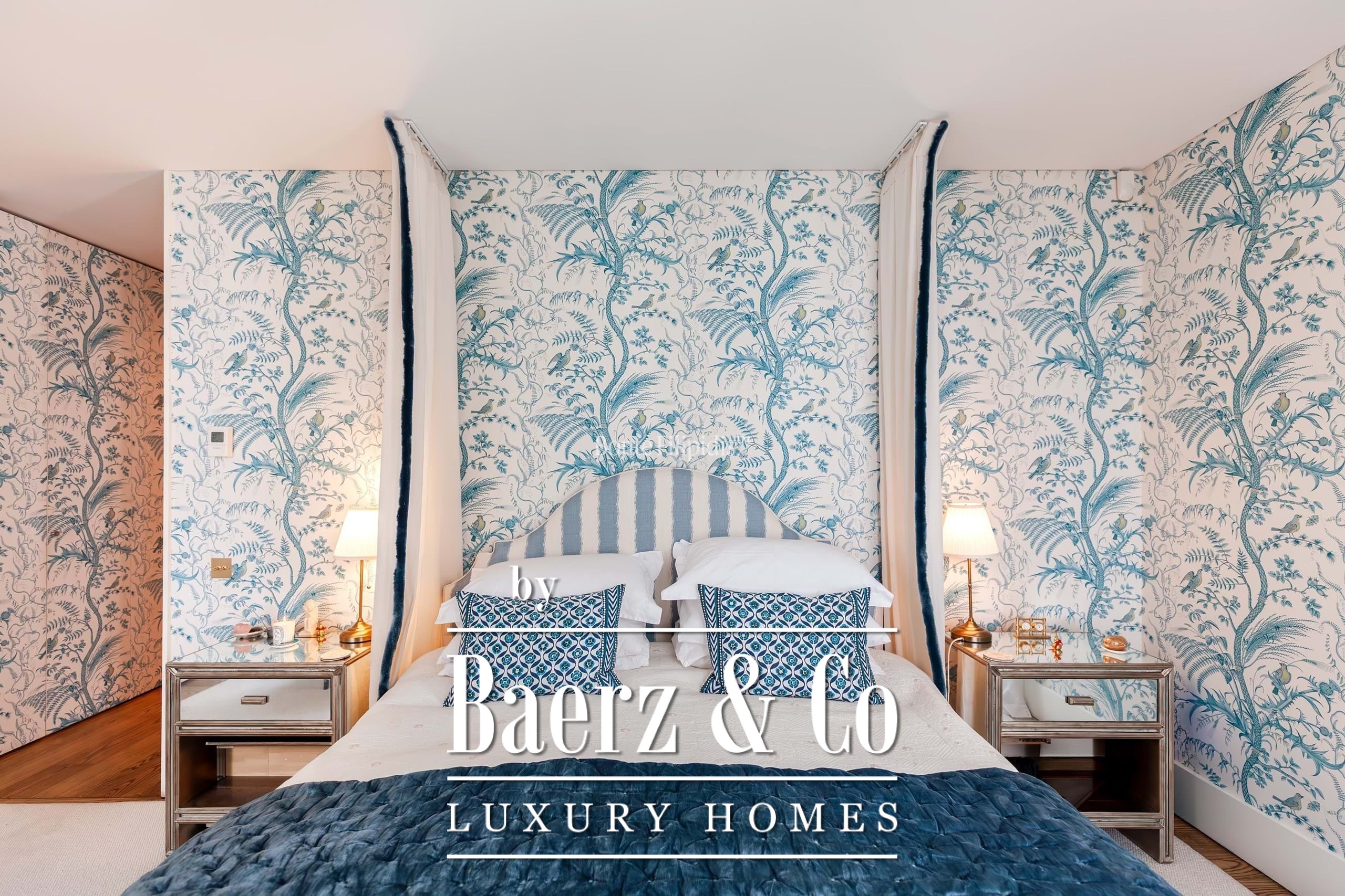 Each detail has been thoughtfully curated by architects Aires Mateus and Frederico Valsassina. Generous reception rooms flow into peaceful private spaces, with the option to create a home office or a gym. The living areas are separated from the bedrooms, ensuring calm and discretion throughout. The large kitchen is fully equipped, complemented by a wine cellar, filtered water system, and separate laundry. Comfort is woven into every element, with air conditioning, underfloor heating, double glazing, and a working fireplace.