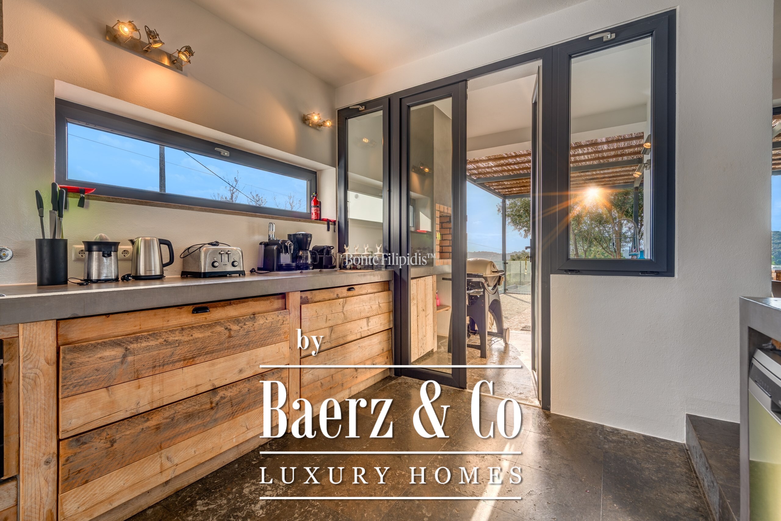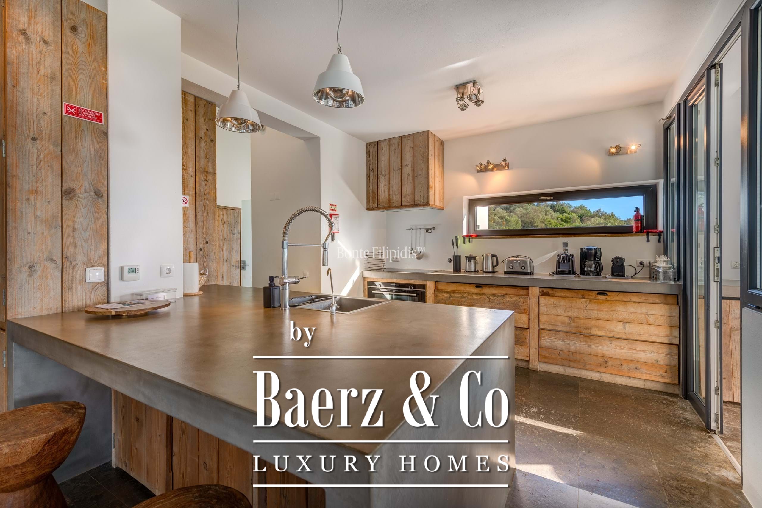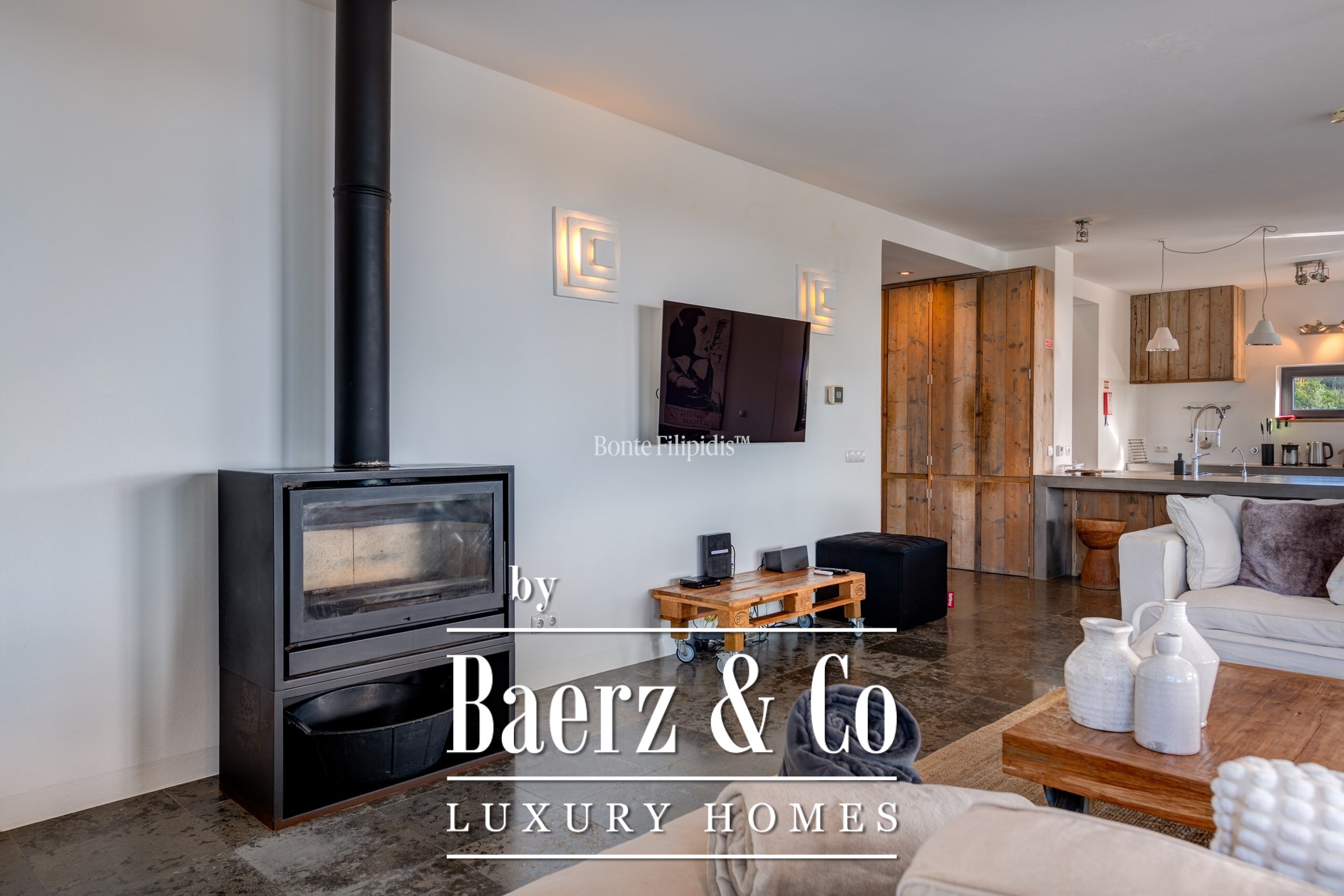 Set on a 2,440 m² plot, mature olive groves and vineyards frame landscaped gardens, while a private pool and jacuzzi for six evoke privacy and ease. Energy efficiency defines the experience, with a 48-panel photovoltaic system, underfloor heating, and a Salamander fireplace offering year-round comfort. Indoors and out, fully equipped kitchens anticipate both quiet mornings and convivial gatherings.