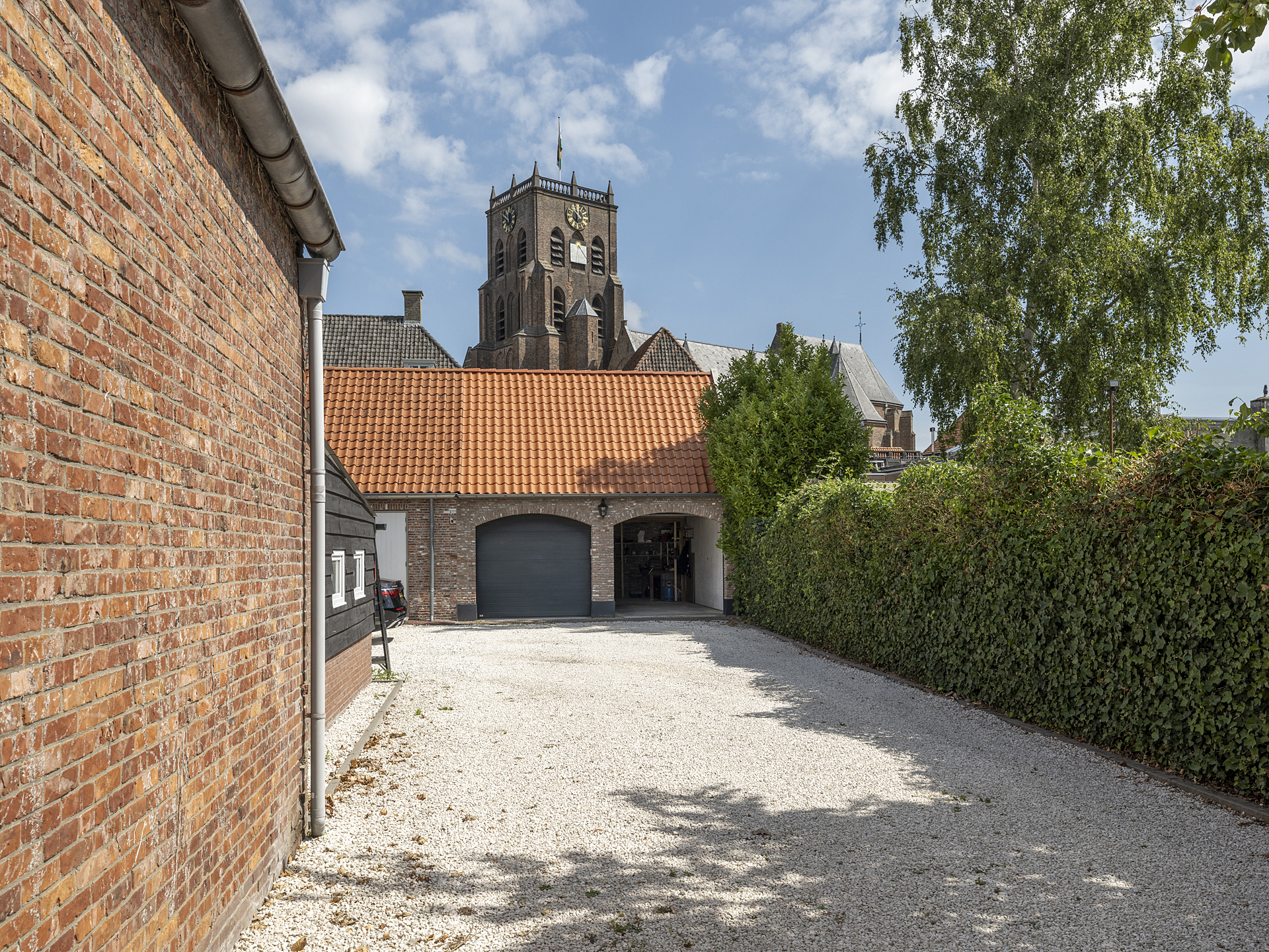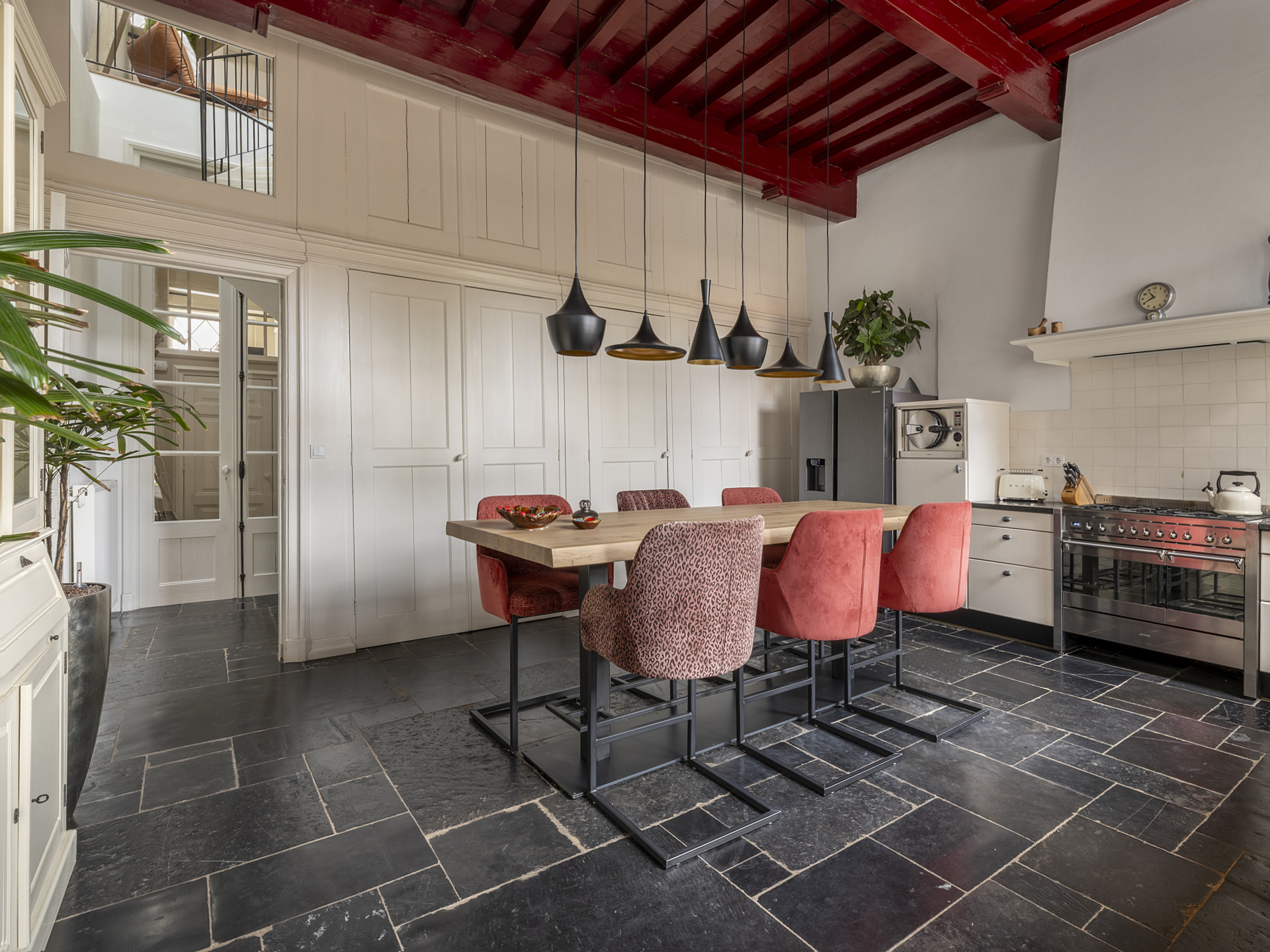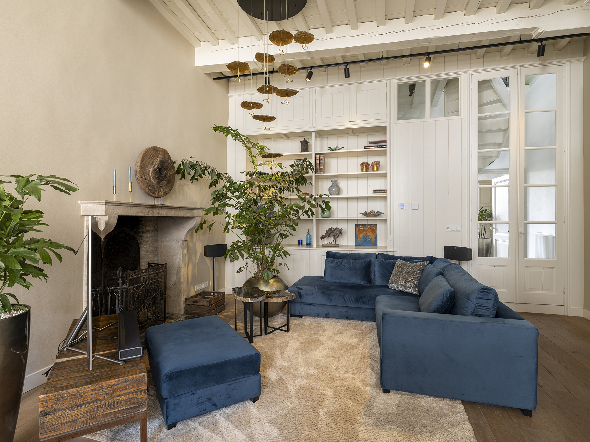 Herenhuis Geertruidenberg stands at the edge of the town’s iconic market square, anchoring a piece of history in refined comfort. This fully modernised property offers 268 m² of living space, thoughtfully arranged to preserve authentic character while introducing contemporary ease. Within, a large L-shaped living room features solid oak floors, a natural stone fireplace, and a monumentally scaled, vaulted cellar beneath. The adjoining living kitchen is finished with Belgian bluestone, antique cabinetry, and opens to views of a newly landscaped, southwest-facing garden.