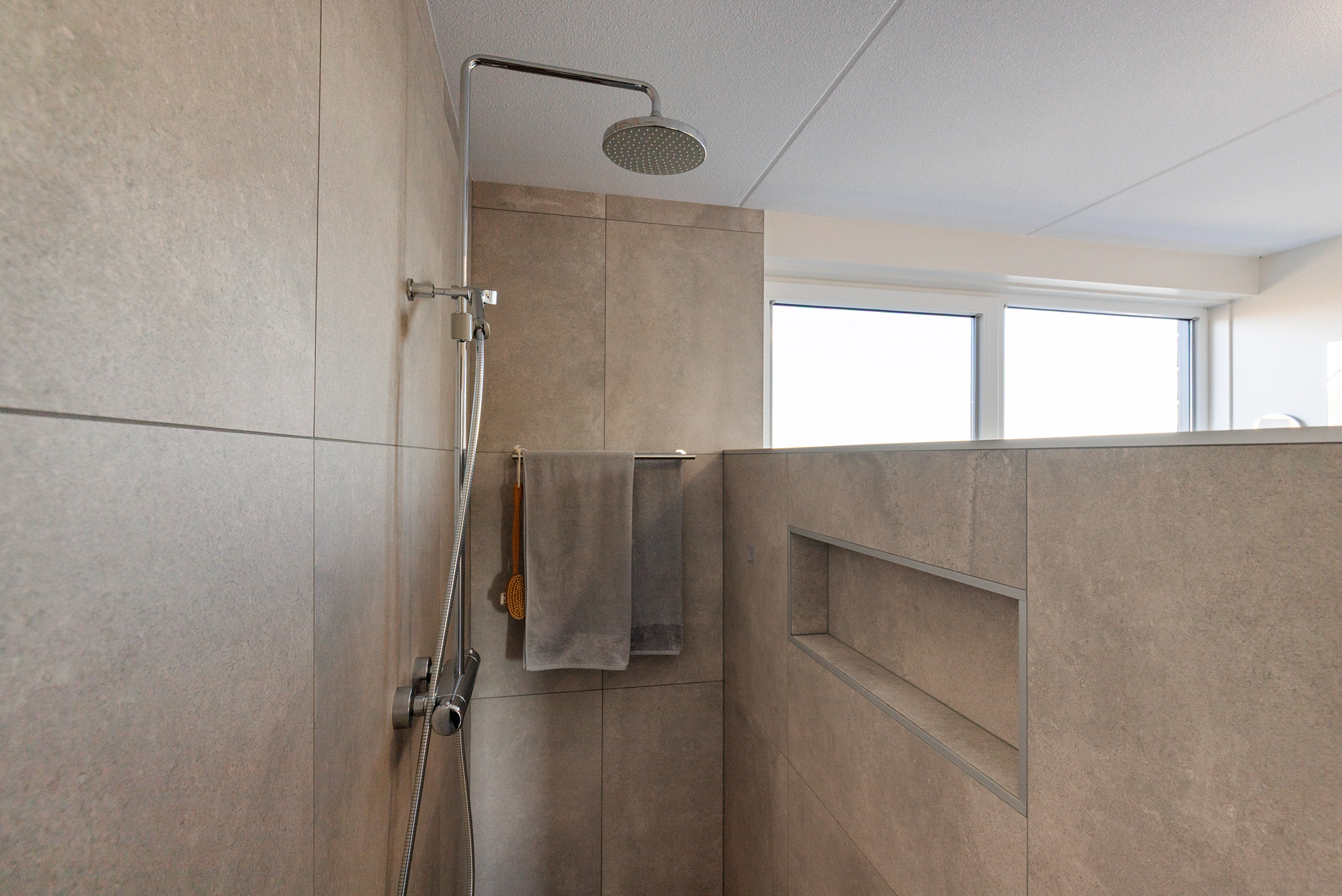 Via a fixed staircase, you reach the second floor, with two bedrooms and a large walk-in storage room (possible additional bathroom). Both rooms have high vaulted ceilings, creating a playful and spacious atmosphere. One room also features its own walk-in closet.
