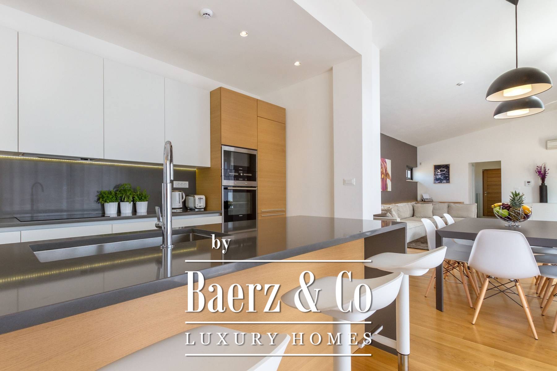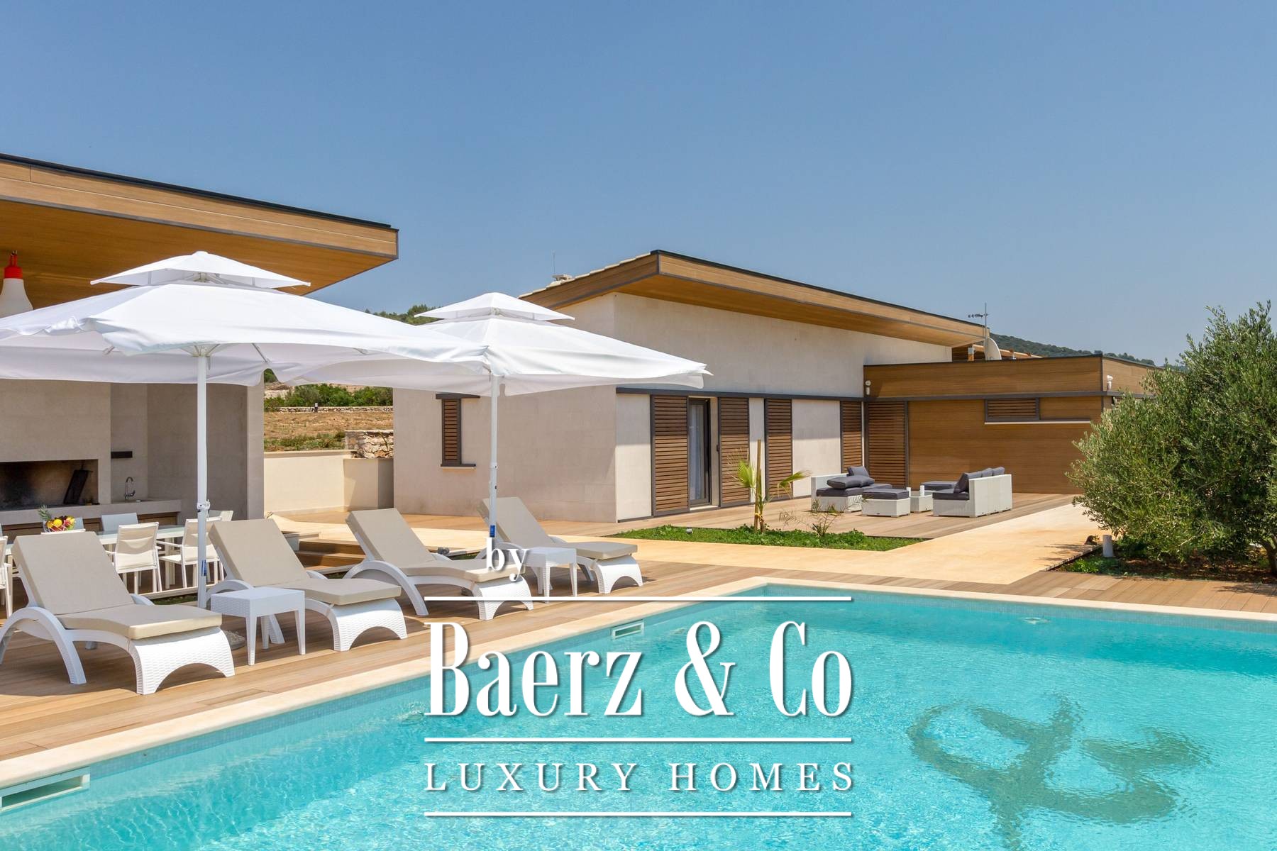and three bedrooms, one of which has an attached bathroom. In the basement there is another room with a bathroom, a wine cellar, and a spa area (hot tub, massage table, gym and sauna).The outdoor space is refined with a barbecue, a lighted tennis court, a bowling alley and a detached garden house with a studio apartment. The facility is equipped with a high-end electronic locking system and a video surveillance system and an alarm for additional security.It is less than two kilometers from the beautiful Pokrivenik bay.