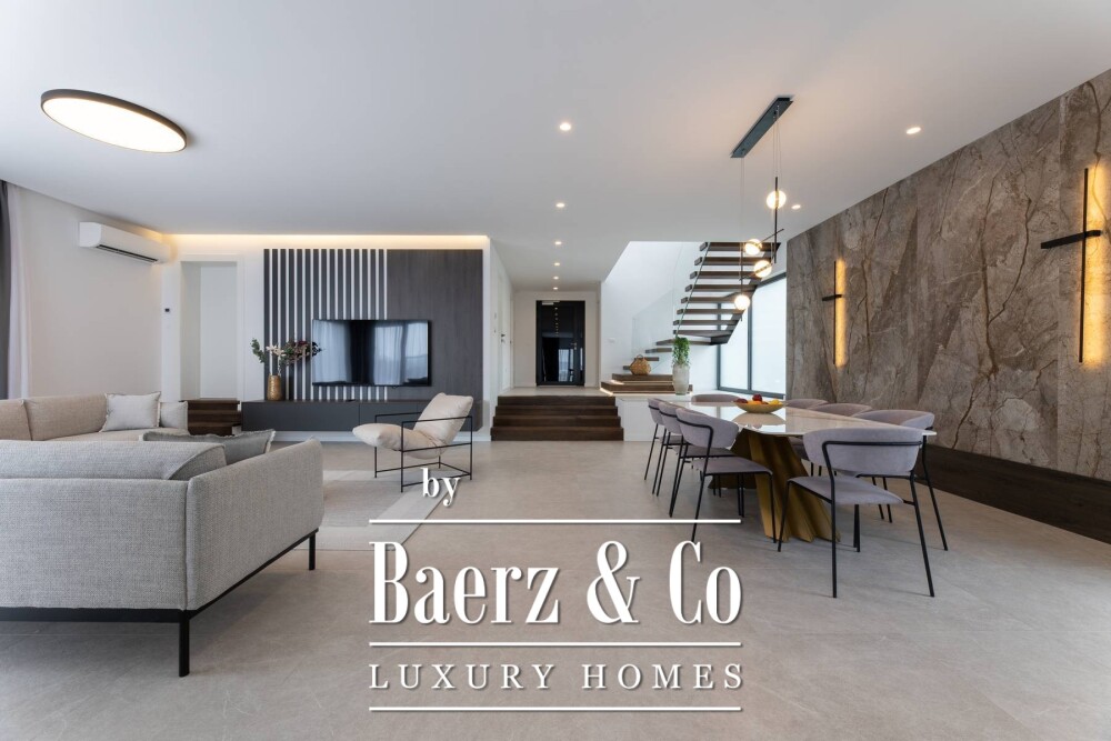 Interior finishes reflect a commitment to quality and durability, from designer doors and high-grade aluminum openings to refined ceramics and select parquet flooring. Each space is carefully detailed to invite relaxation or invigorate an active lifestyle, with amenities such as a pool table, gym, sauna, swimming pool, and playground creating a versatile atmosphere for extended family gatherings or serene retreat.