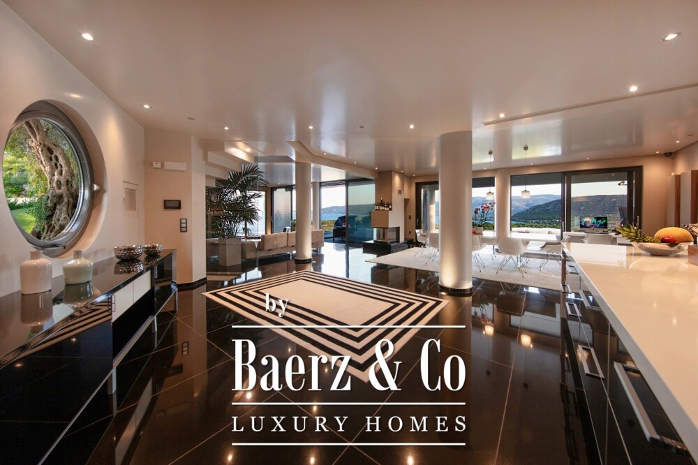 Bordering non-buildable land, the villa guarantees privacy and views that remain unspoiled. Access to Athens International Airport is 98 kilometres distant, Corinth 8 kilometres, and the nearest beach rests only a kilometre away, placing the luxury villa for sale in Kechries within reach of both history and coastline.
