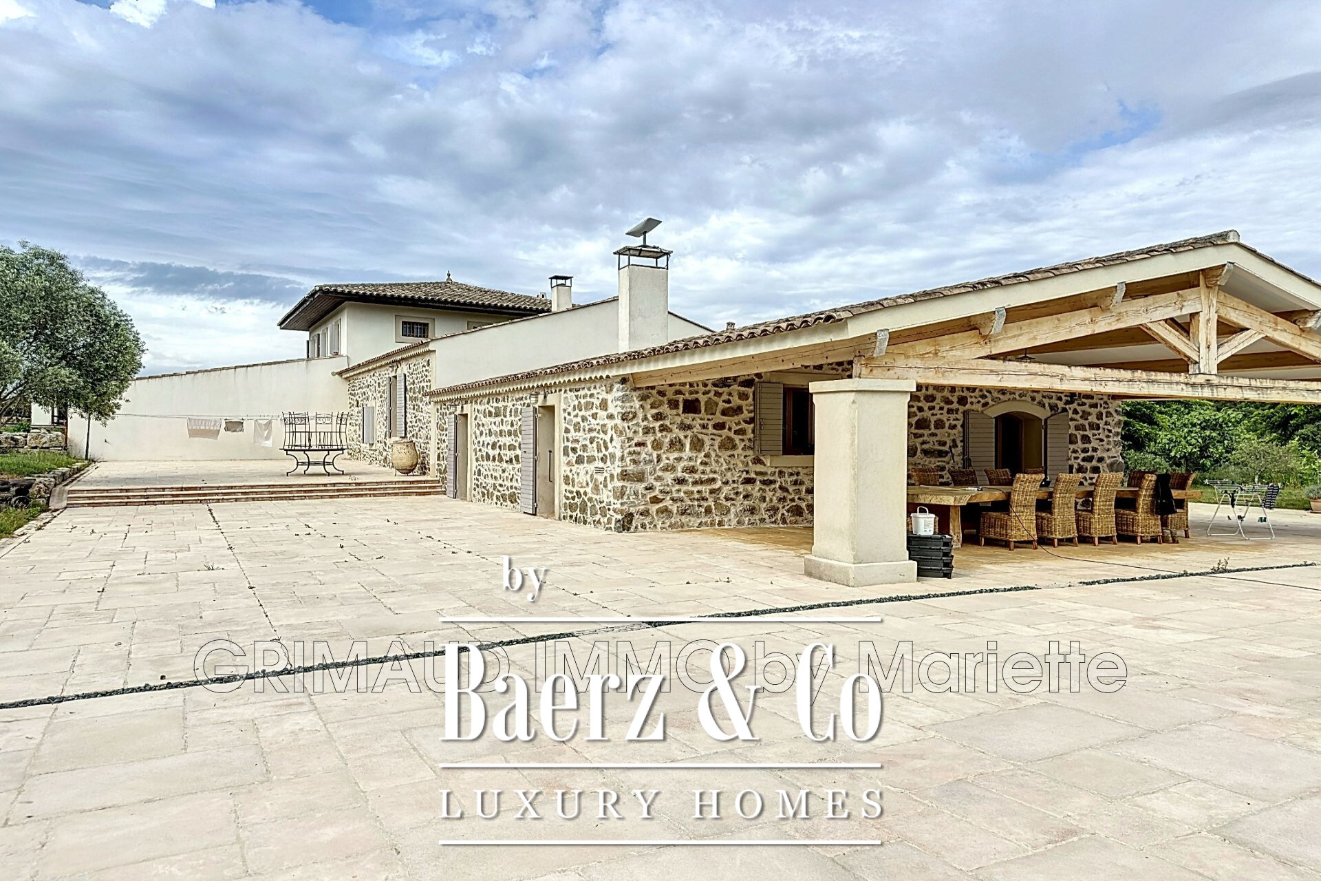 Propriété Le Plan-de-la-Tour stands as a quietly commanding estate, nestled on 11 hectares where cultivated earth meets the understated rhythms of rural France. This property, constructed entirely of dry stone, is framed by olive trees and purposeful landscaping, offering 450 m² of living space curated for privacy and connection to nature.
