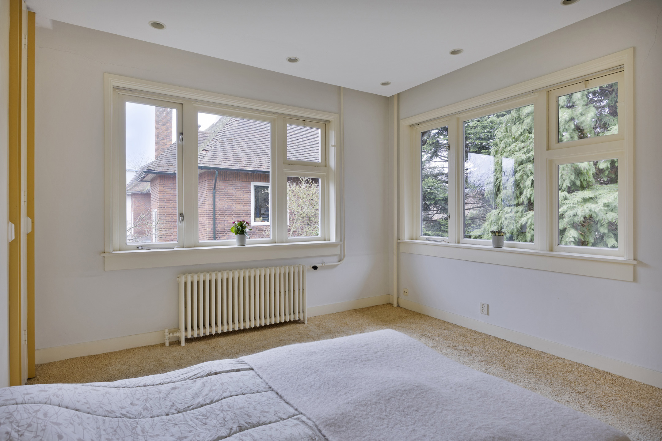 De centrale overloop biedt toegang tot alle kamers. Daarbij bevinden zich aan de voorzijde twee slaapkamers, waarvan één met openslaande deuren naar het ruime dakterras en weids uitzicht over de voortuin en Fruinlaan. Aan de achterzijde bevinden zich ook twee slaapkamers, waarvan één in gebruik is als de ouderslaapkamer met een direct verbinding naar de badkamer. Op de overloop bevindt zich nog een aparte wc met fonteintje. Trouwens, alle slaapkamers beschikken over een eigen wastafel met marmeren achterblad.