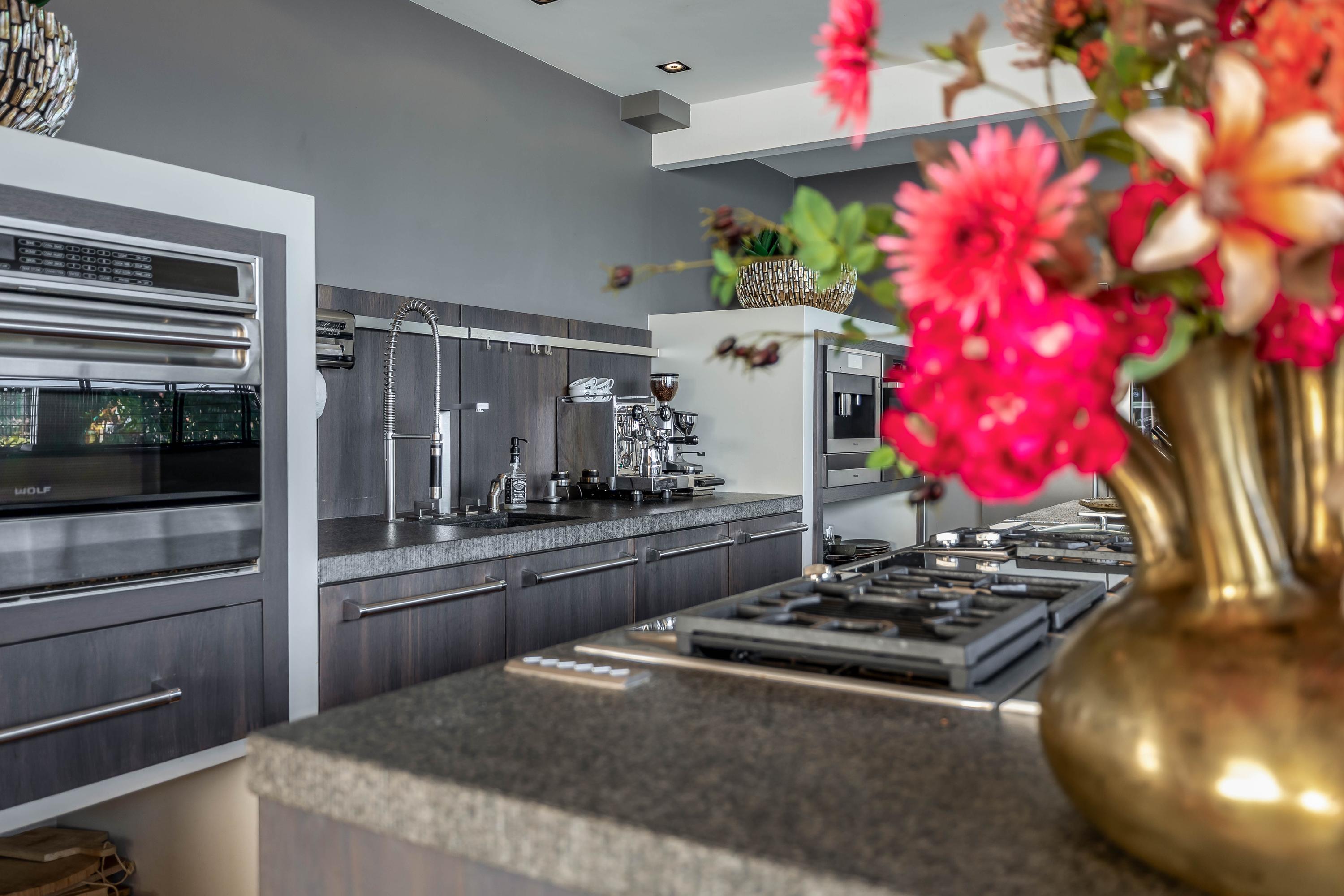 The kitchen forms the stylish centerpiece of the home. This is a place where cooking and spending time together come together effortlessly. The layout is spacious, with plenty of workspace and high-quality built-in appliances. Ideal for everyday use, but also perfect for those who love entertaining and cooking extensively. The finish is luxurious and warm, matching the character of the villa.