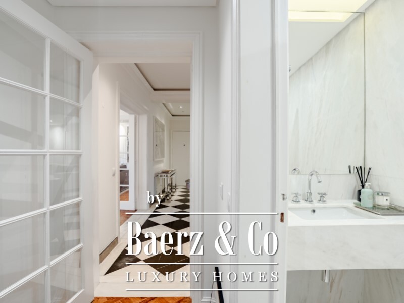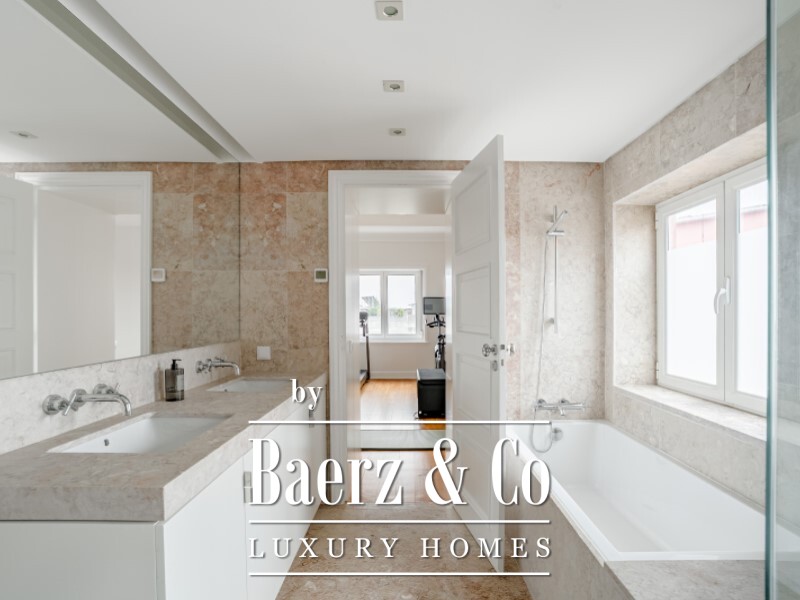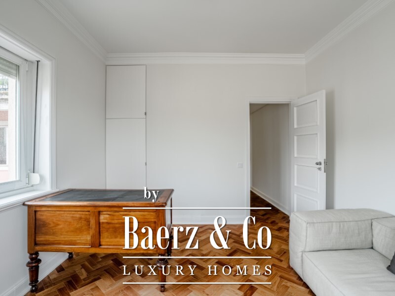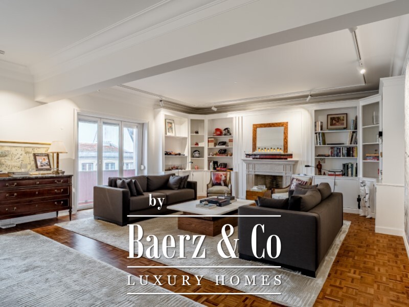 Apartment Estrela Lisbon offers 308 m² of refined living in one of Lisbon’s most revered neighborhoods. This four bedroom residence is positioned in the distinguished Estrela quarter, moments from the Basilica and the garden, where classical architecture meets contemporary craftsmanship. The living room encompasses over 50 m², articulated by a decorative fireplace, built-in bookshelves and an atmosphere of measured elegance. Four ensuite bedrooms provide privacy and generous natural light, with the principal suite offering a walk-in closet, a dedicated office or separate lounge, and a balcony.