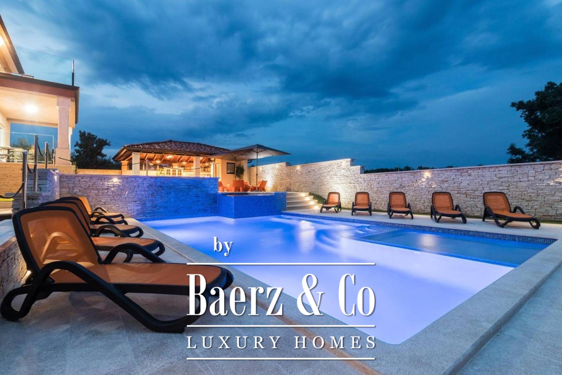 Villa Ližnjan with heated pool in southern Istria is defined by its 400 m² of refined living space, seven bedrooms, and sweeping views of the surrounding landscape. This villa stands on a 1,636 m² plot, offering total immersion in nature while remaining near Pula, the Adriatic, and local amenities. The ground floor welcomes with a kitchen, living, and dining areas opening to the porch and landscaped gardens, creating a seamless indoor-outdoor rhythm. On the first and second floors, the layout features six bedrooms, each with balconies that frame nature, and master suites equipped with both bathtubs and showers. A large terrace takes full advantage of the views, with a jacuzzi set against the landscape. Outdoors, a heated pool illuminated by LED lighting is complemented by a spa zone, while the fully equipped summer kitchen and dining area invite gatherings for twelve beneath a shaded porch. The architecture balances natural stone and granite, imbuing the residence with understated elegance. Recreational amenities include table tennis, billiards, darts, a fitness room, sauna, whirlpool, a playground, and a private basketball court. Villa Ližnjan positions itself as a distinctive opportunity among luxury villas for sale in Ližnjan, catering to those who seek privacy, quality, and a strong sense of place in Croatia’s Istrian heartland.