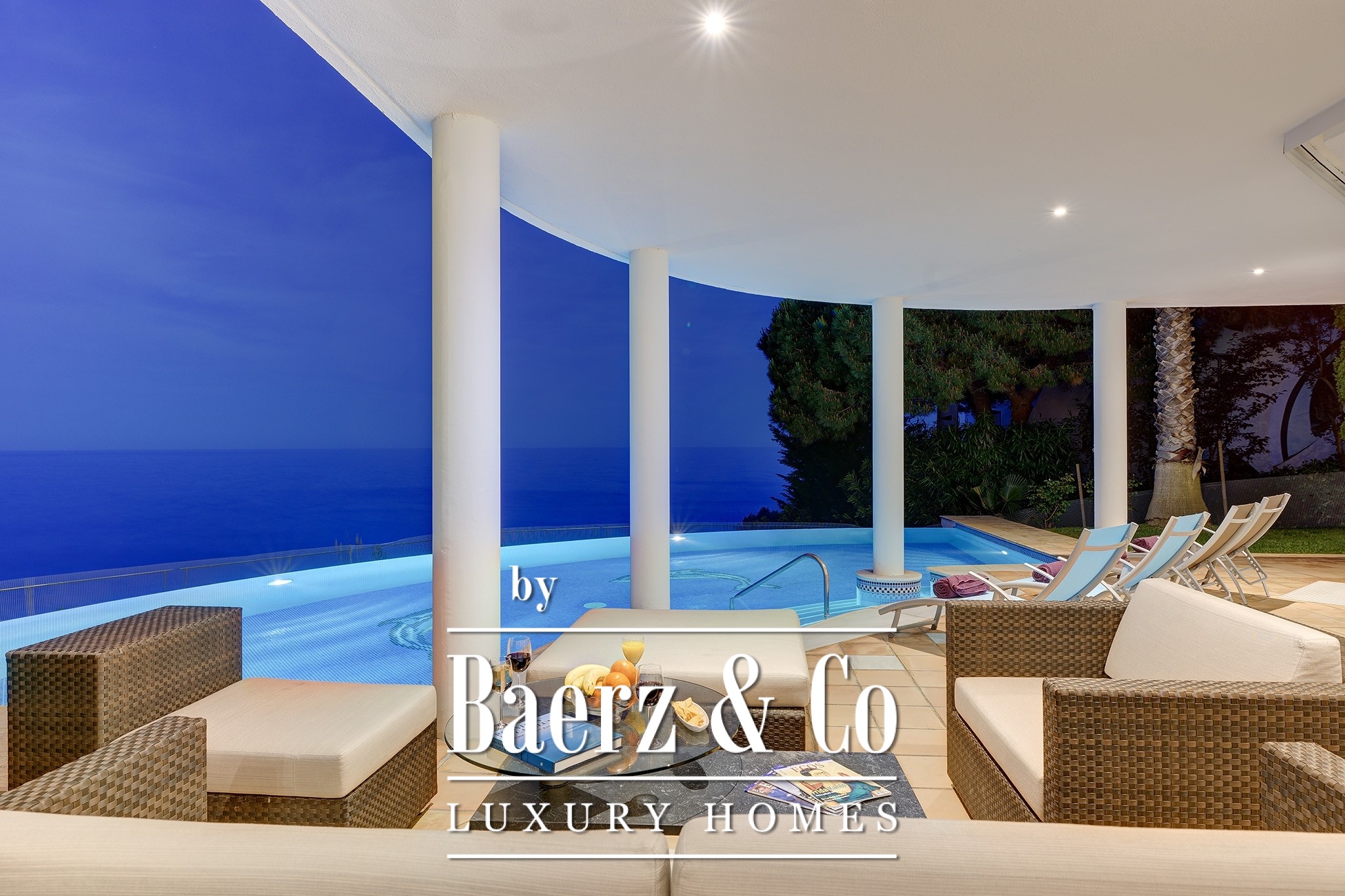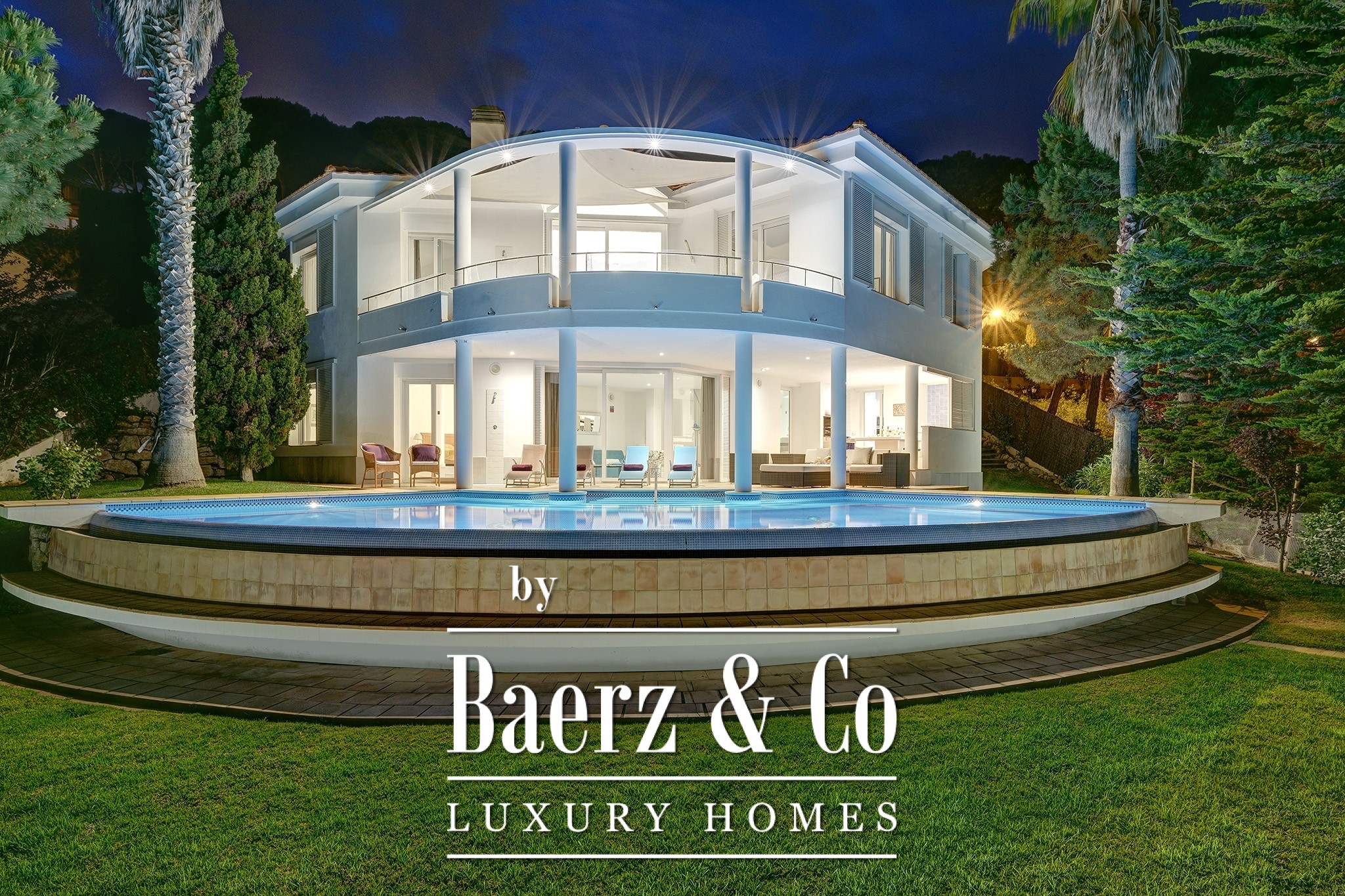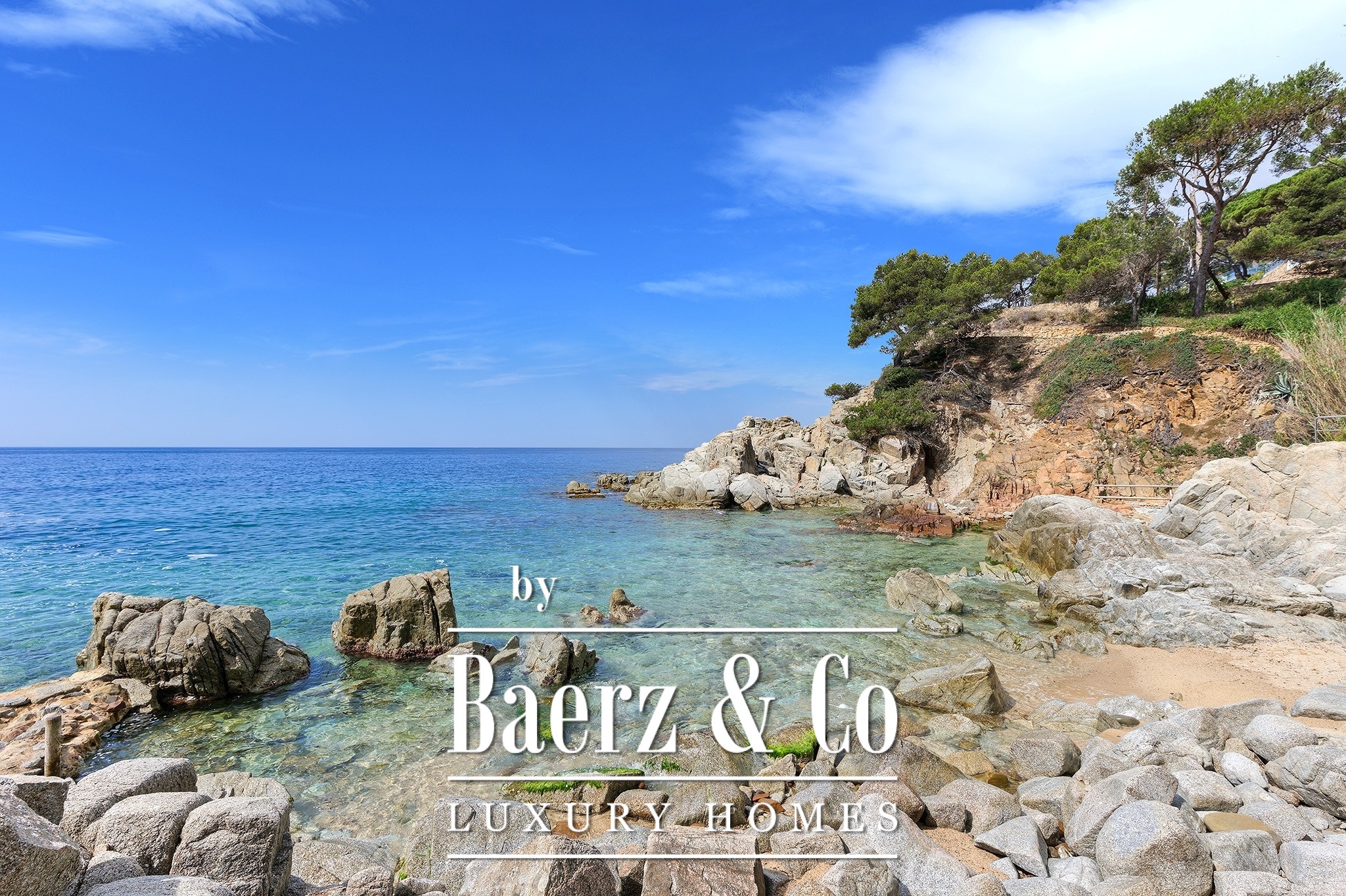 Villa Lloret de Mar stands just ten minutes from Cala Sa Caleta, seamlessly blending privacy, comfort, and modern Mediterranean design. Set on a secluded 1,215 m² plot with 412 m² of built space, this villa invites a lifestyle shaped by natural light, tranquil gardens, and direct proximity to the coastline. The core of the home is a generous living area that opens to a meticulously landscaped garden with private pool, framing sea views and allowing for effortless indoor-outdoor living.