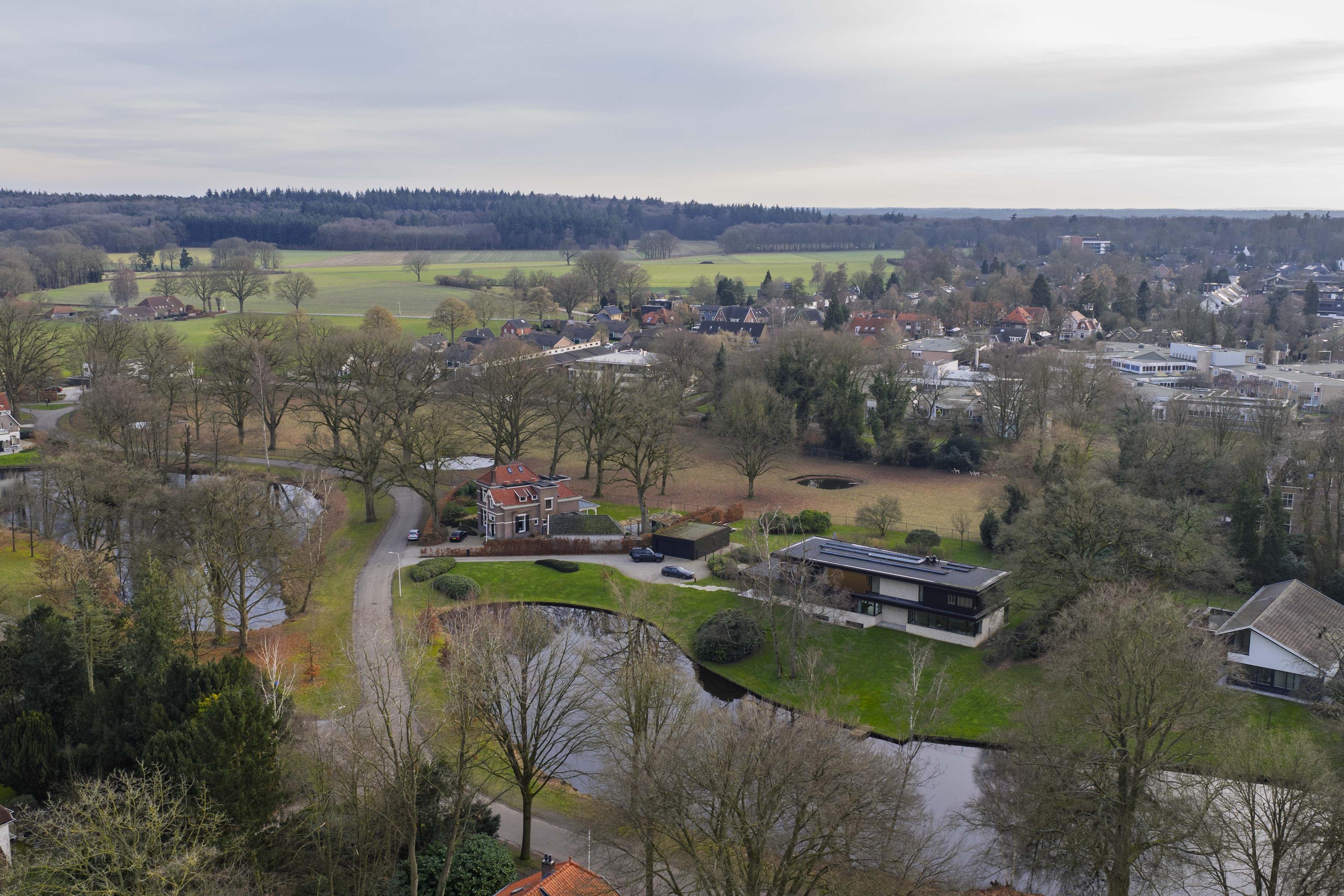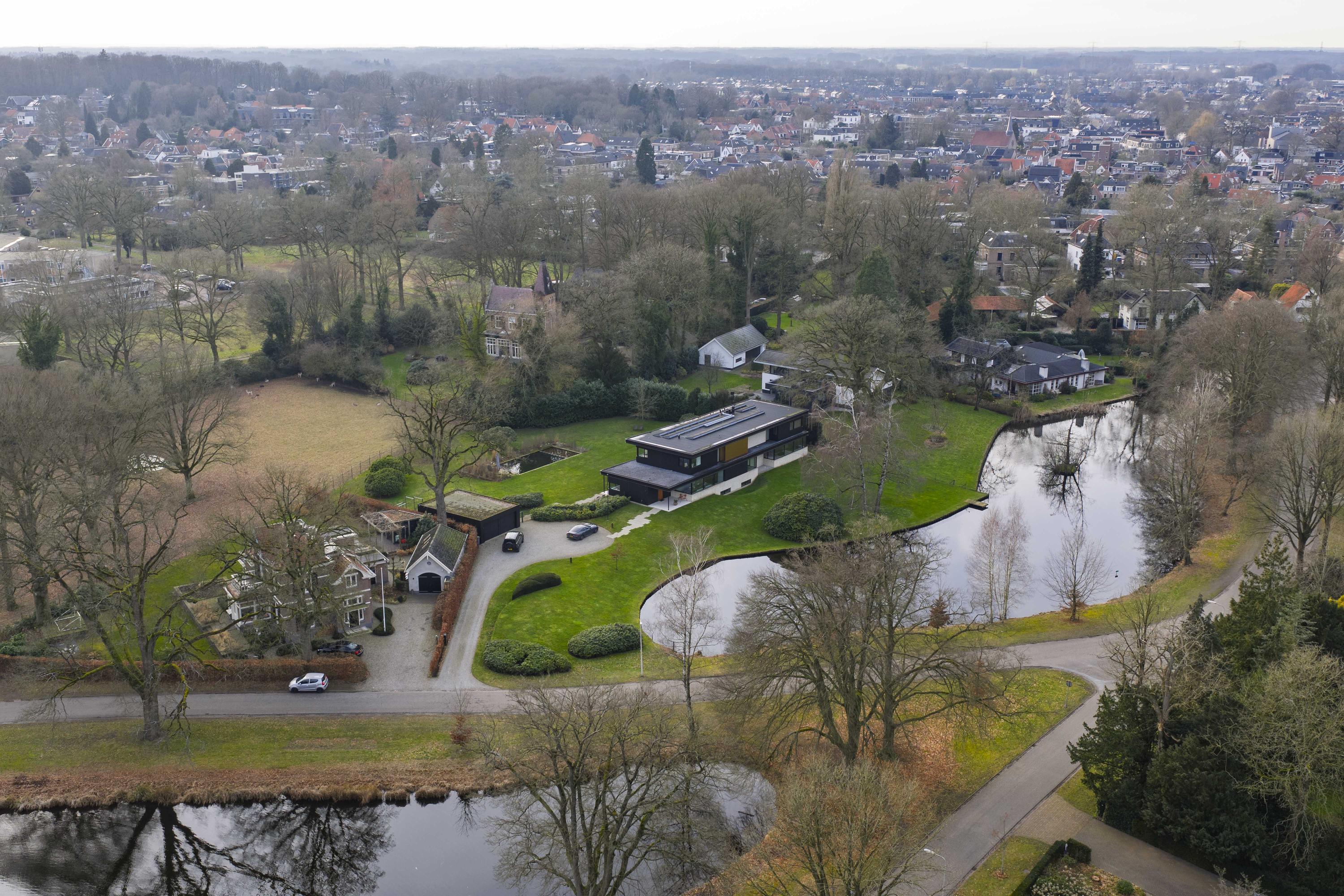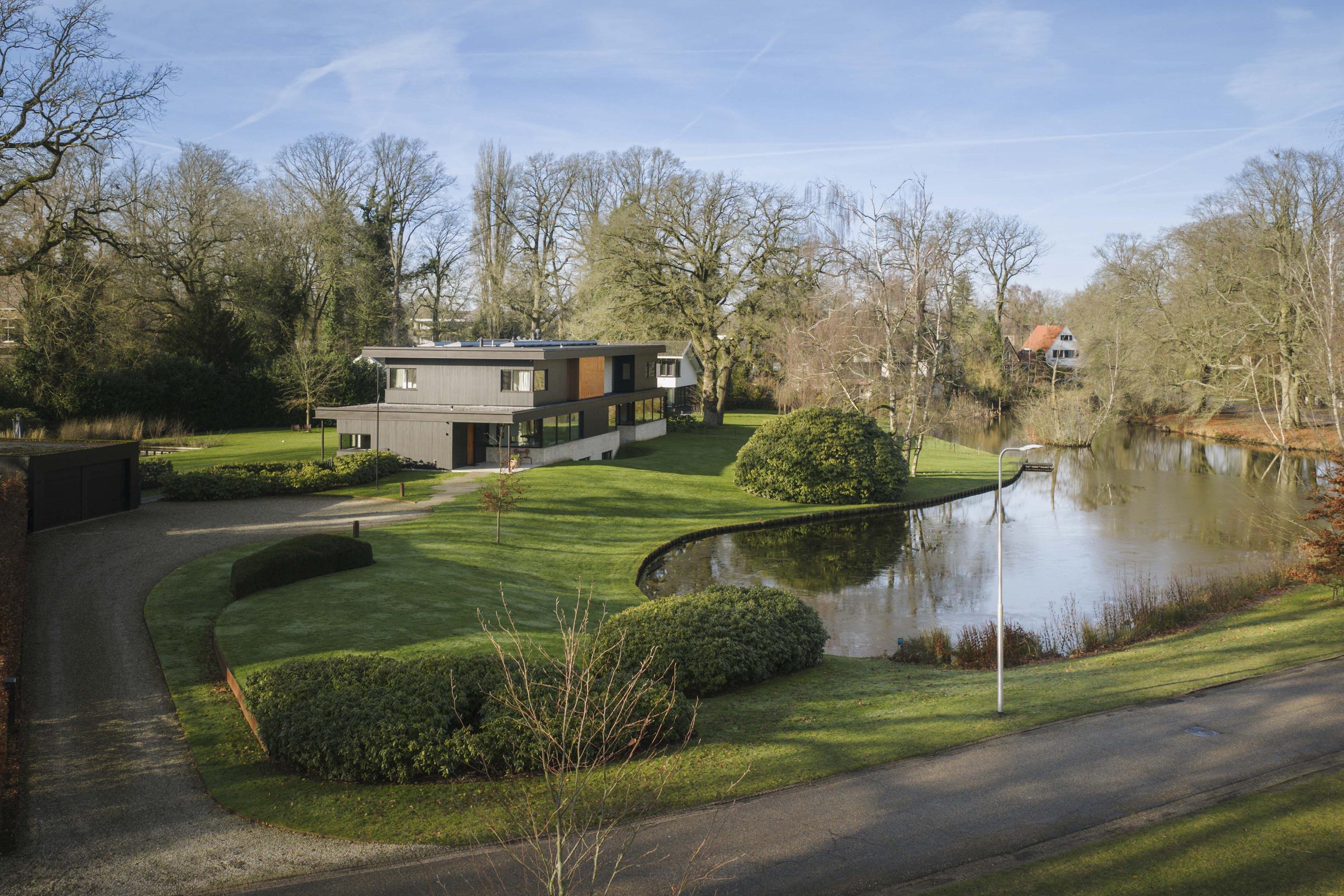 This striking architect-designed villa was built in 2019 in the heart of the picturesque Berkeloord residential area. Villa Vijverzicht is carefully positioned on a generous plot of 6,635 m² and forms a natural part of the park-like surroundings. At the front, the house overlooks the ponds of Berkeloord, and at the rear, the deer park of Lochem. Here you can live in peace and space, with maximum privacy and a permanent unobstructed view.