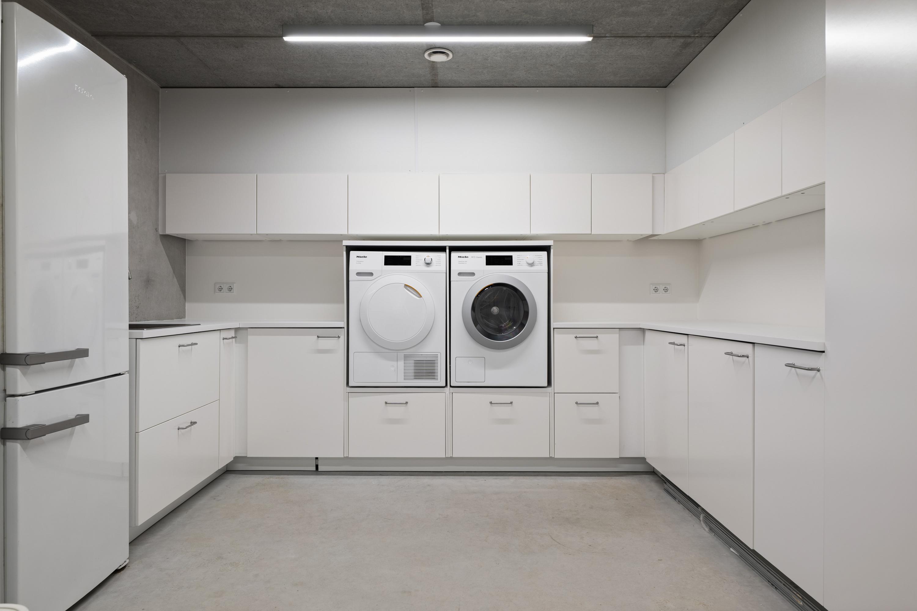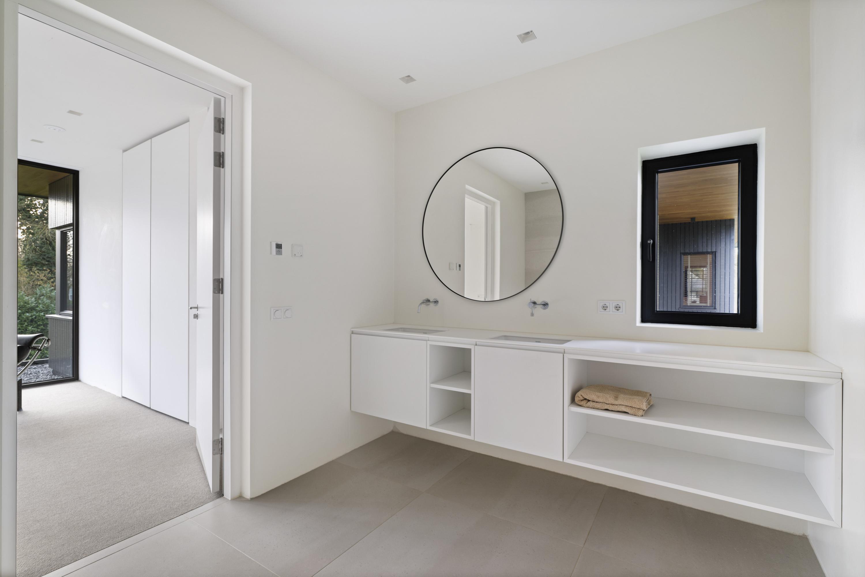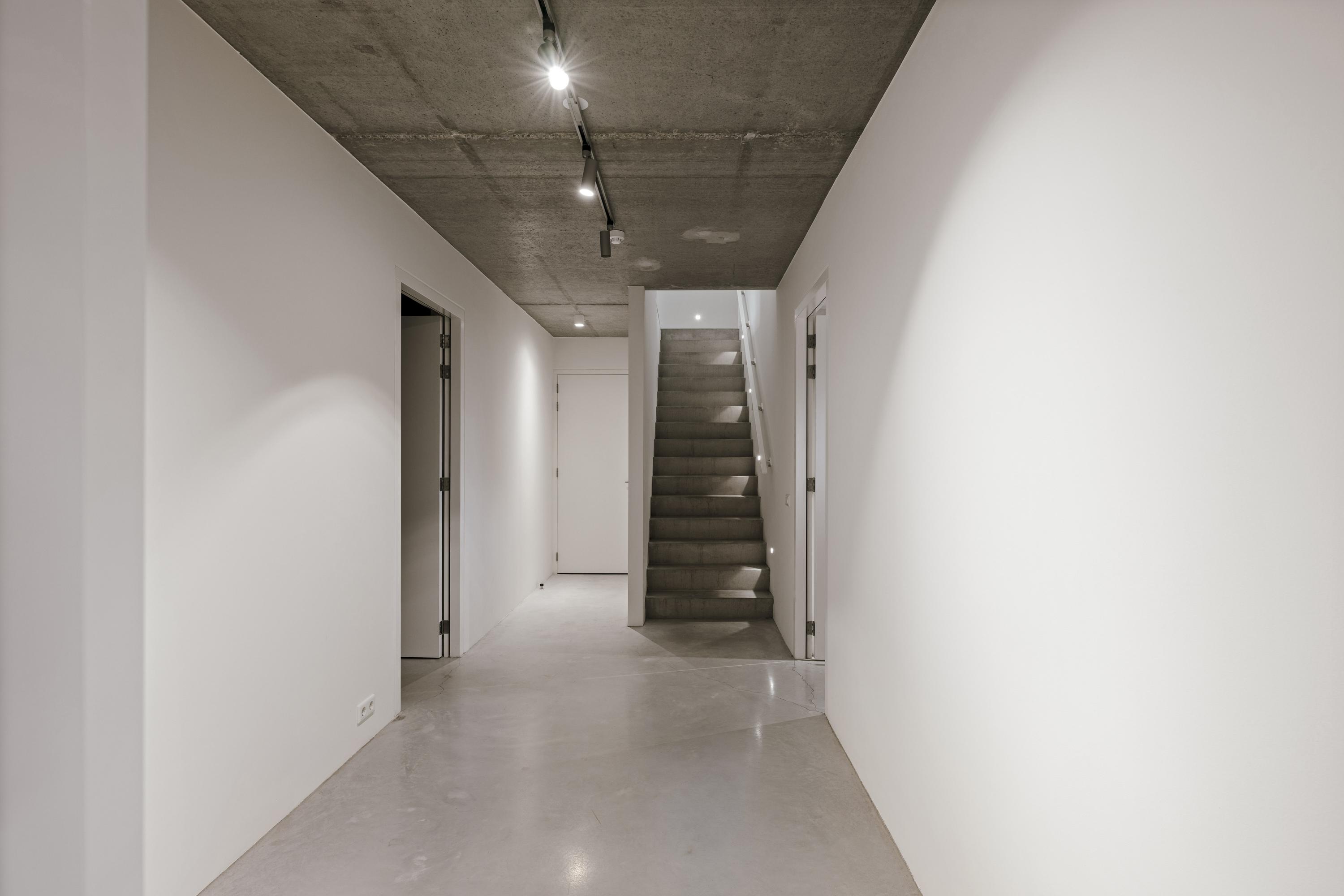 The basement is a fully-fledged living area with natural light at the front. The robust concrete ceilings and walls give this floor its own contemporary character. Here you will find a spacious studio, chill-out or fitness room, an extra bedroom with en-suite bathroom, a large laundry room and the technical installations. The house is equipped with a geothermal heat pump, 30 solar panels and a buffer tank of approximately 750 litres. The A++ energy label underlines the sustainable and future-proof character of the house.