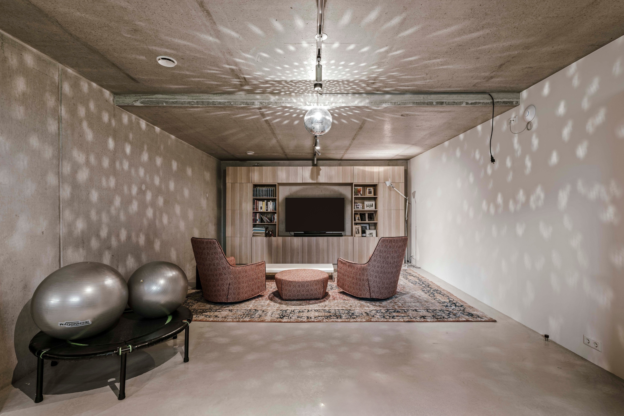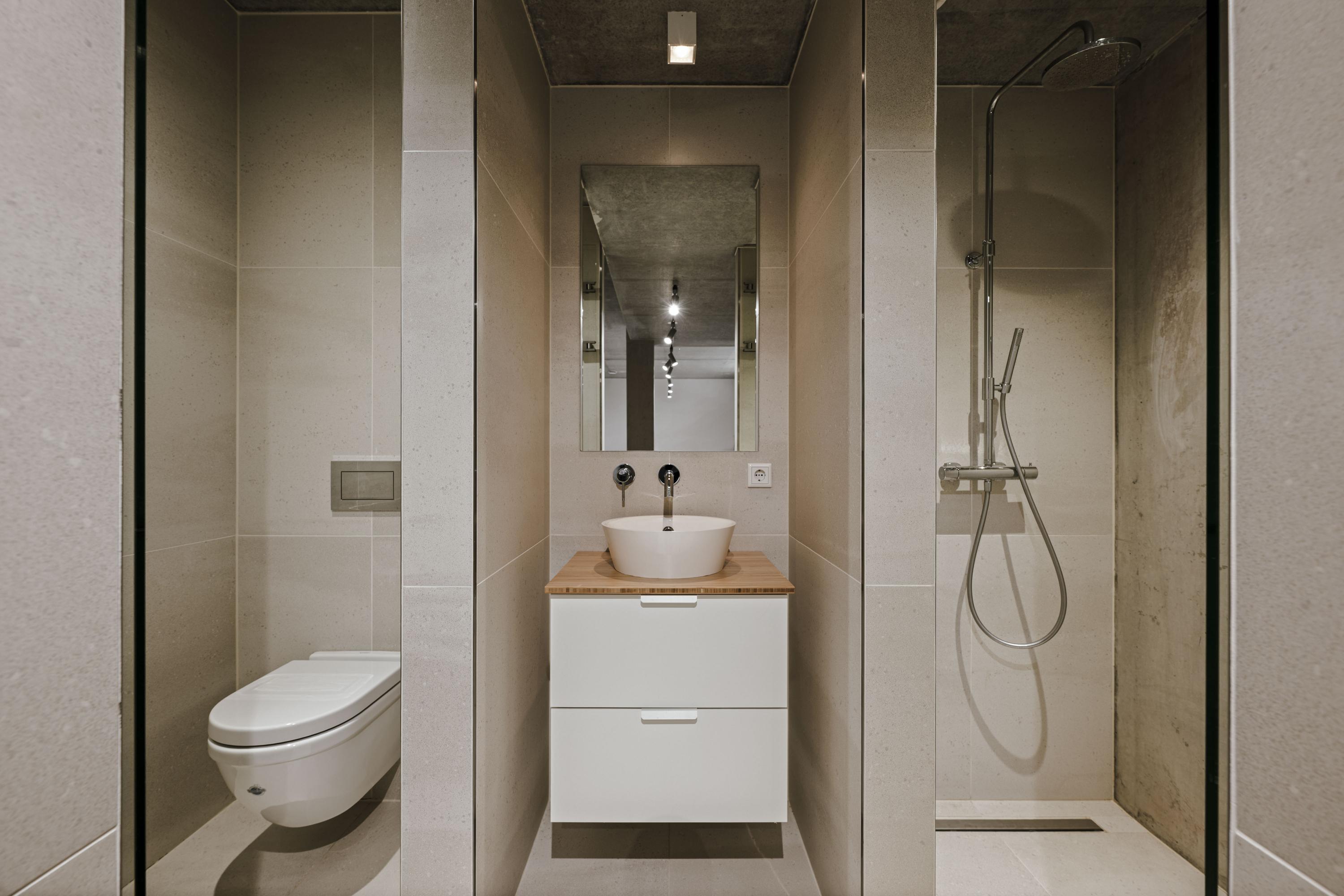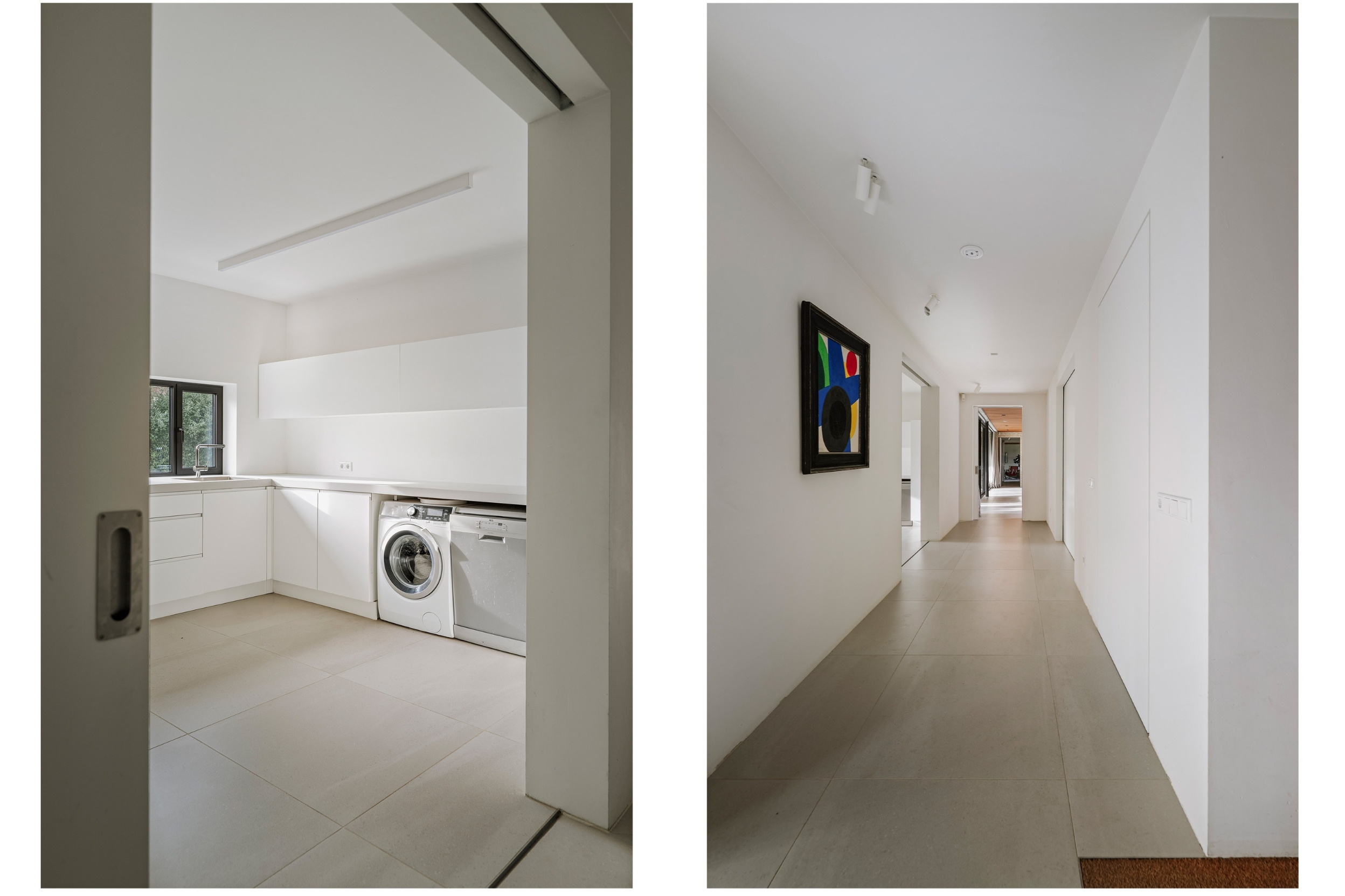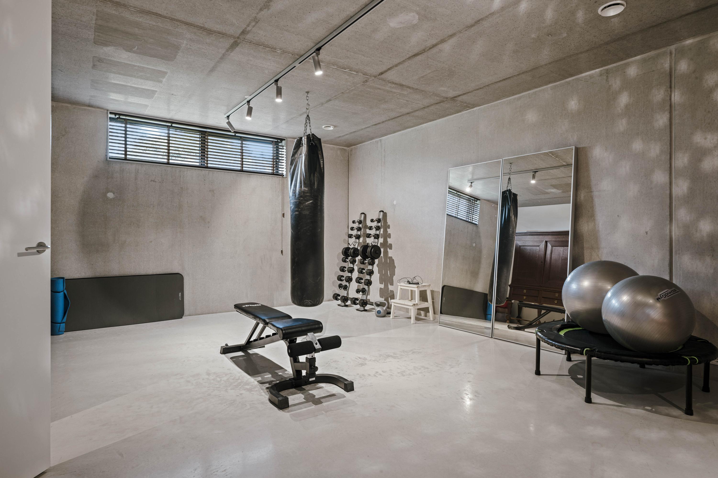 The basement is a fully-fledged living area with natural light at the front. The robust concrete ceilings and walls give this floor its own contemporary character. Here you will find a spacious studio, chill-out or fitness room, an extra bedroom with en-suite bathroom, a large laundry room and the technical installations. The house is equipped with a geothermal heat pump, 30 solar panels and a buffer tank of approximately 750 litres. The A++ energy label underlines the sustainable and future-proof character of the house.