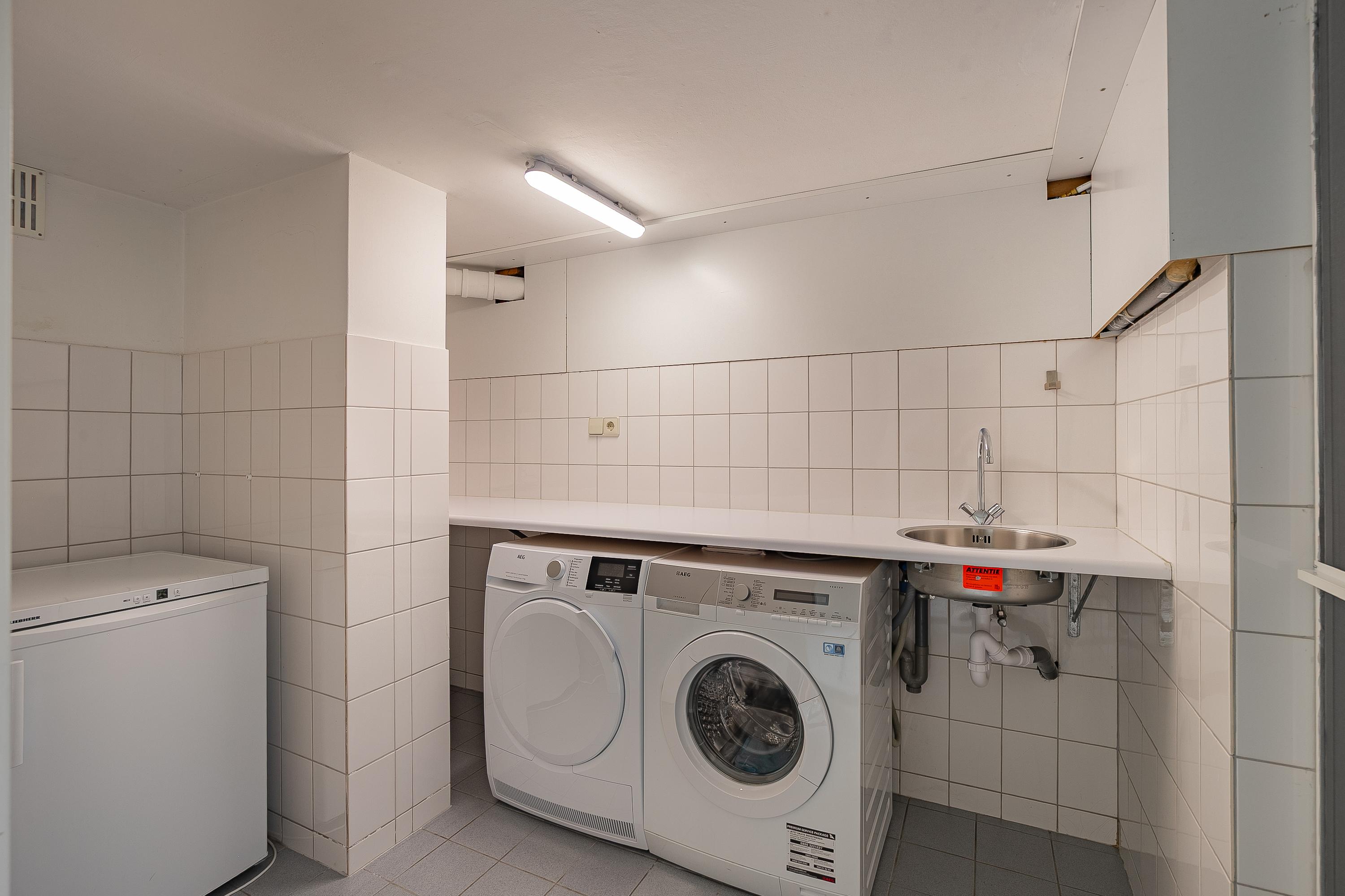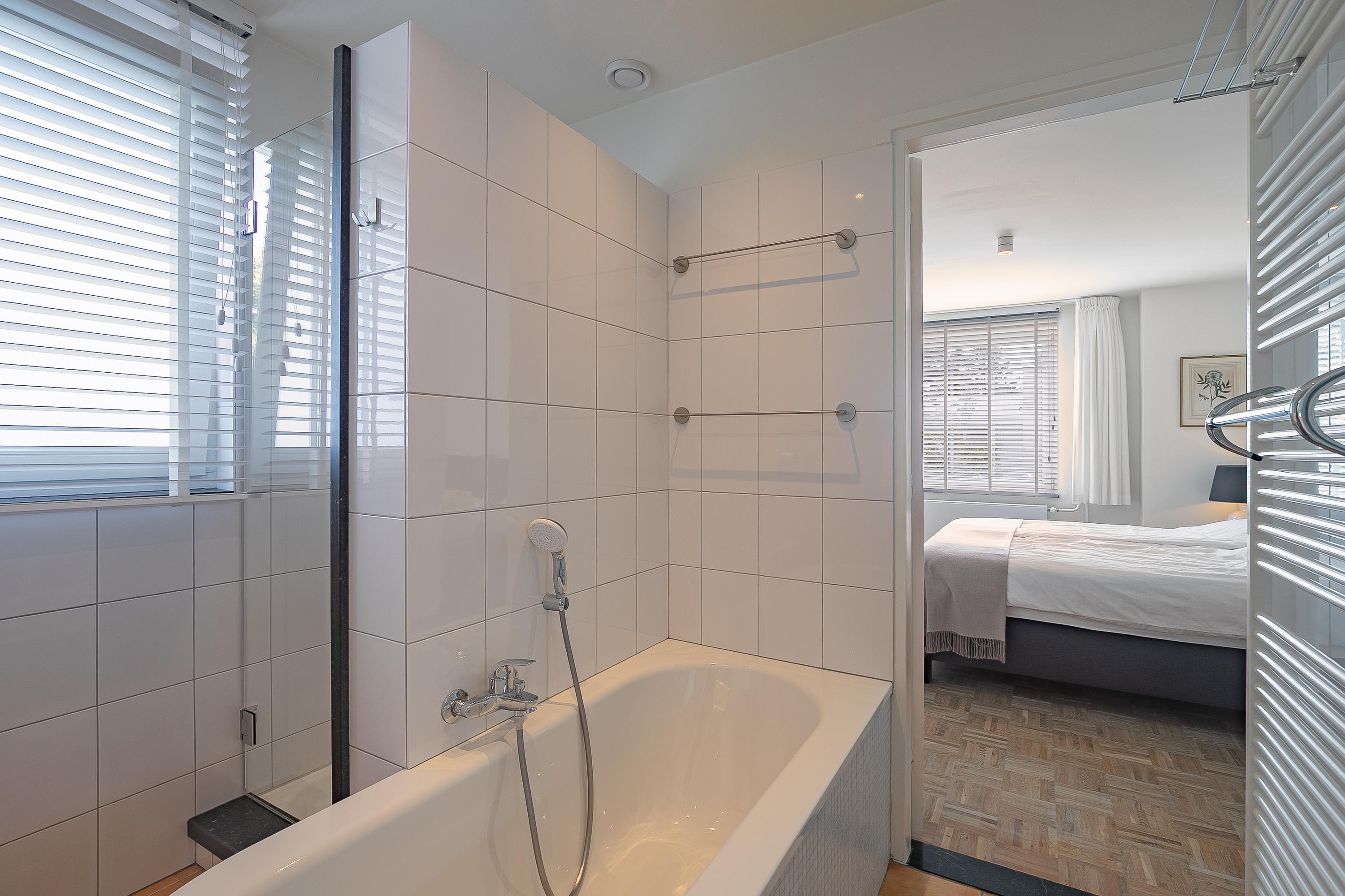 Upstairs, four bedrooms are complemented by bespoke cupboards from Slangen Interieurbouw and a mosaic parquet finish. The bathroom features both walk-in shower and bathtub, mechanical ventilation, and underfloor heating. The master suite benefits from air conditioning; storage solutions abound with a generous basement—hosting a 33m² garage and utility rooms—and attic storage above.