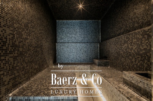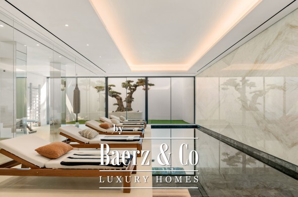 The lower level is dedicated to well-being and leisure, including a spa with heated indoor and cold pools, sauna, hammam, massage room, and gym. Wine collectors and film enthusiasts will appreciate the wine cellar and cinema, while a games room and three-car garage reflect a dedication to both relaxation and automotive passion.