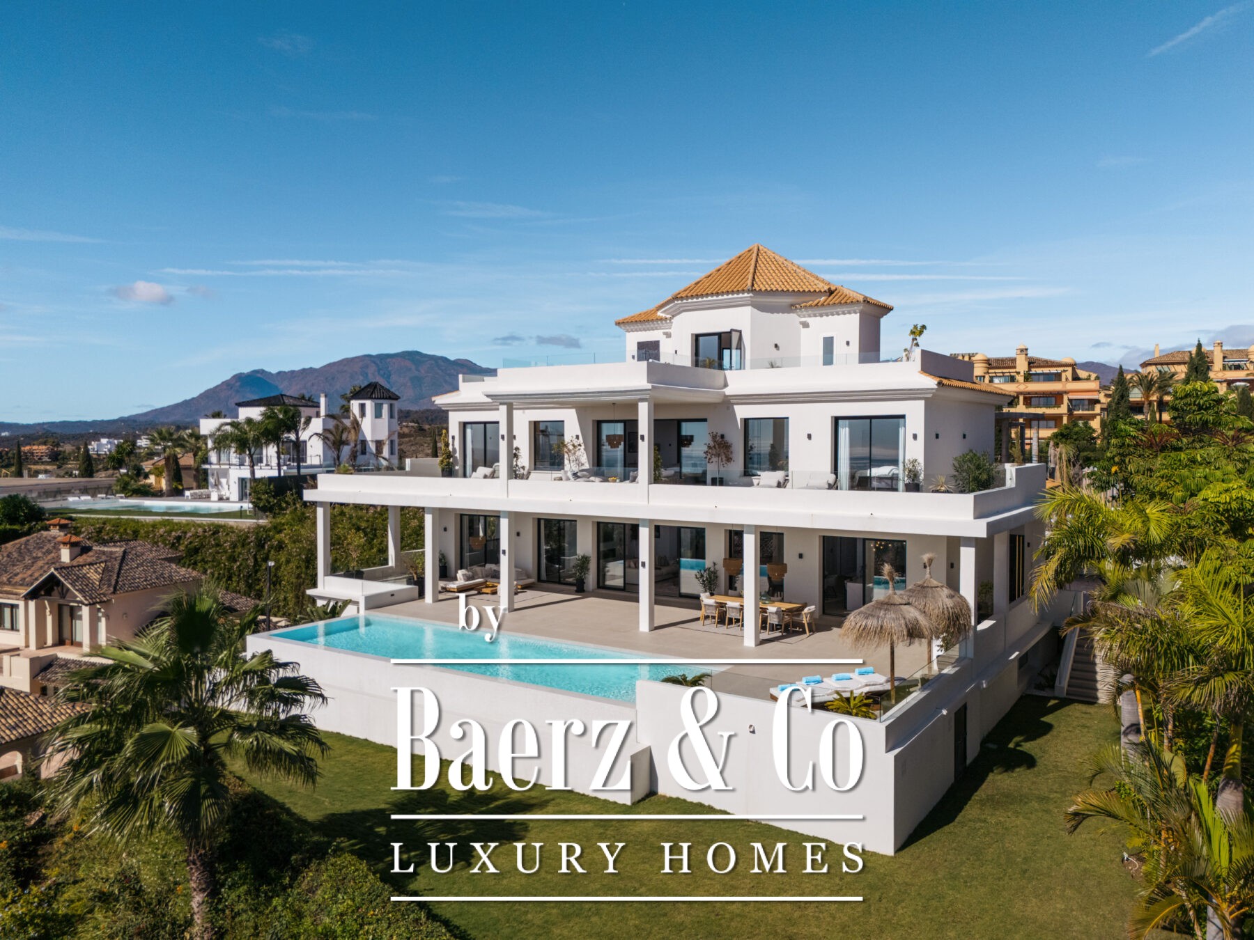 This luxury villa stands as a remarkable family estate within the prestigious gated community of Los Flamingos, just moments from the renowned Villa Padierna Resort, world-class golf courses, and an array of premium amenities.