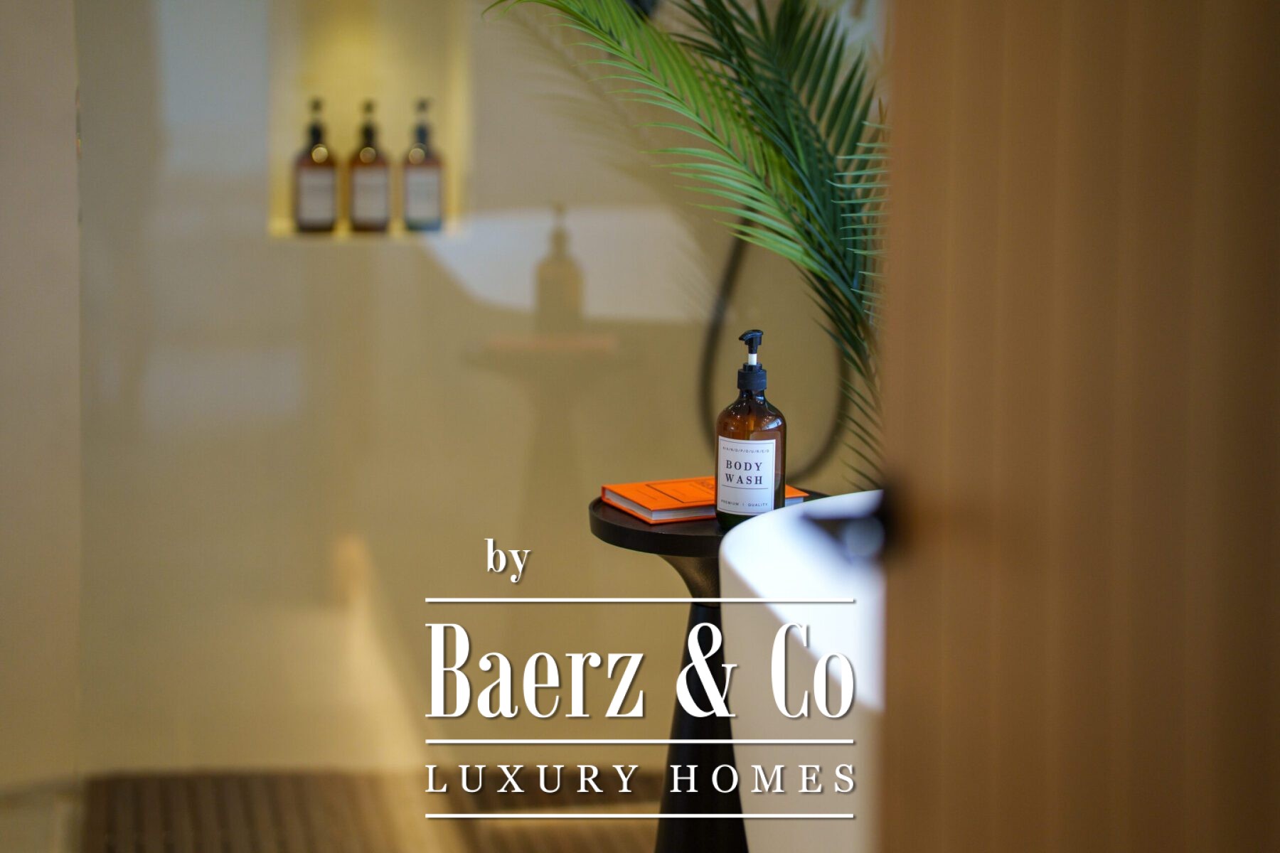 The interior design is a harmonious fusion of sophistication and warmth, combining neutral tones, natural textures, and bespoke furnishings to create a serene yet luxurious atmosphere. Handpicked décor pieces, artisanal lighting, and thoughtfully integrated shelving add character and charm, while large windows frame the captivating views and invite abundant daylight into every space. The result is a home that feels both contemporary and timeless, with a refined aesthetic that enhances its architectural beauty.