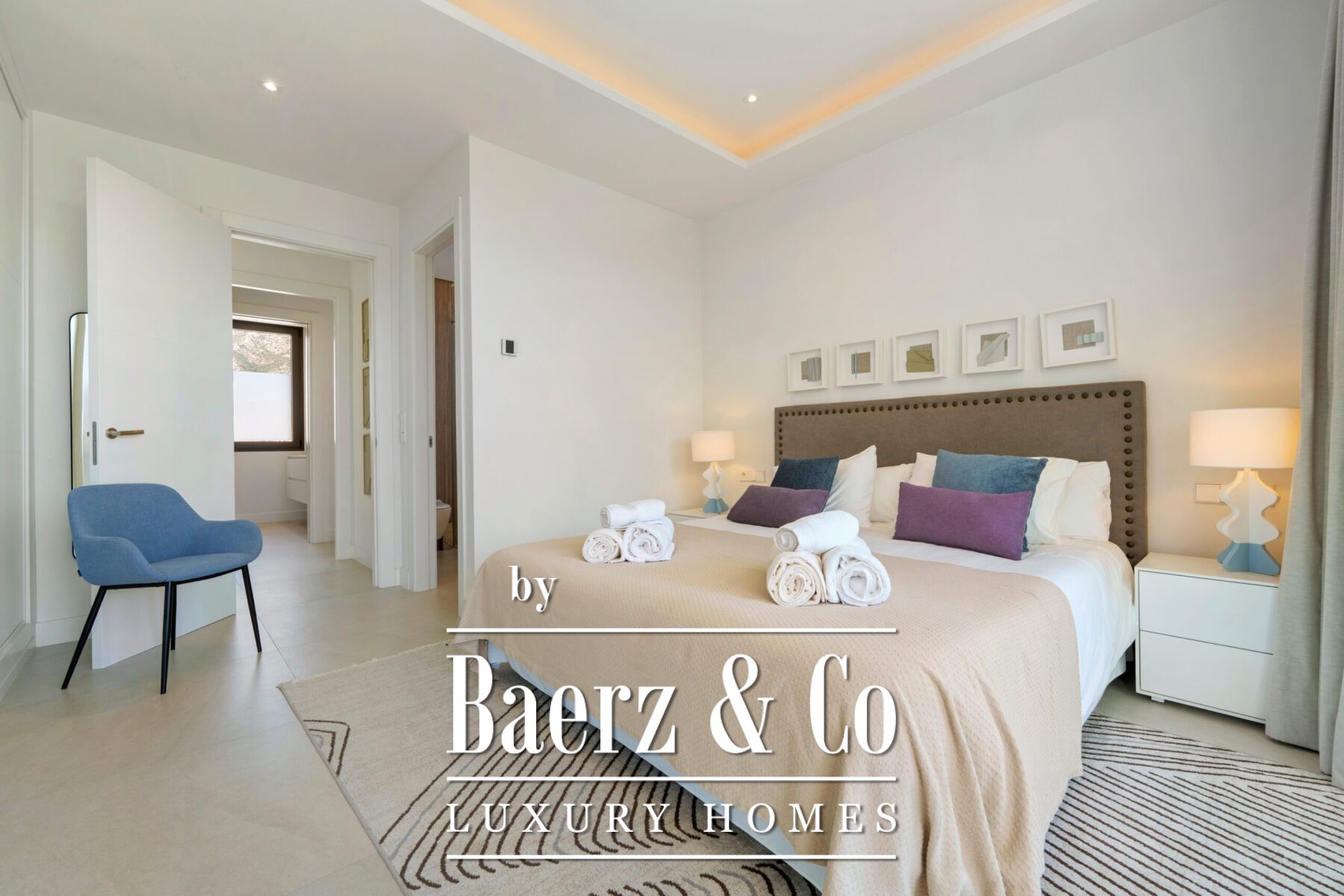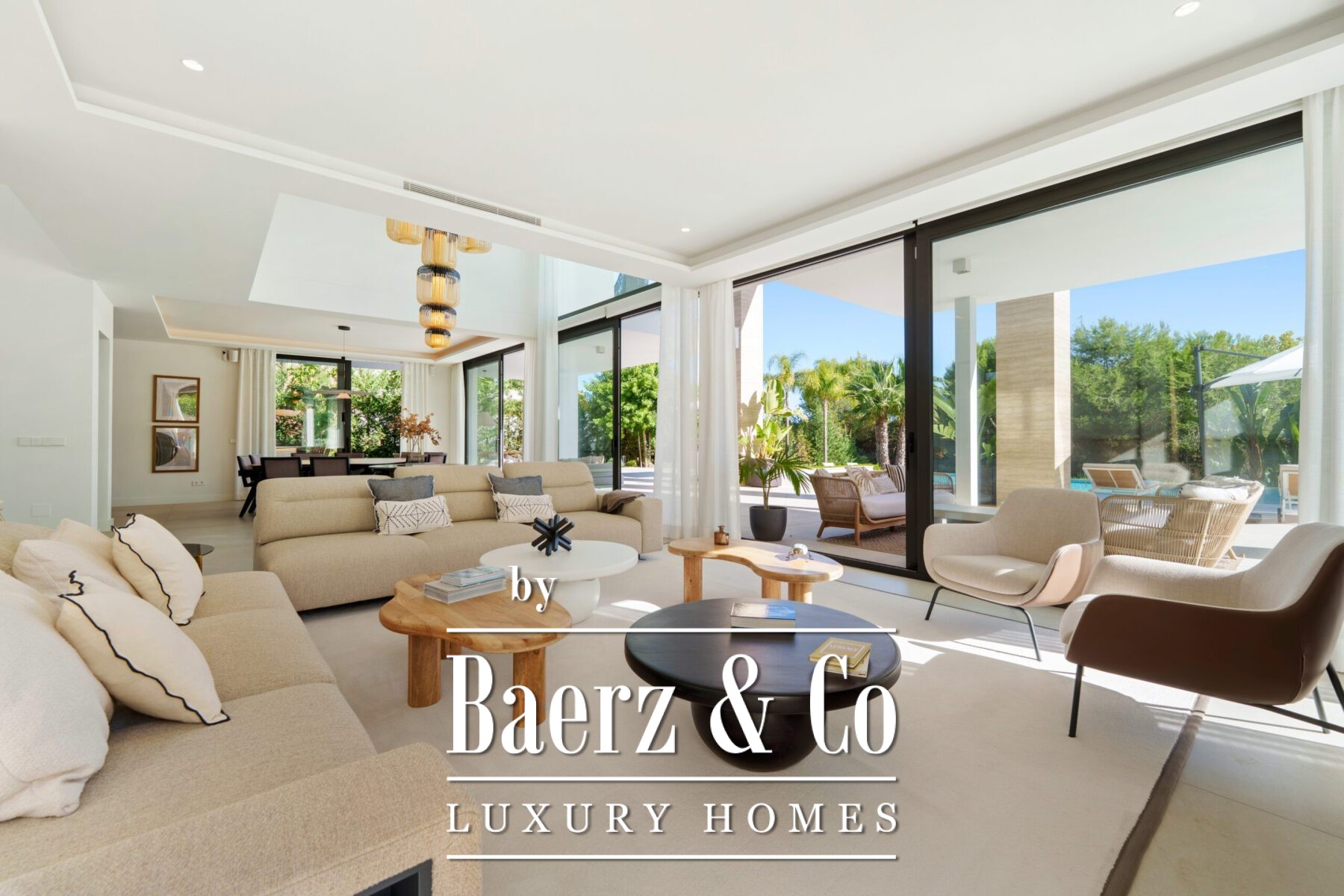 Set within a 24-hour security gated community, this villa complements its serenity with a private garage, advanced amenities, and proximity to golf, the renowned Puente Romano Hotel, and Marbella Club Hotel. The residence delivers the essence of the Marbella lifestyle, blending privacy and sophistication with rare access to both urban vitality and tranquil indulgence. For those seeking a luxury villa for sale in Marbella’s Golden Mile, this property offers a rare union of architectural clarity and luminous southern living.