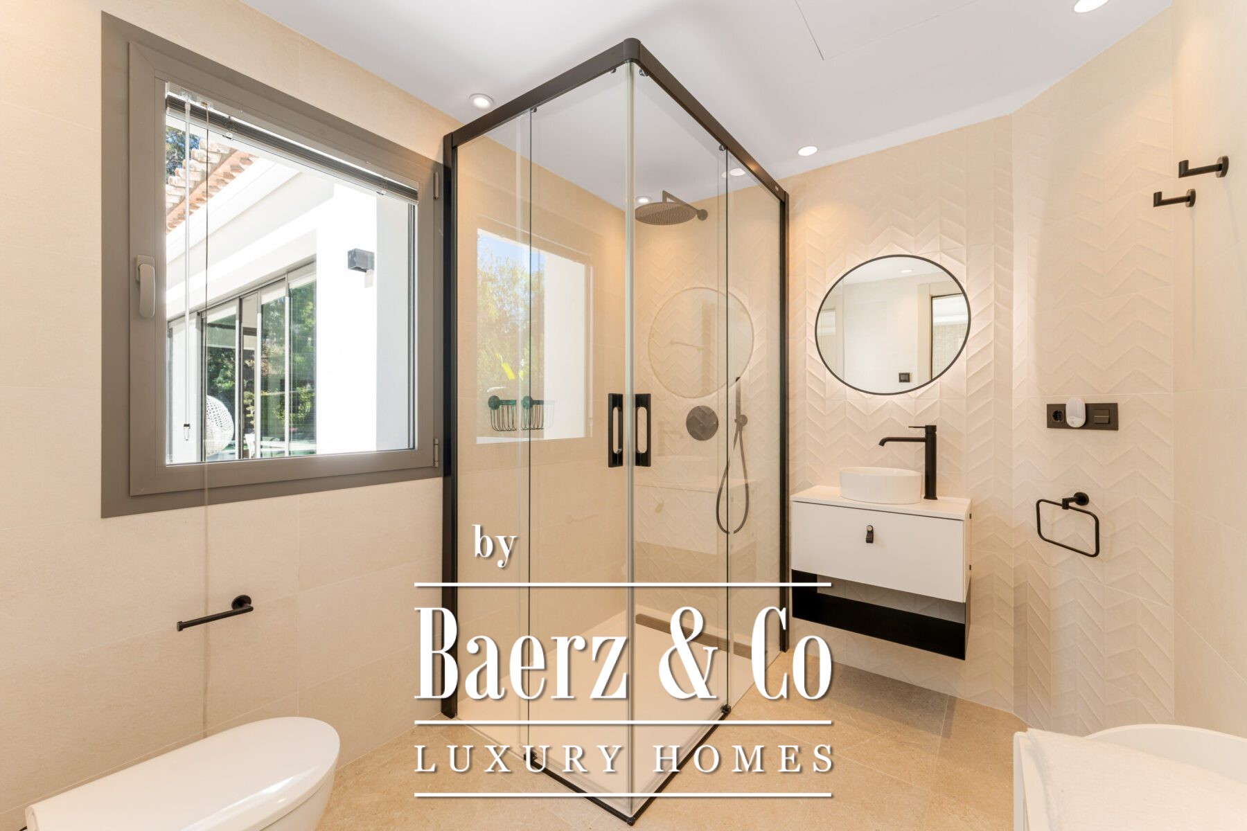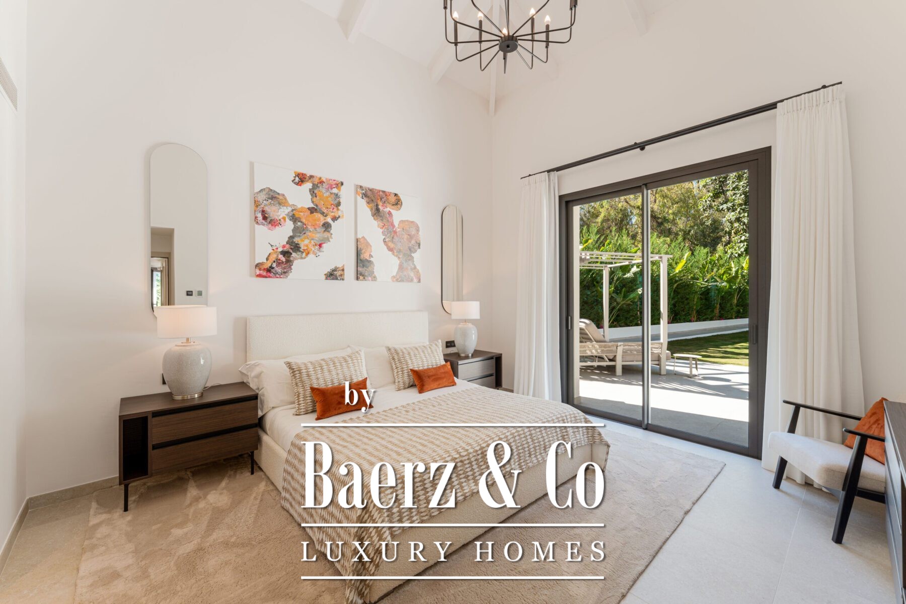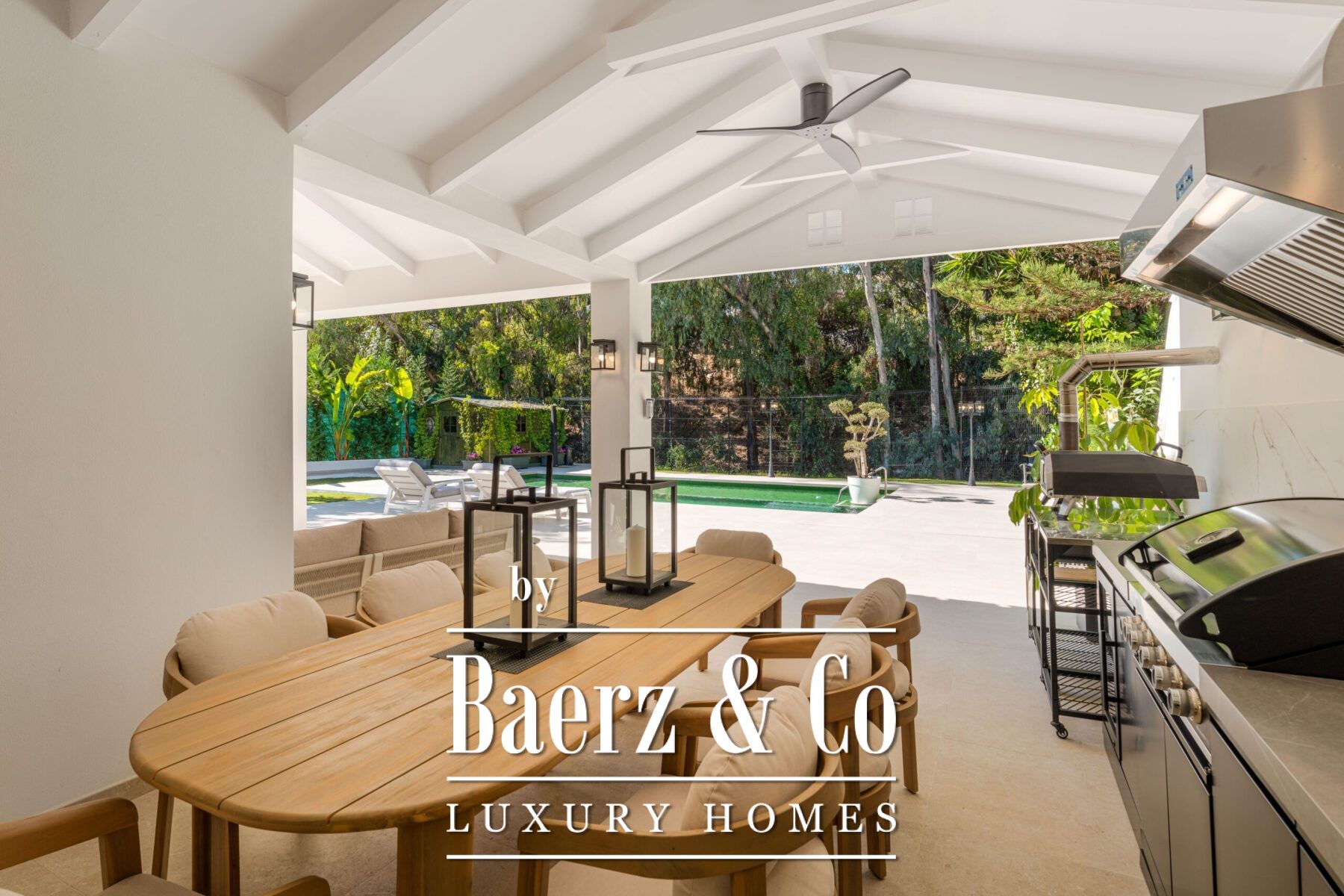 Carefully landscaped grounds enclose a private, heated swimming pool and generous terraces equipped with an outdoor kitchen, dining area, and chill-out zones for timeless alfresco living. Features such as underfloor heating, zoned air conditioning, and advanced security meet the expectations of international buyers. The villa offers total privacy while maintaining proximity to top international schools, Marbella Sports & Tennis Club, and seamless AP-7 motorway connectivity.