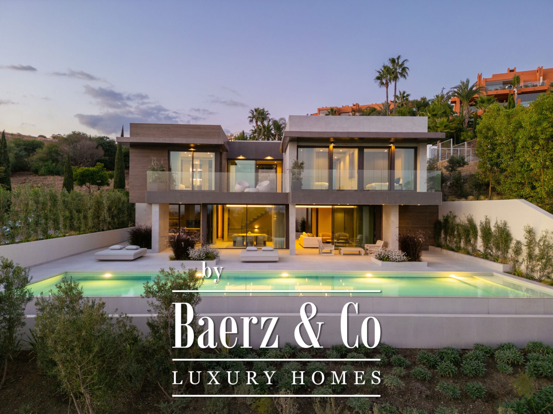 Villa Marbella in Los Flamingos is an architectural sanctuary set within a coveted gated community, embracing 540 m² of refined living space on a 1,330 m² plot. This villa Marbella in Los Flamingos welcomes you with five spacious bedrooms and five bathrooms, balancing sophisticated comfort with a sense of ease. Clean modern lines echo throughout, from the Modulnova kitchen to the polished concrete staircase and expansive Schüco windows, opening interiors to the Andalusian light.