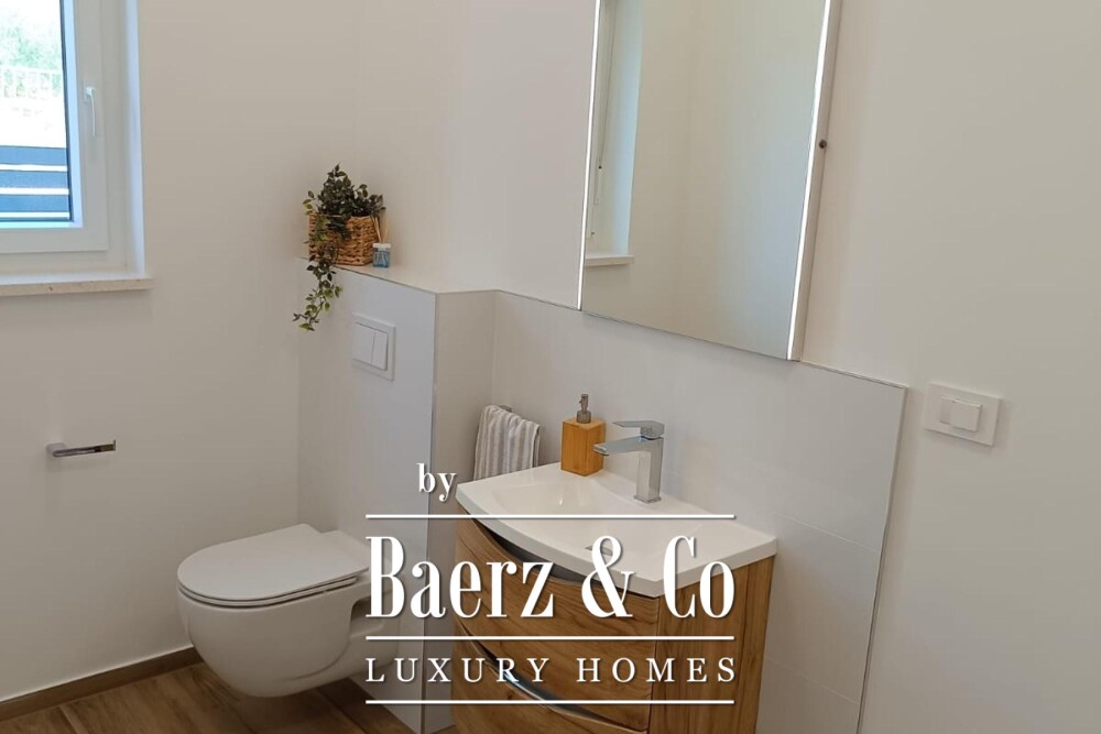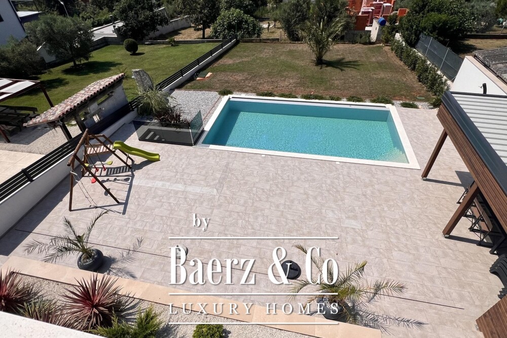 Villa Medulin occupies a discreet position in Pomer, removed from the bustle yet oriented to panoramic sea views from nearly every room. This villa, newly built and situated on a plot spanning 944 m², offers a net usable area of 190 m² across a ground and first floor, with a layout designed for both privacy and connected living.