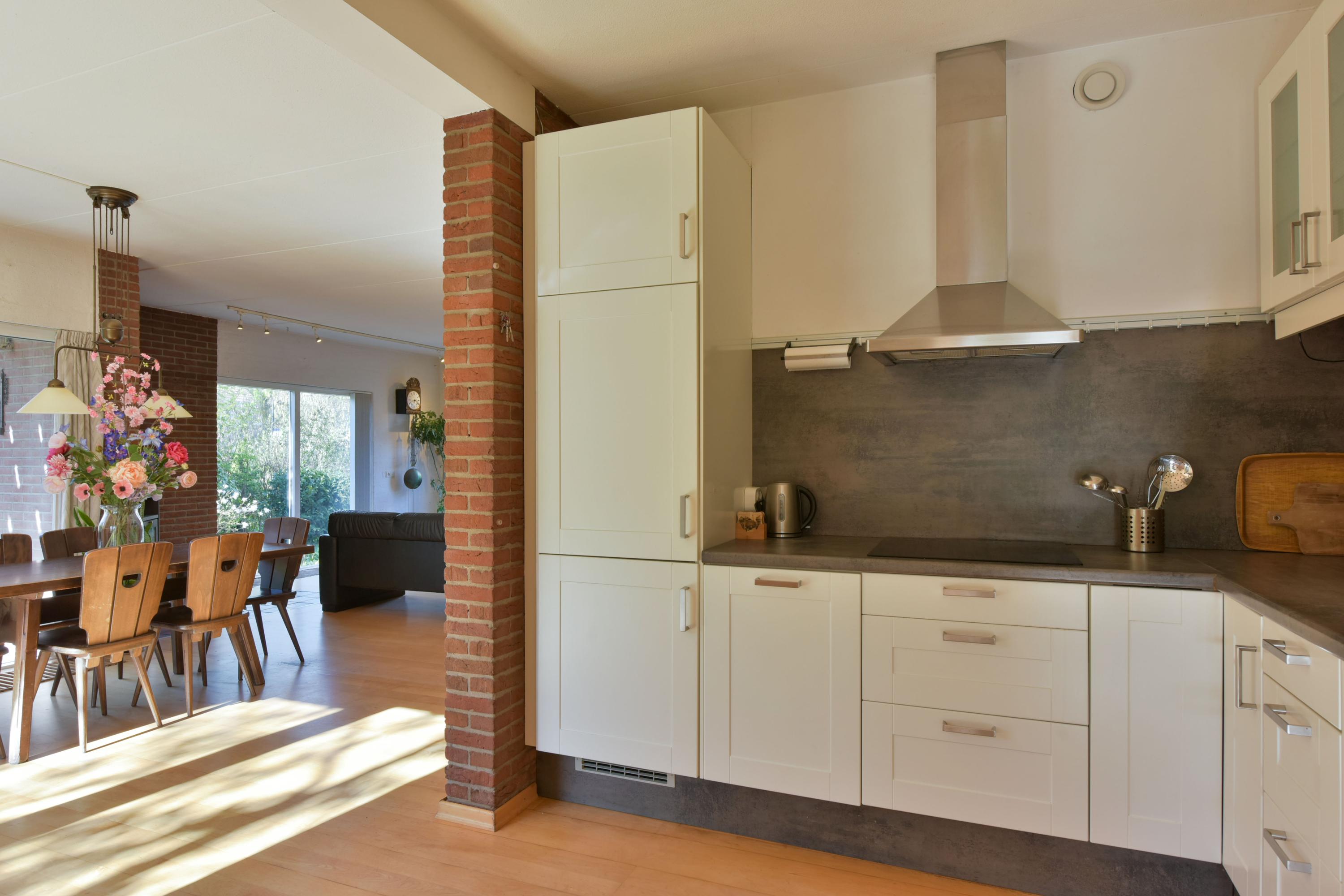 The enjoyment begins the moment you drive onto the private driveway: parking on your own grounds for two cars, a spacious garage, and a home that immediately gives a sense of freedom. But the real wow factor? That truly awaits at the rear. The backyard borders wide ornamental water and offers open views of the dike beyond. The garden has a calming atmosphere that takes your breath away day after day. This is one of those places where time seems to slow down. A true paradise, complete with a vegetable garden and greenhouse — perfect for anyone dreaming of fresh produce from their own garden and long summer days outdoors. A wonderful space where children can run, play football, and explore, while still offering plenty of room for a sunny or shaded terrace. It’s all possible here.