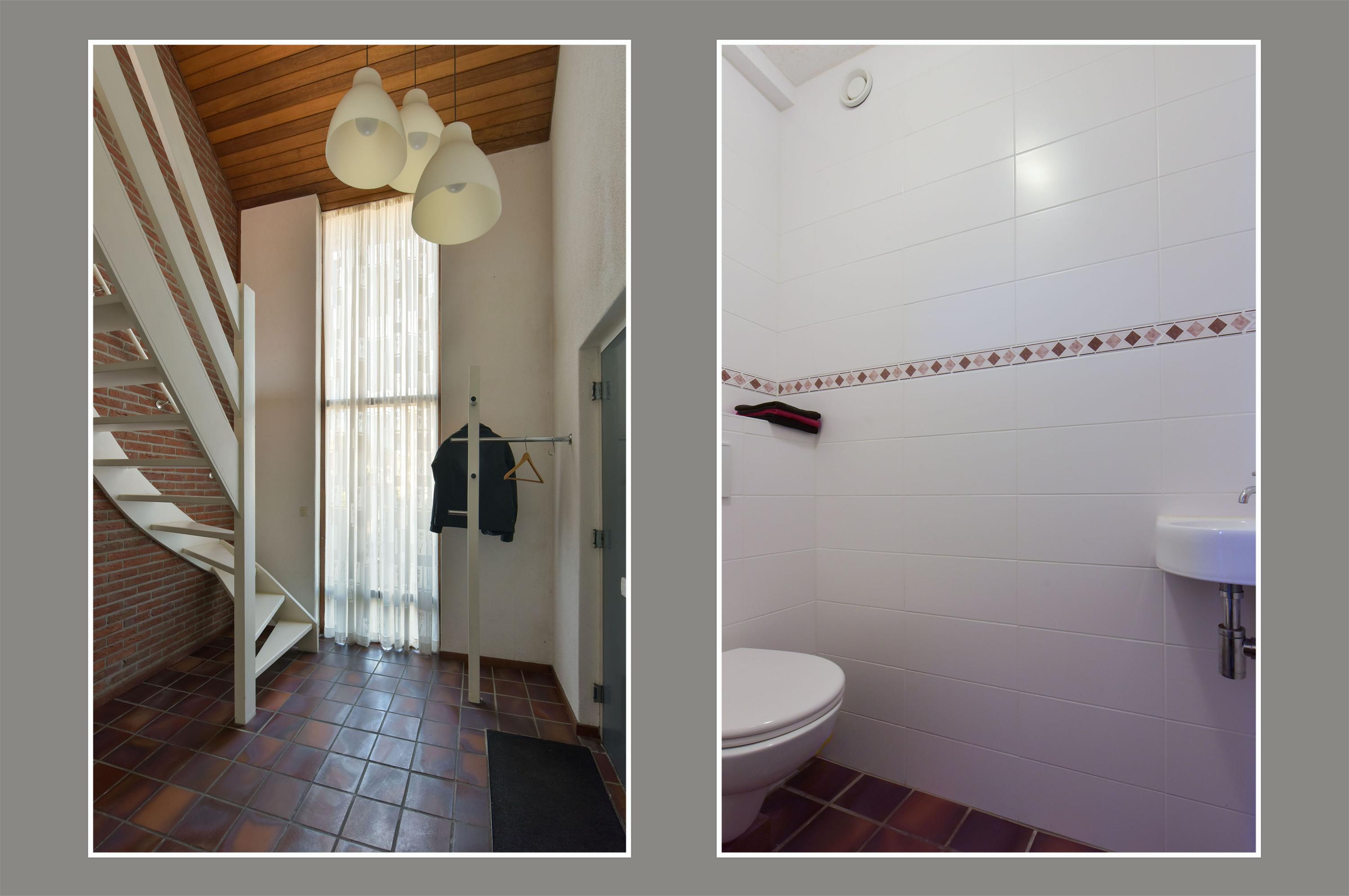 The first impression is immediately inviting. Via the spacious driveway, where you can easily park multiple cars, you reach the entrance. Inside, you step into a generous hallway with a void, allowing natural light to flood in and creating a strong sense of space. Here you’ll find the toilet with washbasin, the staircase, and access to the various living areas.