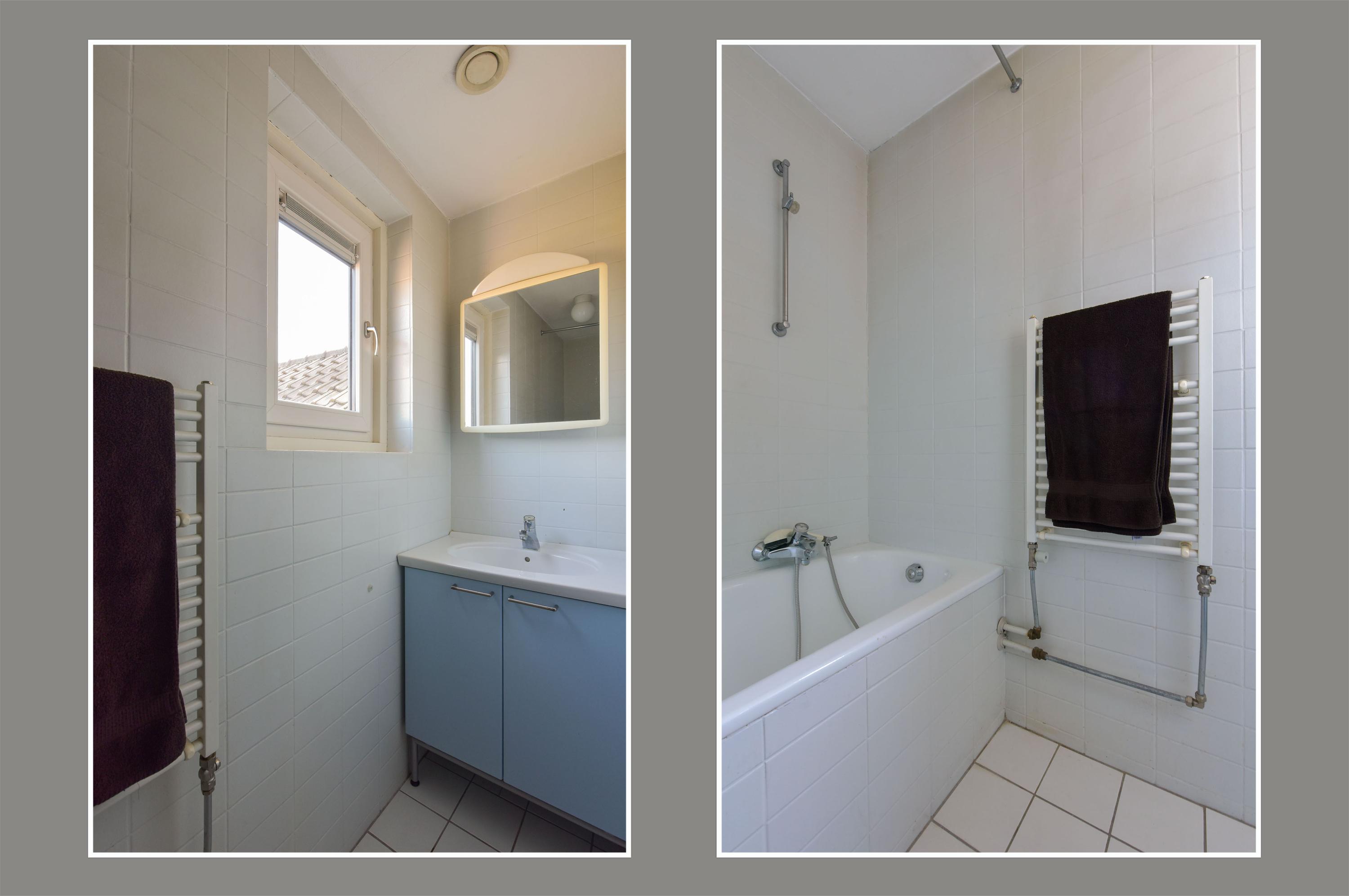 On the first floor, the central landing provides access to four bedrooms and the main bathroom. The bathroom is equipped with a bathtub (with shower option), a vanity unit, and a towel radiator. The toilet is separate, adding extra convenience.