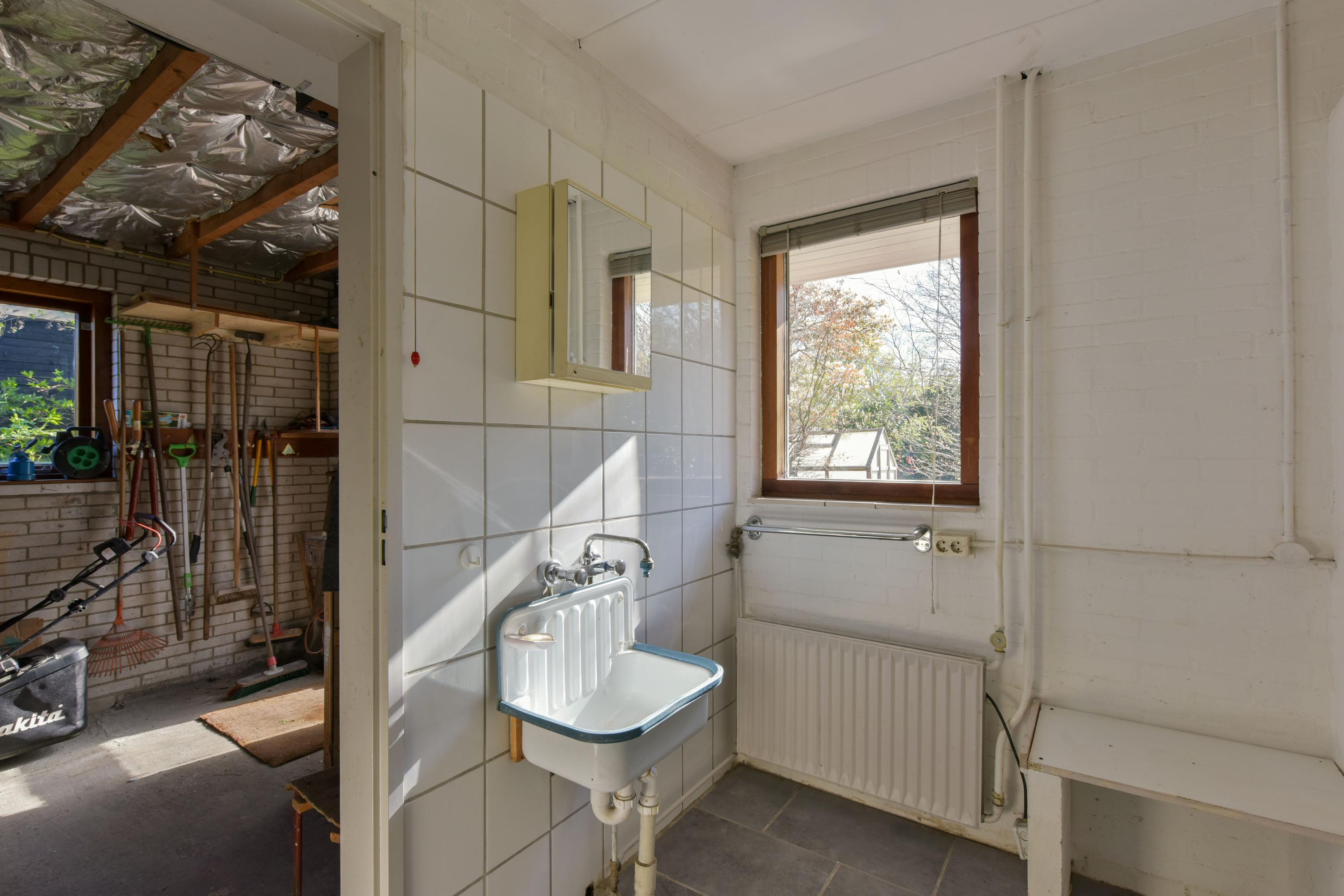 Adjacent is an additional room currently used as a breakfast area — a bright spot to start the day, but also suitable as a workspace or playroom. From here, you continue into the practical utility room, which includes connections for a washing machine, an electric boiler for the kitchen, and a utility sink — ideal for everyday use.