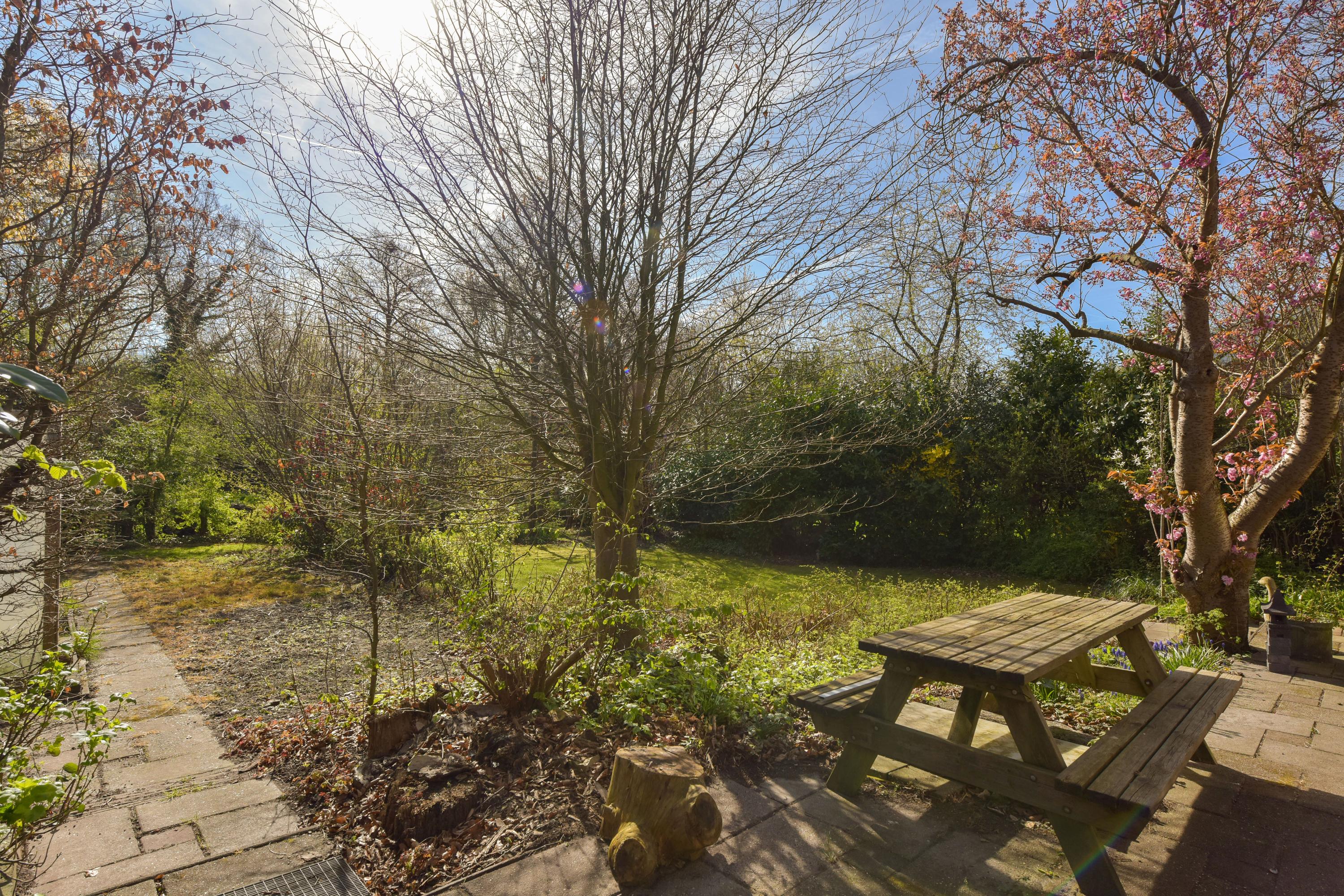 The garden of this home is a wonderful outdoor retreat where you can fully unwind. Behind the house, a spacious terrace stretches out — the perfect place for a morning coffee in the sun or a relaxing evening with friends and family. The lawn offers plenty of space for playing, relaxing, or simply enjoying the outdoors.