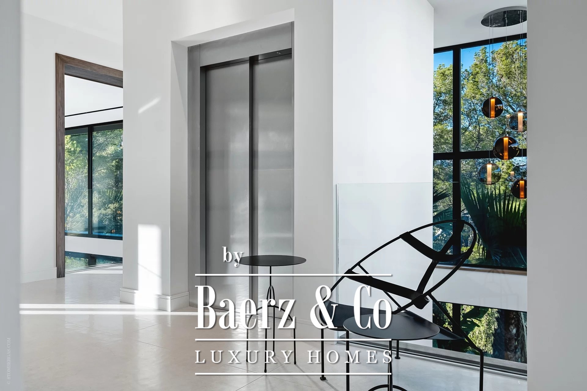 Contemporary Villa Mougins presents a striking interplay of space and light within one of the region's most exclusive gated domains. This newly built residence offers 700 m² of refined living on a level 2,700 m² plot, oriented toward tranquil forest views and anchored by a sleek swimming pool.