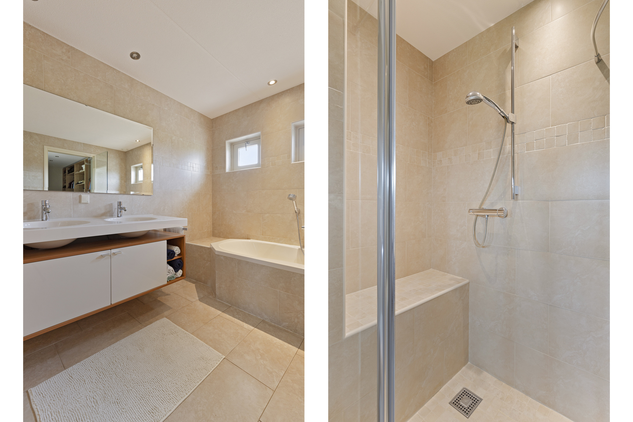 The master bedroom is at the head at the rear and has a beautiful view of the garden and the ash tree. Next to the room a large bathroom, complete with WC, double sinks, a shower with seat and a wonderful whirlpool. For your wardrobe there is a spacious walk-in closet.