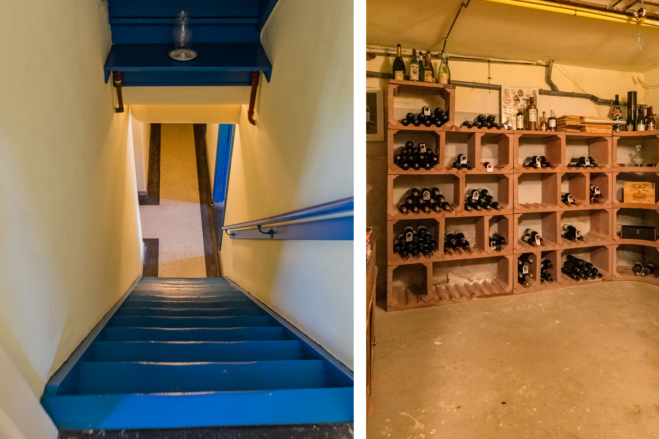 The home features a full basement. Here you will find the sauna with a steam room, the charming wine cellar built with lava stone, spacious storage areas, the garage with French doors, and a door leading directly to the garden.