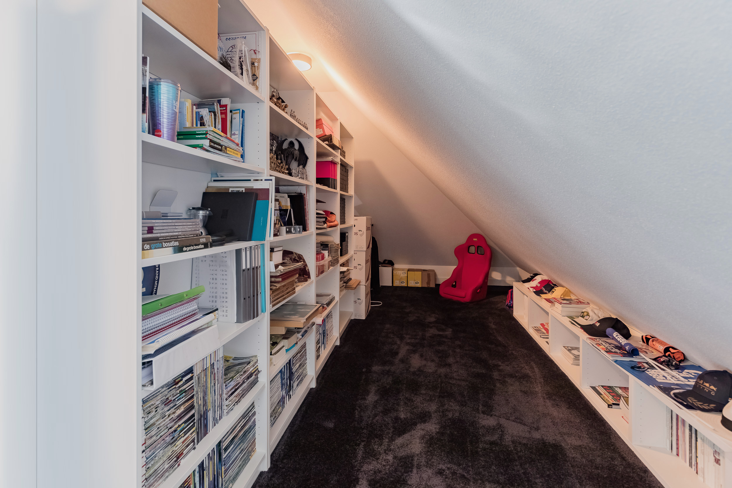 On this floor are 3 bedrooms, 2 bathrooms and a large storage room. The very generous master bedroom has its own luxurious bathroom and a spacious dressing room. The balcony can only be accessed from this room. 20 Skylights provide extra light and also here the symmetry is continued.