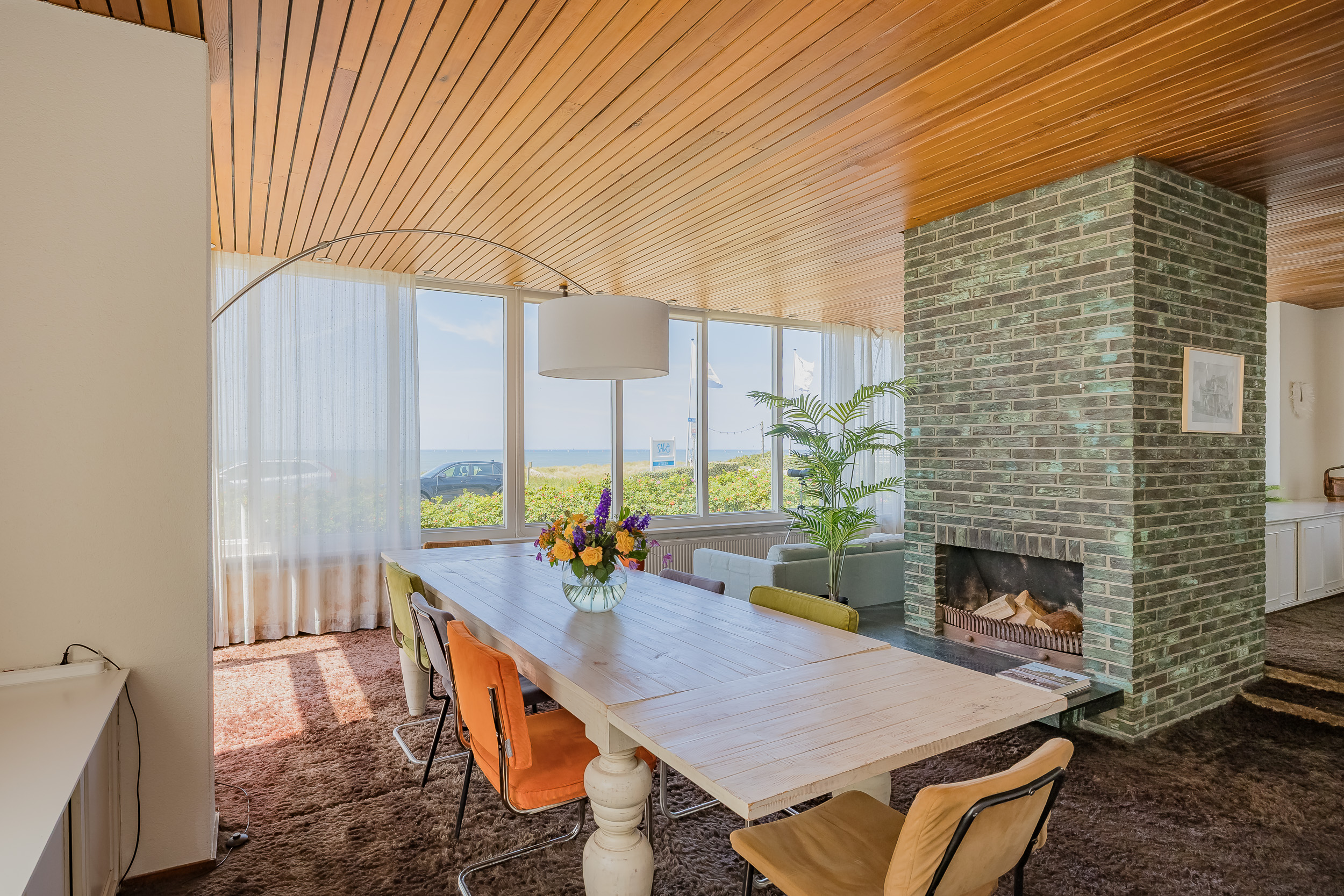 The kitchen, equipped with built-in appliances, is practically furnished with plenty of cupboard space. Furthermore, on the ground floor, you will find a bright second living room with a gas fireplace, ideal for relaxation or as a spacious study. In addition, the ground floor has a comfortable bedroom with a built-in wardrobe. The spacious, sunny south-facing terrace is accessible from both living rooms. The bathroom in the hall is ideal for rinsing off the sand after a day at the beach.
