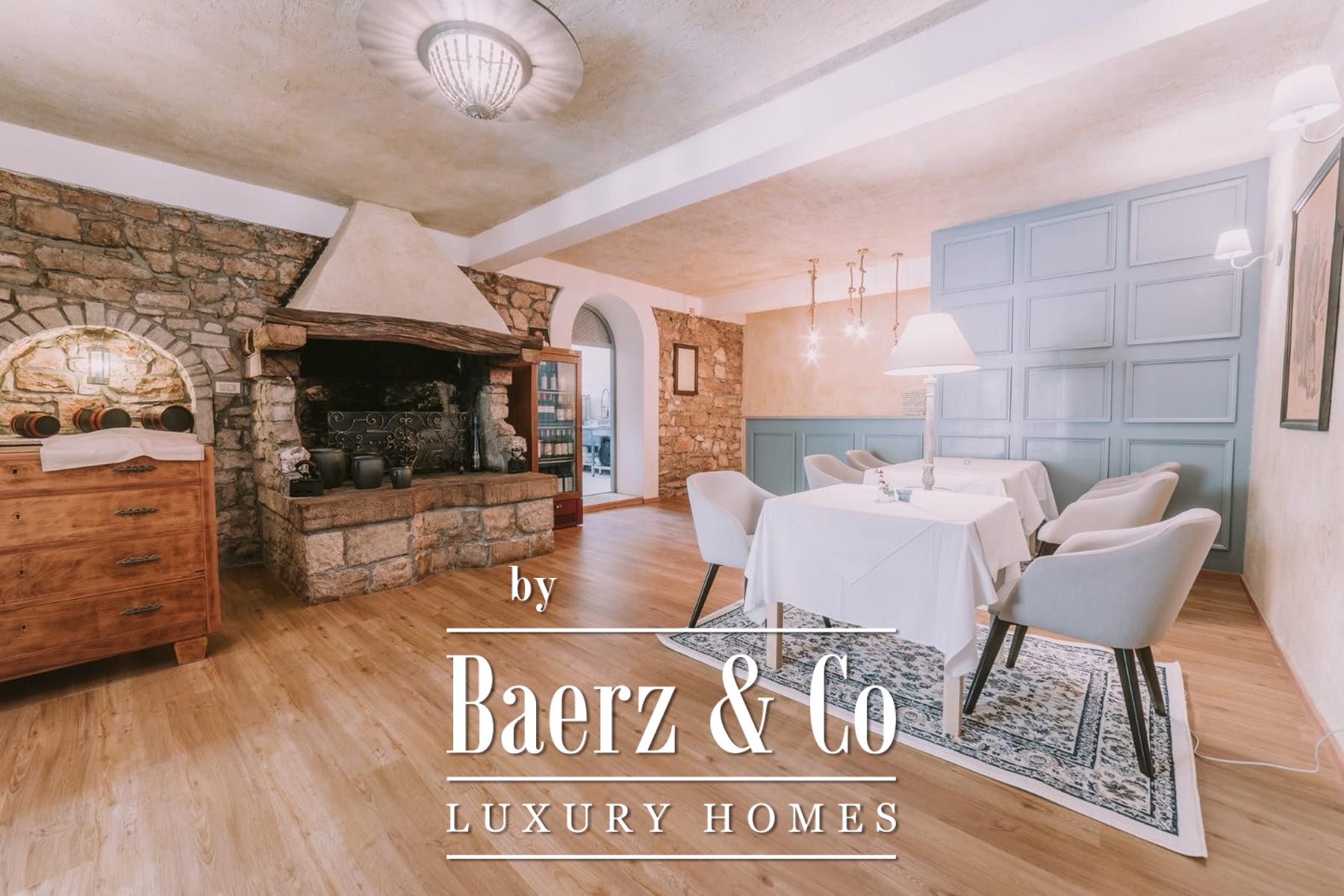 This hospitality property Novigrad offers an established presence in a tranquil setting, surrounded by nature and green landscapes. Located on a 789 m² plot near Novigrad, the property encompasses a total living area of 670 m², designed for seamless hospitality and residential use. The centrepiece is a 230 m² fully equipped restaurant, recognised for its rustic character and thirty years of strong reputation with a loyal clientele. The restaurant is ready for immediate operation, requiring no further investment.