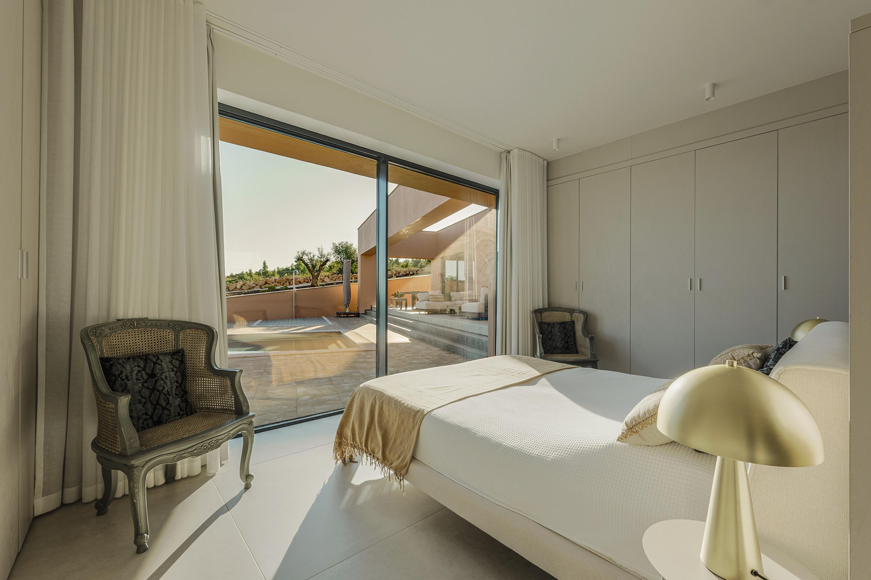 Set directly beside Palmares Golf Course (27 holes), Lagos Portugal, this newly finished contemporary villa pairs architectural purity with natural textures and cinematic views of the Atlantic Ocean and the softly rolling landscape of Palmares Golf. Light, openness and tranquility shape the interior atmosphere, creating a home for those who value elegance, comfort and timeless design.Positioned on a generous ±3,000 m² landscaped plot, the villa embraces its surroundings through expansive terraces, Mediterranean gardens and 170 m2 elevated rooftop areas that capture the shifting light throughout the day. A bright 384 m2 ground floor and a versatile 120 m2 lower level ensure effortless flow for both refined hosting and everyday living. With four refined suites, each with its own ensuite bathroom of which two independent guest residences, four Italian-designed kitchens, a heated saltwater pool, an outdoor shower, newly landscaped Mediterranean gardens and two rooftop terraces, this property stands as one of the Algarve’s most compelling contemporary homes — a rare blend of design, setting and lifestyle.