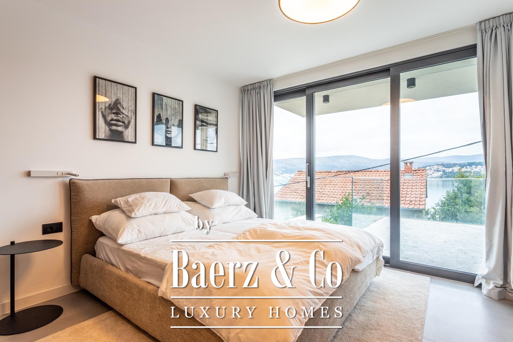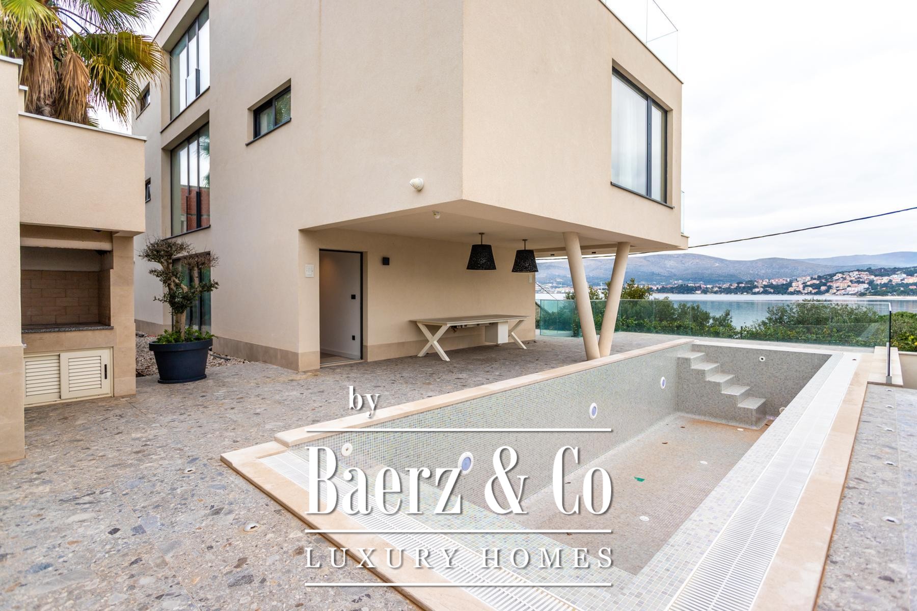 Villa Okrug with panoramic view stands just fifty meters from the pebble beach, offering both serenity and elegant living in Croatia. This modern villa features 400 m² of curated space and sits on a 470 m² plot, with architecture that embraces light, openness, and continuous flow.