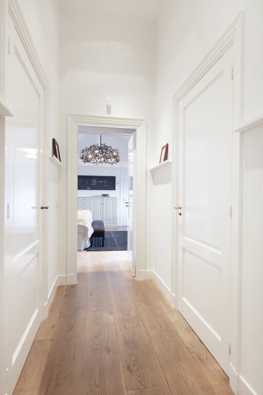 1st floor: Landing, 3 bedrooms in the main building, bathroom with bath, shower, double sink and toilet, stair case to the spacious 2nd floor (now attic). In the side wing of the house (with the ability to close off), 2 bedrooms, 2nd bathroom with bath, shower, toilet and double sink, hall, classic multi-person sauna. Washing machine/dryer/ironing room.