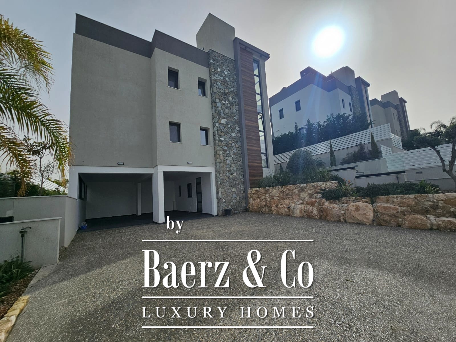 The primary living areas are oriented for natural light, while the villa’s layout accommodates four bedrooms, three bathrooms, and two guest WCs. Premium materials include tiled floors and aluminium double-glazed, energy-efficient windows. Underfloor heating, air conditioning, a ventilation system, and sound and thermal insulation ensure year-round comfort. An internal elevator and staircase connect all floors, emphasizing convenience and accessibility.