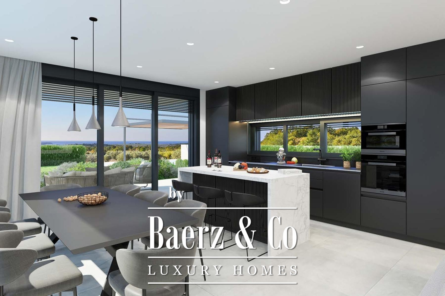 The first floor houses three additional bedrooms, each with private bathrooms, walk-in wardrobes, and direct access to spacious terraces overlooking the sea and surrounding landscape. Outdoors, a heated saltwater swimming pool and sunbathing area elevate the sense of relaxation. Picturesque wine country, renowned restaurants, and active leisure facilities enrich the local experience. The villa's purchase price reflects the completed construction stage without furniture, leaving scope for the future owner to tailor the interiors. VAT is included in the listed price with no real estate transfer tax for the buyer.