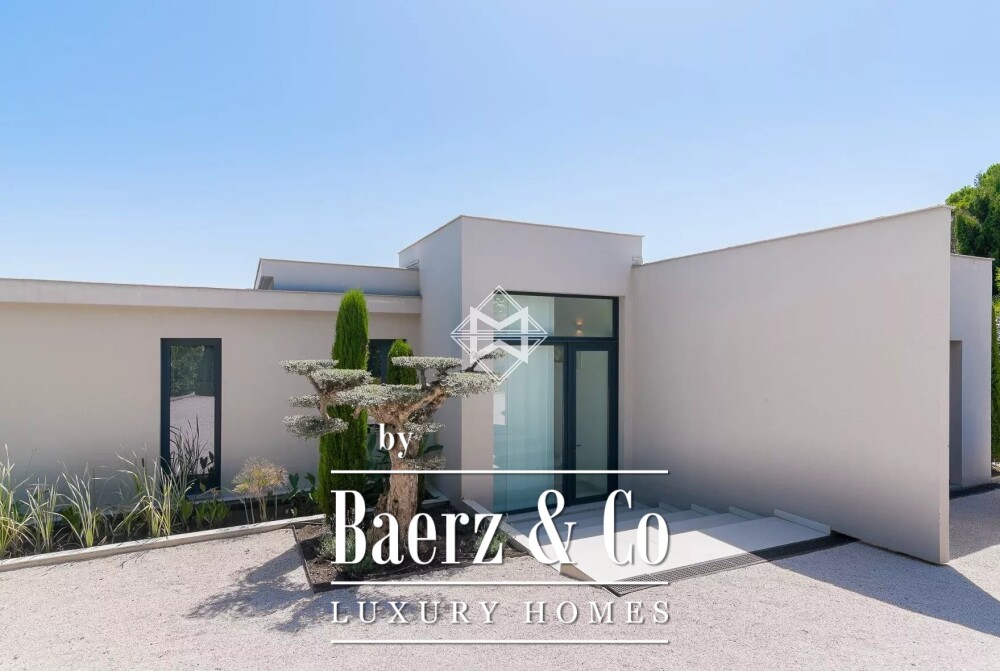 This contemporary house Ramatuelle sits just three minutes on foot from the renowned Club 55 and the sands of Pampelonne beach, offering a rare synthesis of privacy and location. The property spans approximately 185 m², defined by its refined modern architecture and expansive reception space opening out to a large terrace, with a compelling panoramic sea view that frames the living area. Four suites connect seamlessly to the outdoors, inviting natural light and the scents of Mediterranean gardens inside.