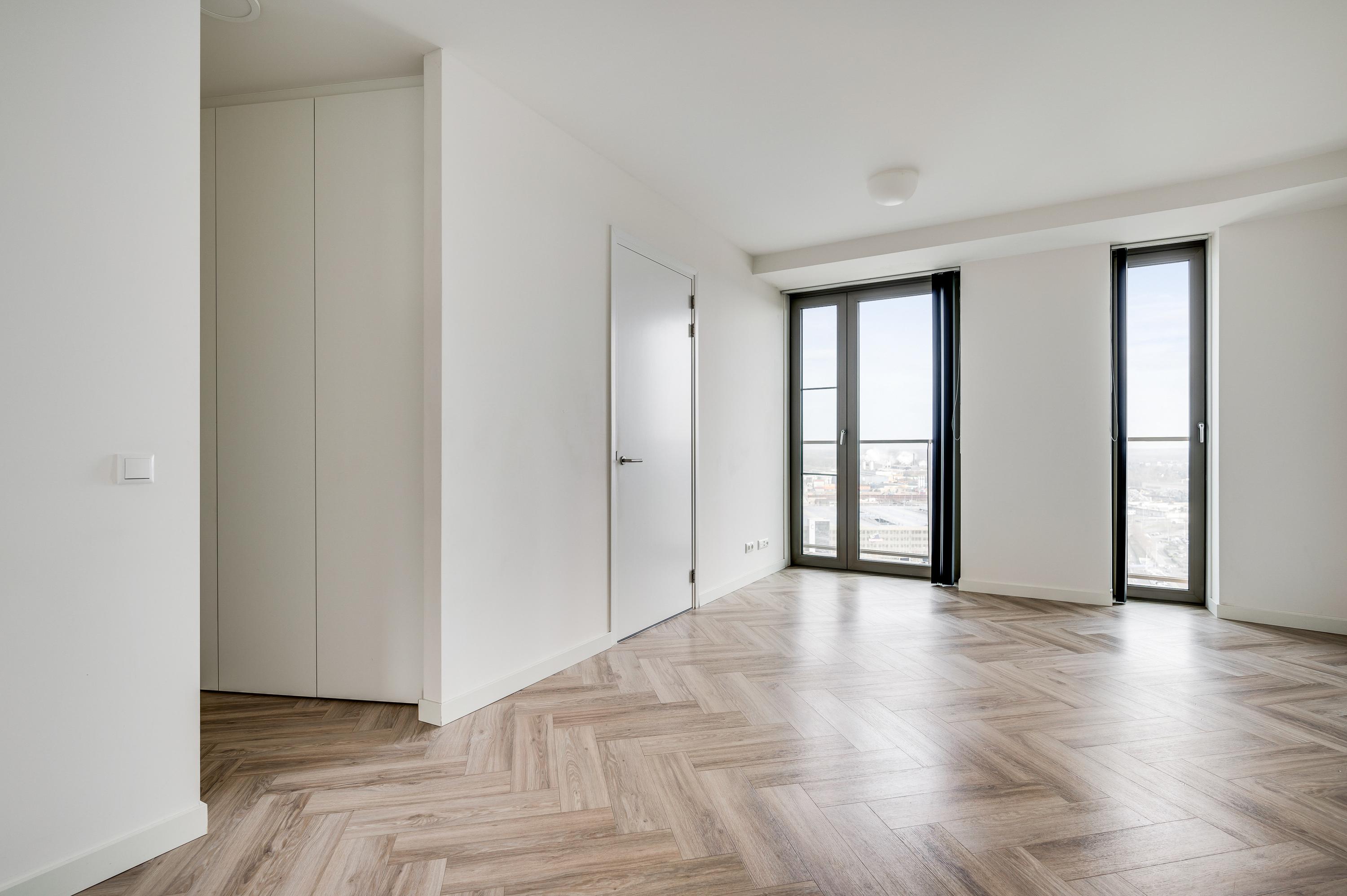 14th floor: Entrance/hallway with access to the various rooms including a separate toilet, the technology room, three bedrooms, two bathrooms and the living and dining room. The spacious living room with luxury kitchen provides space for a large party, with both a spacious seating and dining area. The kitchen is equipped with various Siemens appliances such as: combi oven/microwave, steam oven, induction hob with extractor fan, dishwasher, freezer, quooker and fridge. The floor-to-ceiling windows mean you always enjoy beautiful views.