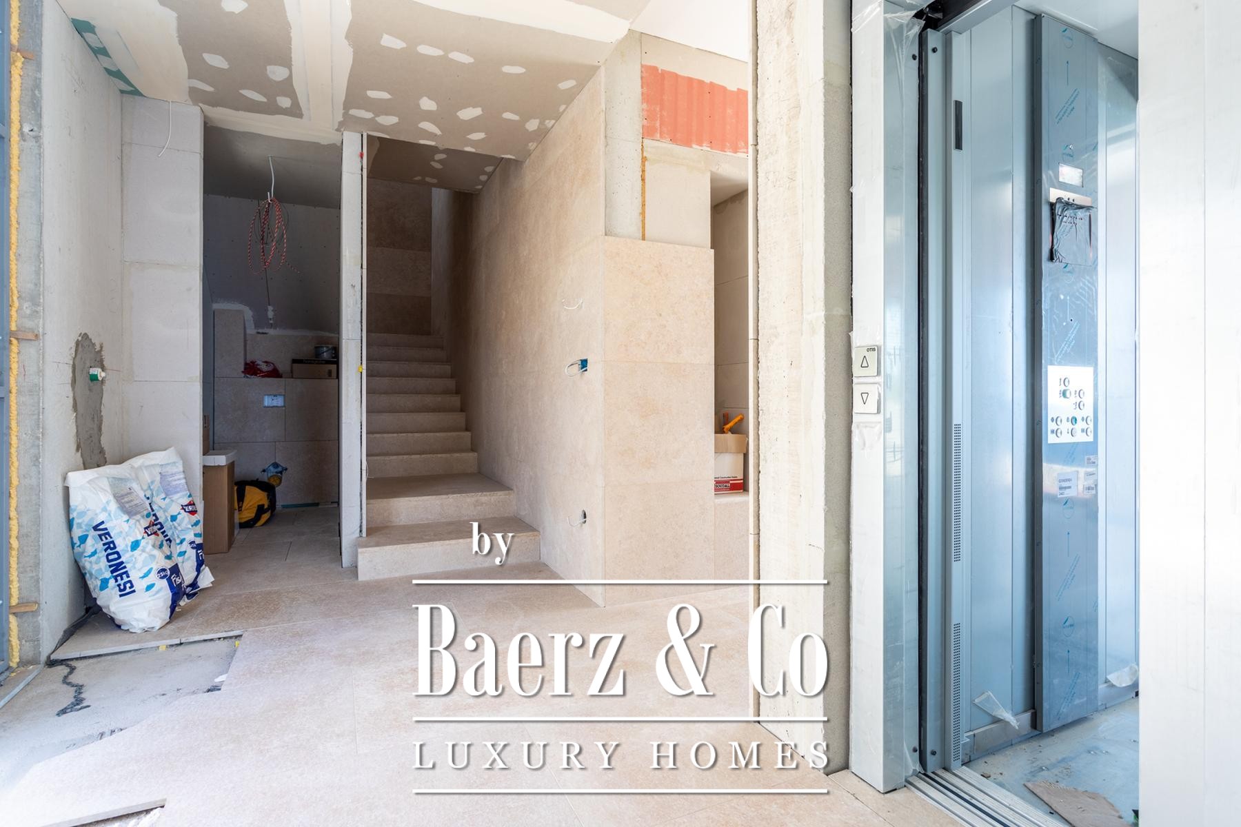 with bathroom and wardrobe, laundry room. It also has five parking spaces, a barbecue area with an outdoor kitchen and dining area.The villa is under construction and the work is expected to be completed in decembar 2024. High-quality materials will be used in the construction of the villa, stone, tiles, first-class American walnut parquet, Grohe sanitary ware, Mitsubishi multi VRF system air conditioning throughout the villa, and the furniture will be modern, designer, inspired by a contemporary approach, and designed to fit into the natural environment of the space. The villa will also have a modern elevator of the Otis brand, made according to the dimensions of the villa.For all other information on request.