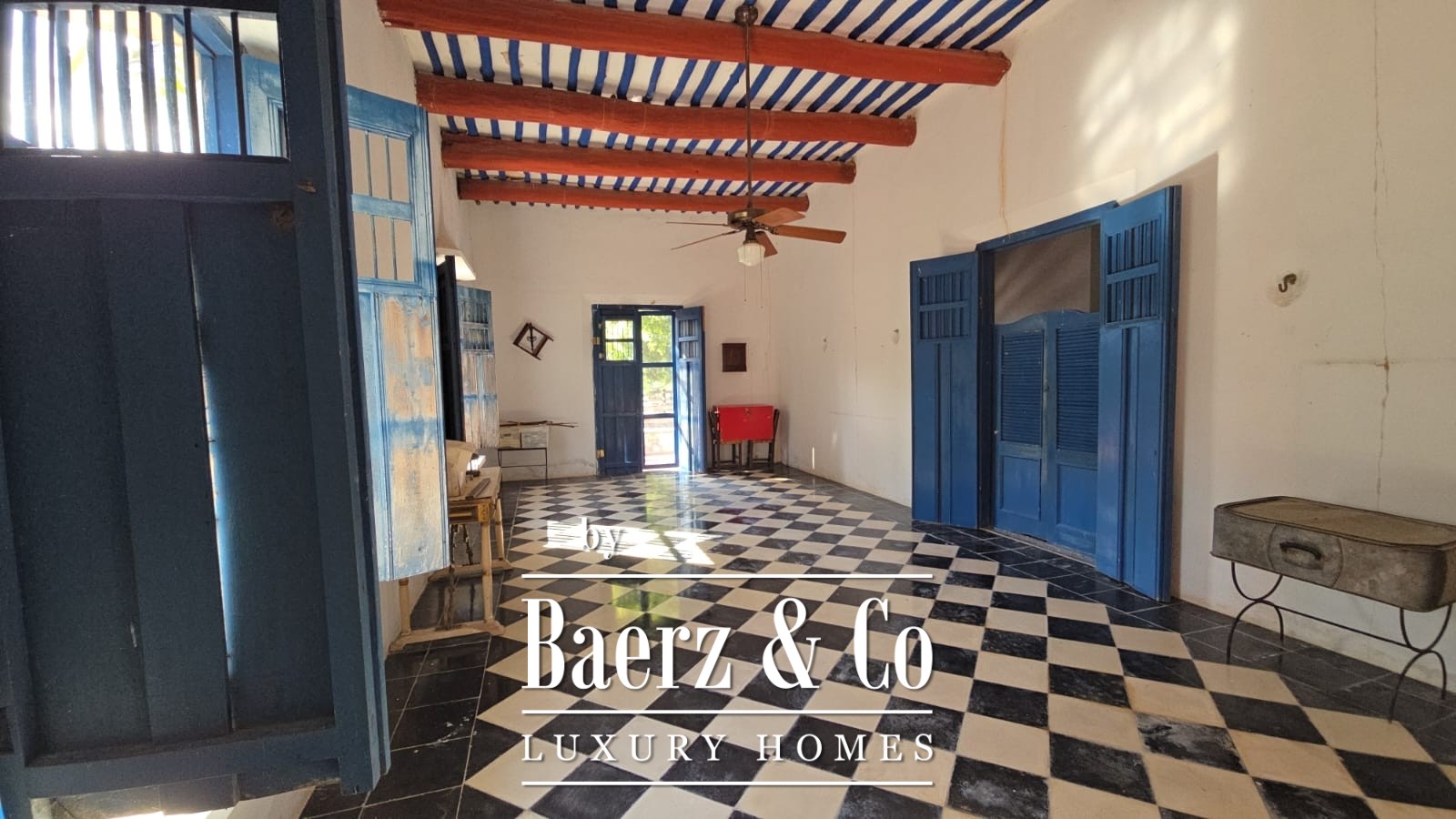 Water security is ensured by a deep well between 120 and 160 meters, a new pump, and a solar energy system with generator backup. Six corrals, twelve paddocks, stables, feeding and drinking troughs—most renovated within three years—sustain current livestock, including thirty cattle and eight horses, with historical capacity exceeding a thousand head. Period artifacts and original machinery recall the estate’s agricultural heritage, while the land’s virgin soils—Kancab, Calché, and Cacalum—remain highly valued for diverse agricultural pursuits.