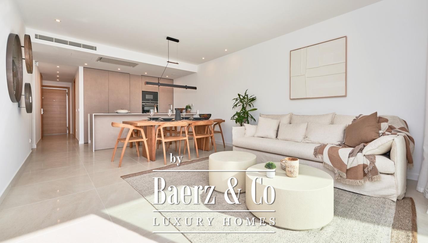 Apartment Sant Elm offers a rare balance of light, privacy, and modern Mediterranean design. Within an exclusive collection of just 20 homes, this residence distinguishes itself with an expansive 109.05 m² private rooftop terrace, providing generous space for relaxation and open-air living with panoramic views over the bay, landscape, and azure Mediterranean horizon.