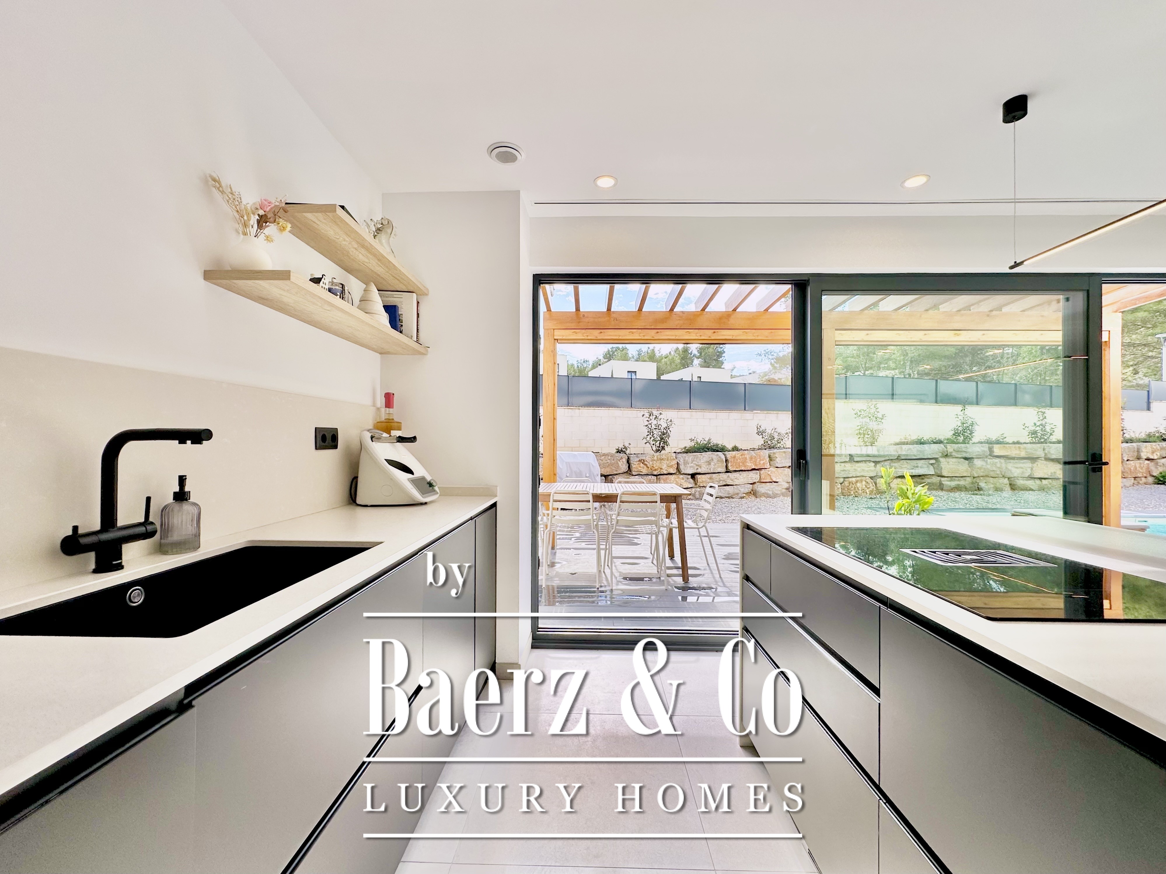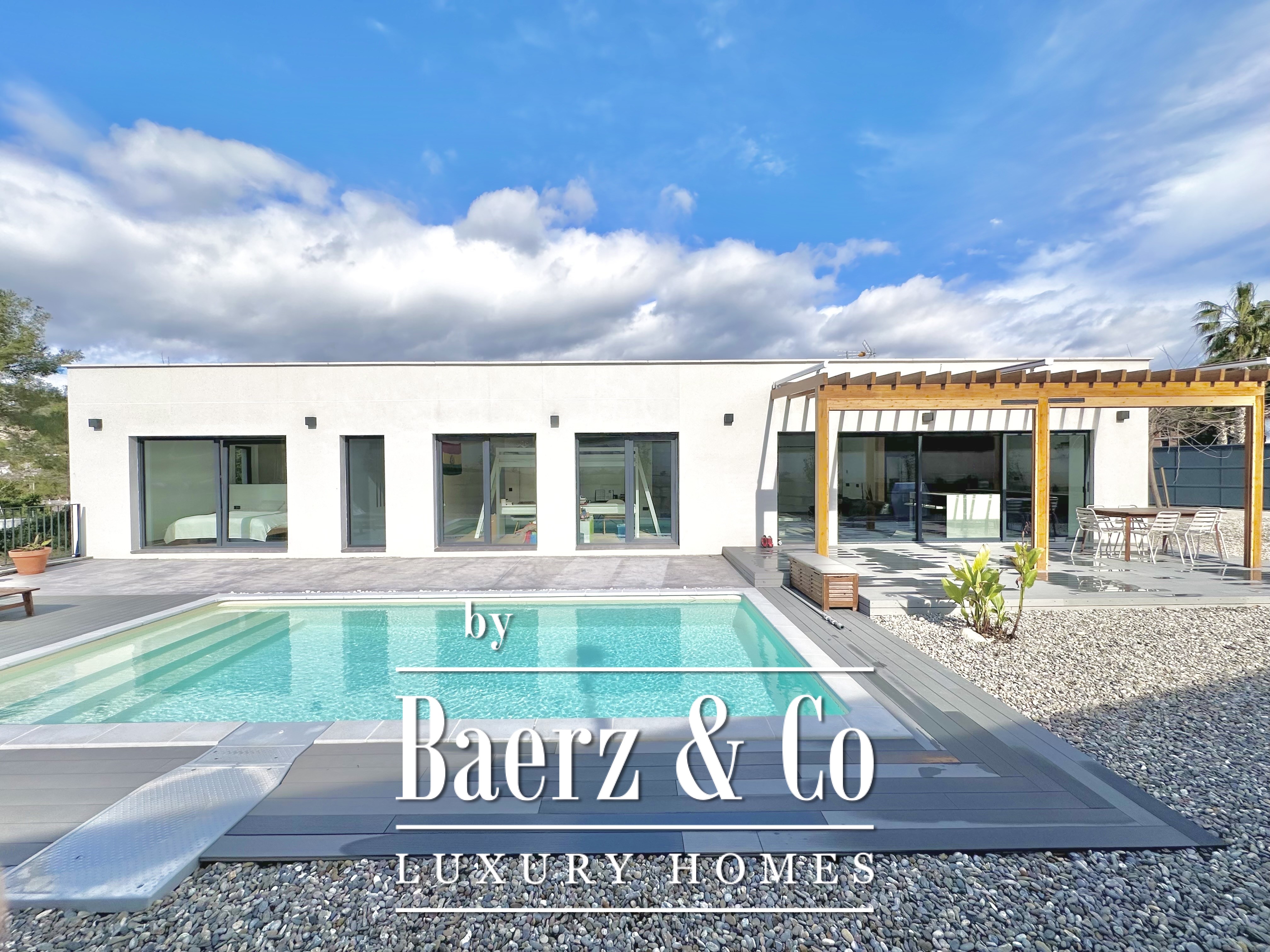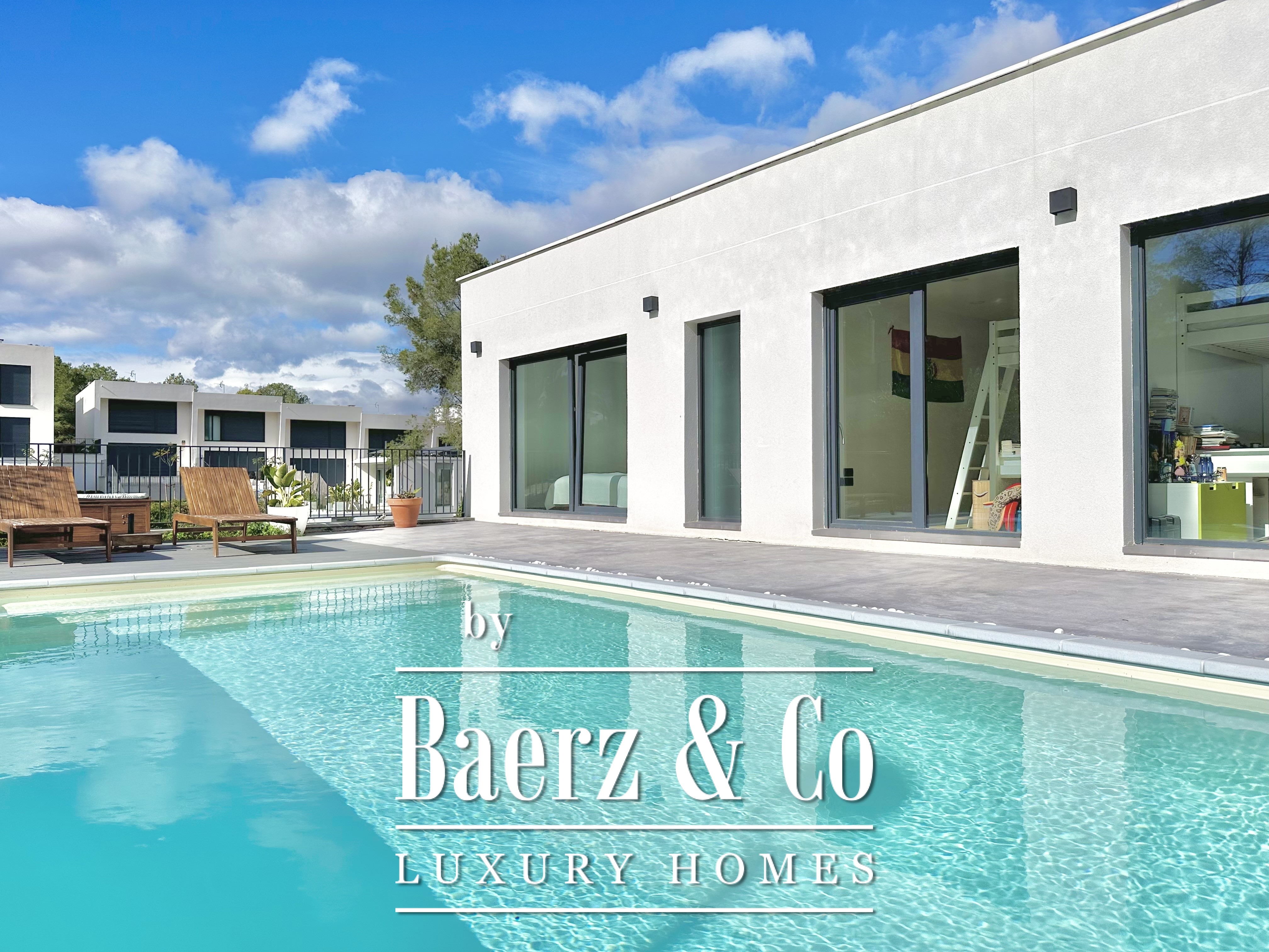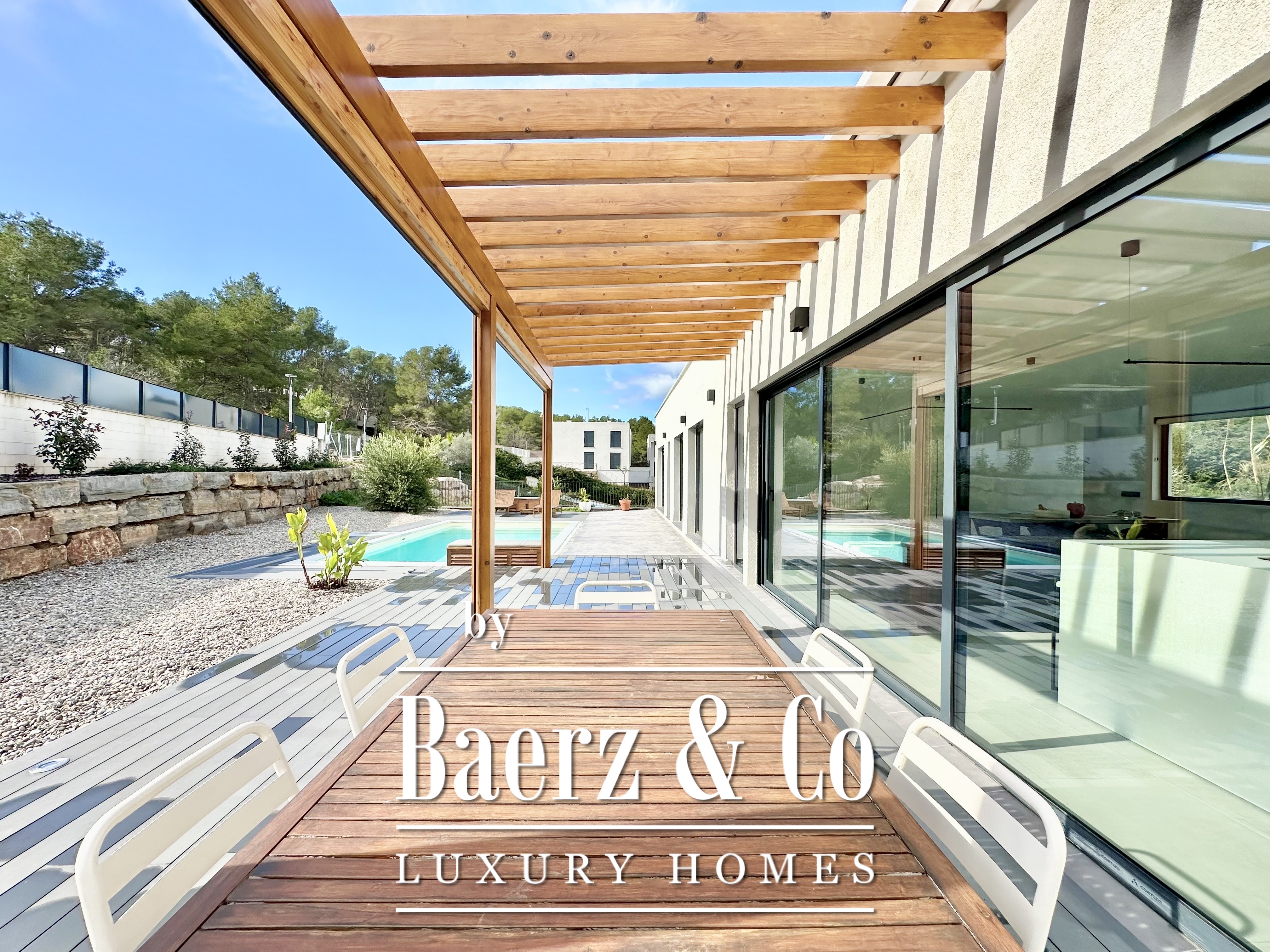 This modern villa Sitges is a newly completed, energy-efficient home designed with sustainability and contemporary minimalism at its core. Located in the tranquil Mas Alba area of Sitges, the property occupies an 860 m² double plot and offers 296 m² of living space, complemented by a 32 m² private pool and mountain views.