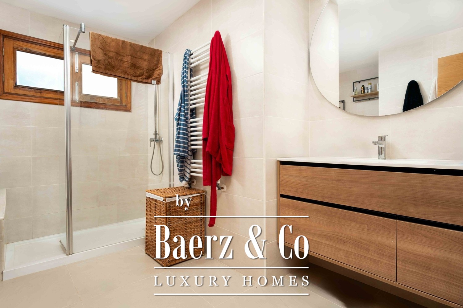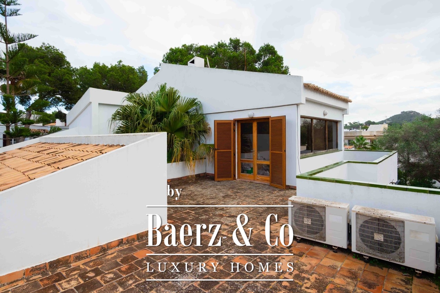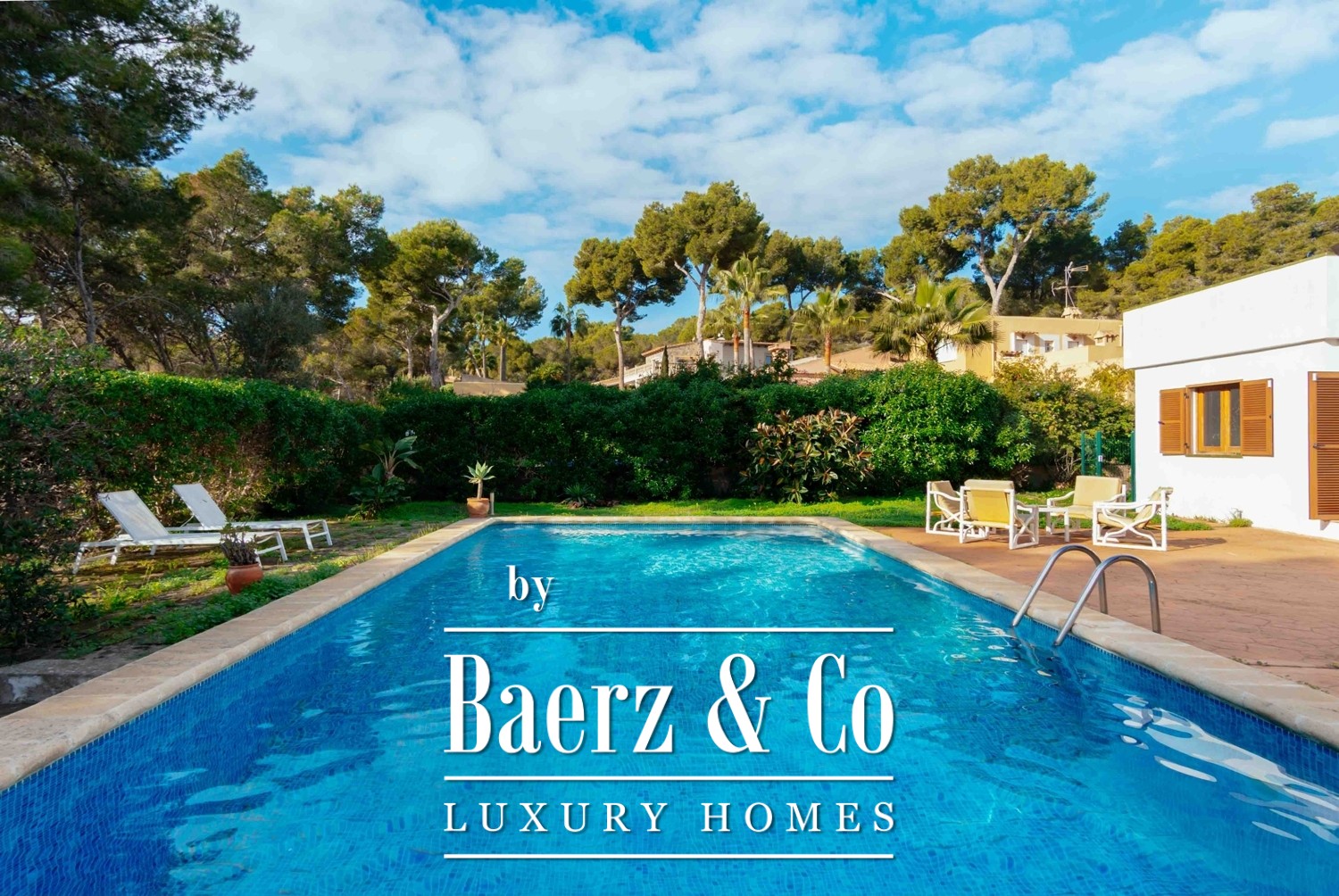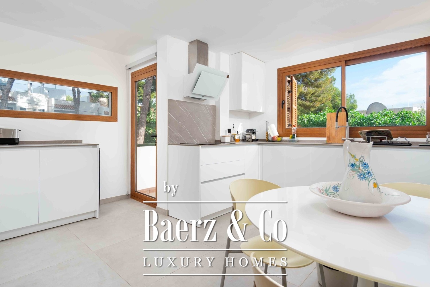 Quality materials—parquet floors, air conditioning, gas central heating—create a quietly refined atmosphere. Outside, a large freshwater pool, summer kitchen with barbecue, and thoughtfully tended gardens set the stage for relaxed Mediterranean living. The villa includes a garage and terraces, all within Santa Ponça, a coastal enclave offering a refined promenade, reliable infrastructure, and swift access to Palma in twenty minutes and the airport in thirty. This property articulates location and potential in one of Mallorca’s most desirable addresses.