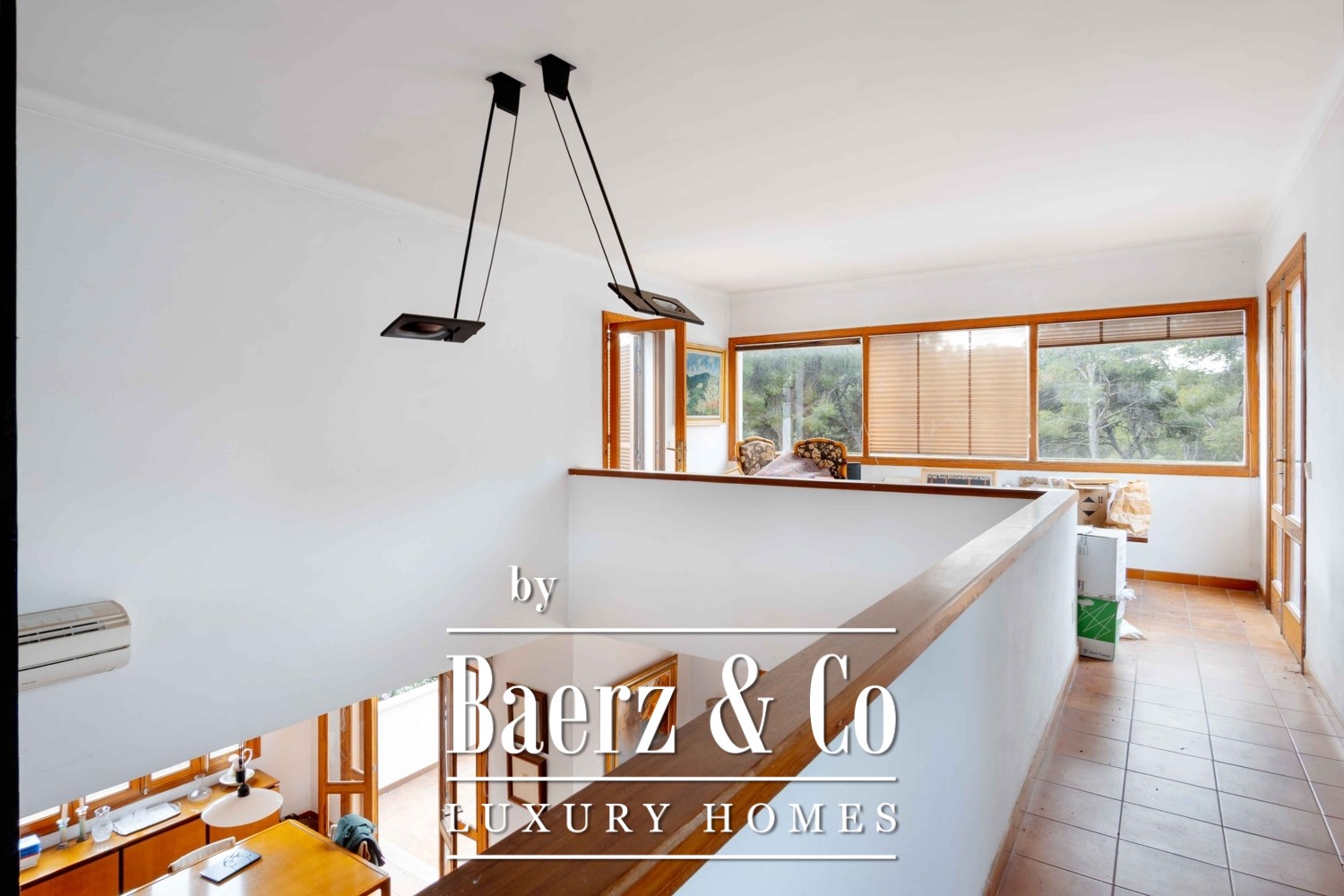 This Mediterranean villa Santa Ponça stands just minutes from the marina, set on a generous 1,224 m² plot. The constructed area reaches 330 m² with approximately 229 m² of living space arranged over two calm, purposeful floors. Across the ground level, a spacious living room centres on an elegant wood-burning fireplace, while a modern kitchen with dining area and separate entrance complements daily rhythms. Four bedrooms, including an en suite, and two well-finished bathrooms offer privacy and functionality.
